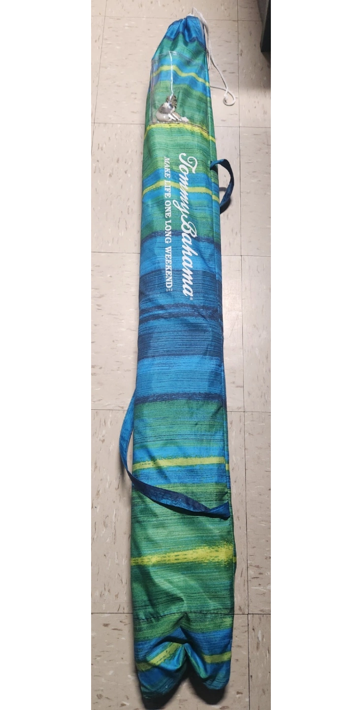Tommy Bahama beach umbrella in carrying case. Colorful stripes. Perfect for the beach or your backyard.