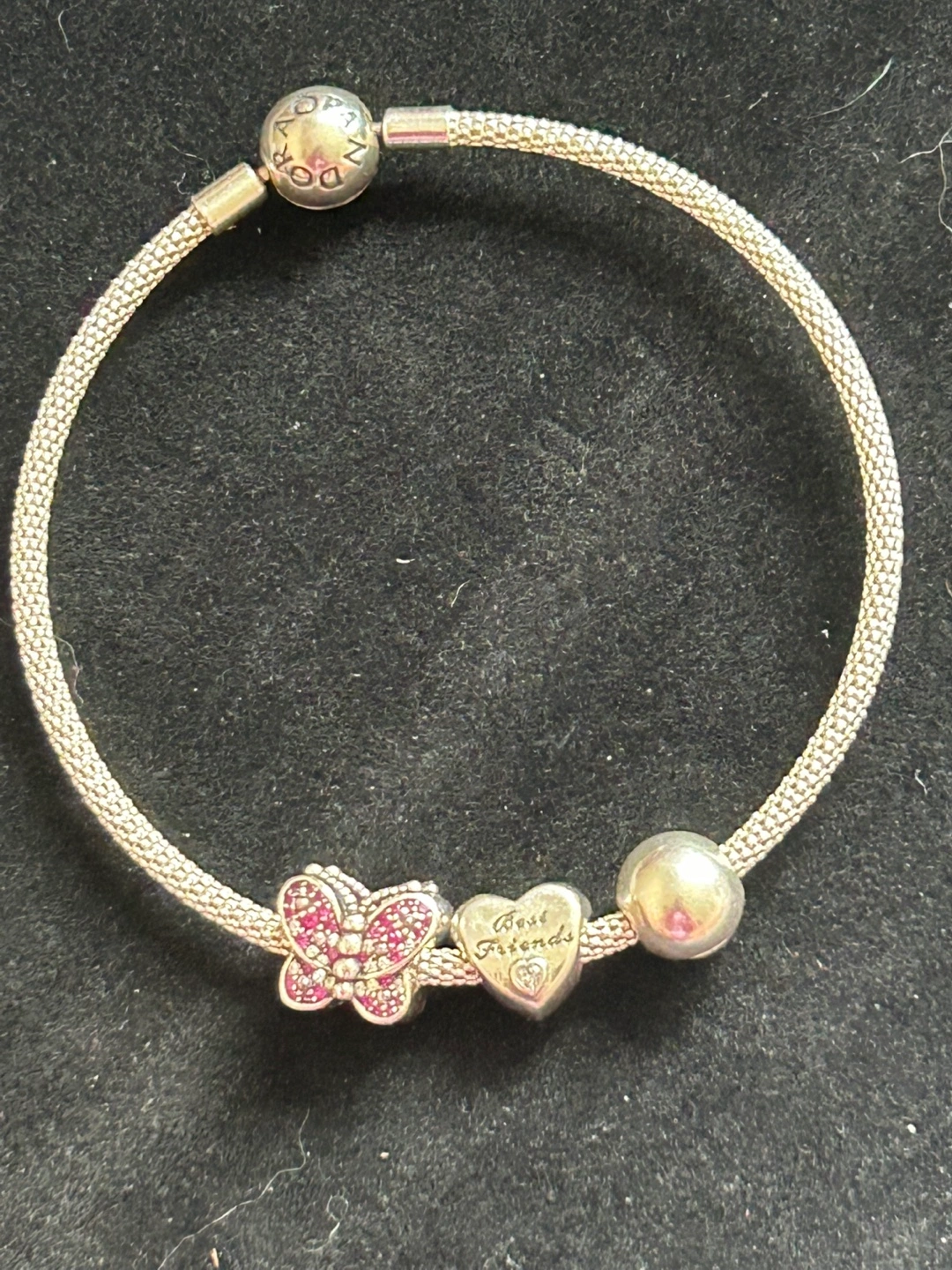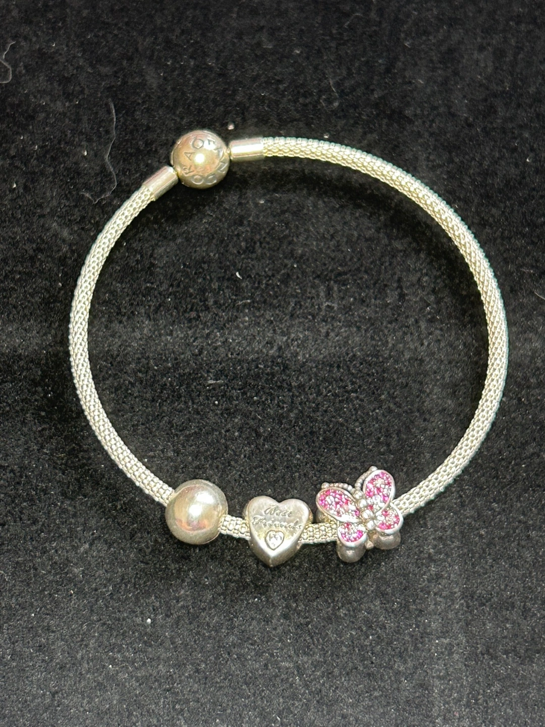 Selling a beautiful, authentic Pandora mesh bangle bracelet, with: