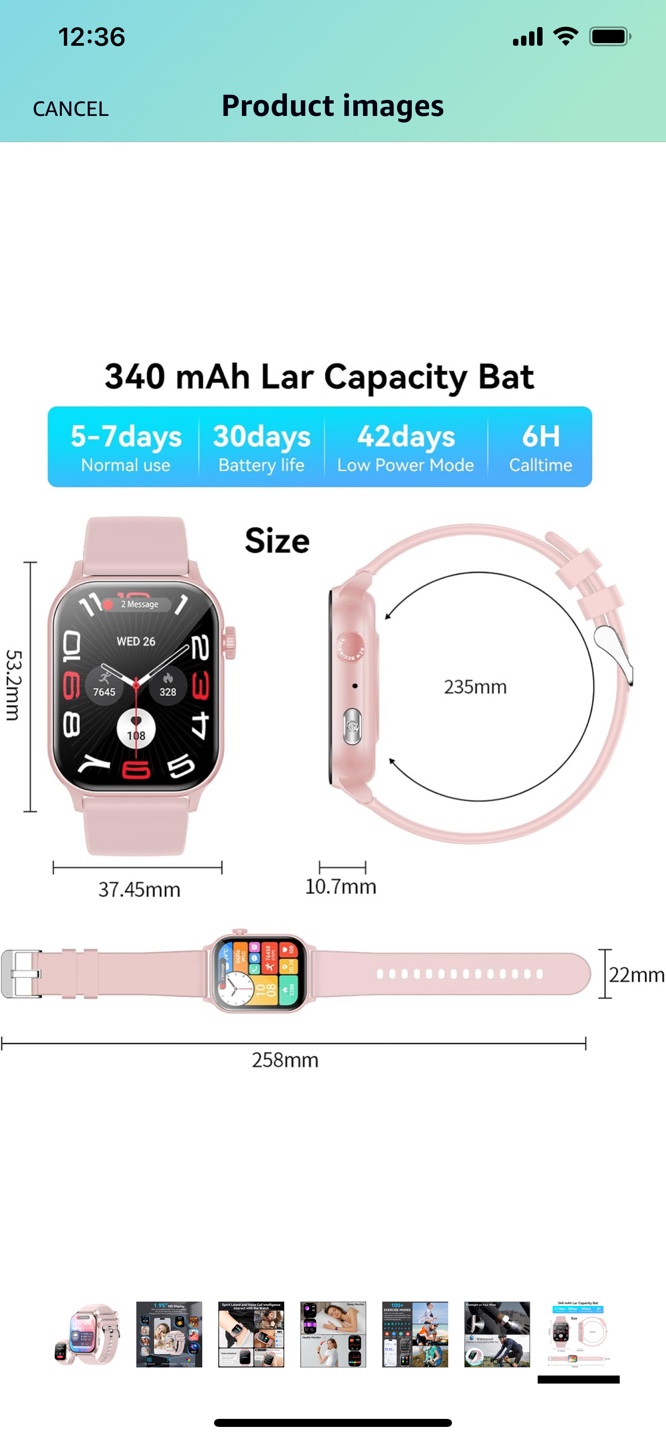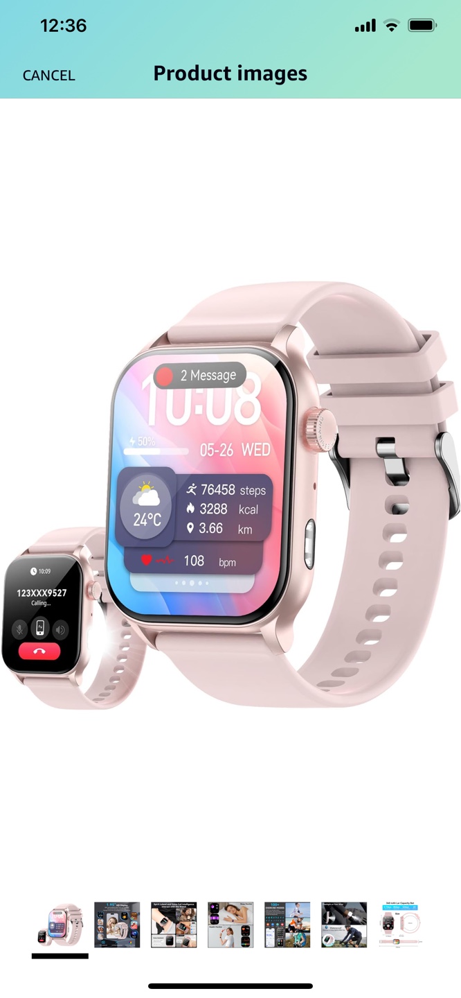Rose gold smartwatch. Features a 1.95" AMOLED display, 410*502 resolution, and 99.5% ultra-wide colour gamut. Health and sleep monitoring. Bluetooth calling and voice assistant. Many customizable watch faces.