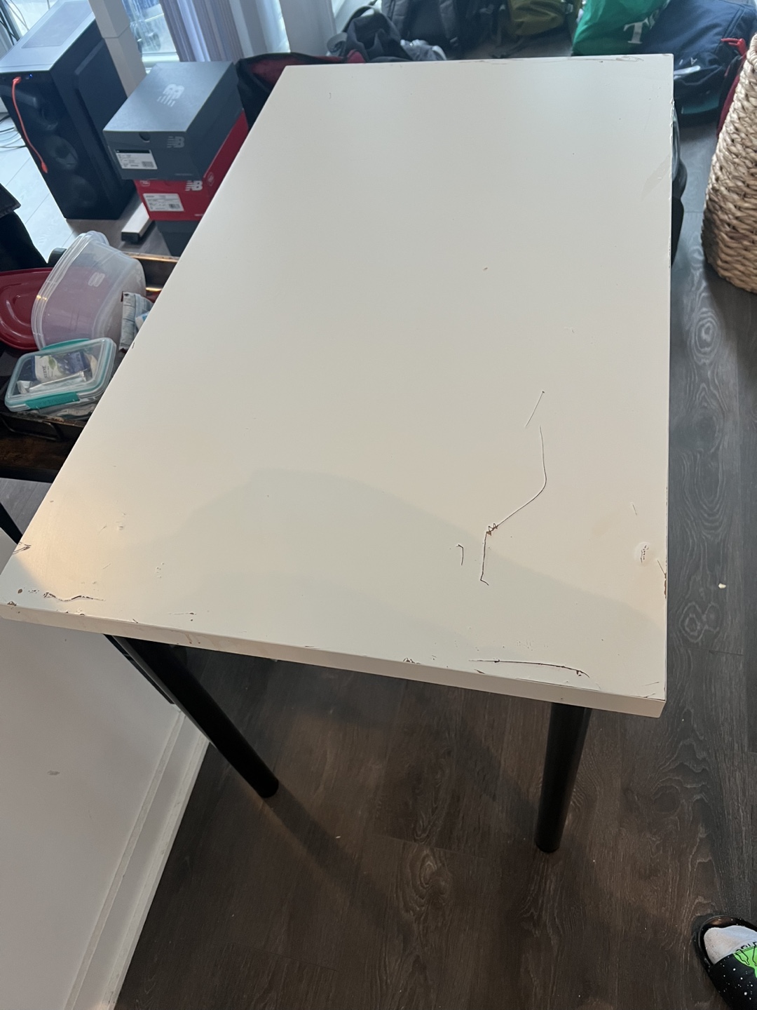 1 / 21 / 2Buy & Sell2x Ikea White Desk with Black Legs2x Ikea White Desk with Black Legs$10Small white desk. Black metal legs. Minor surface scratches. Good condition. Ideal for small spaces or as a side table.WHERE TO MEETCheck LocationView MapSELLERverifiedJamesEntertainment District1114 reviews1 chats·0 favorites·29 viewsSEND CHAT TO SELLERHi James! I’m interested in your listing.Hi James! I’m interested in your listing.Get the Karrot app to chatSign In to chat