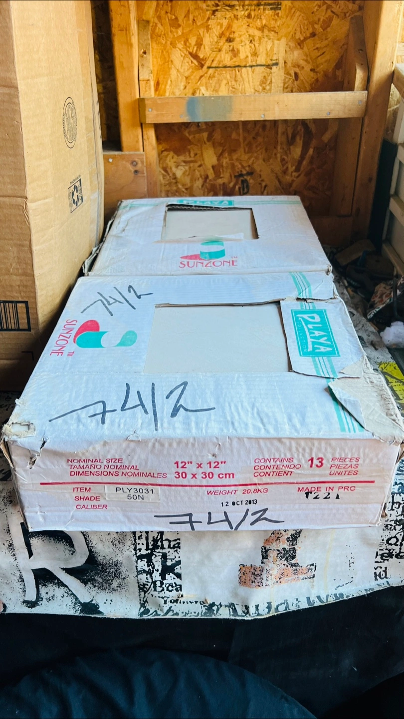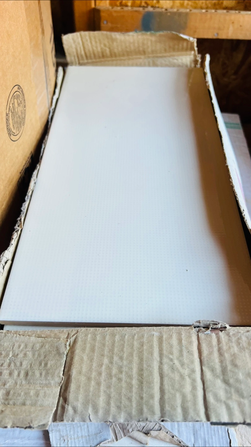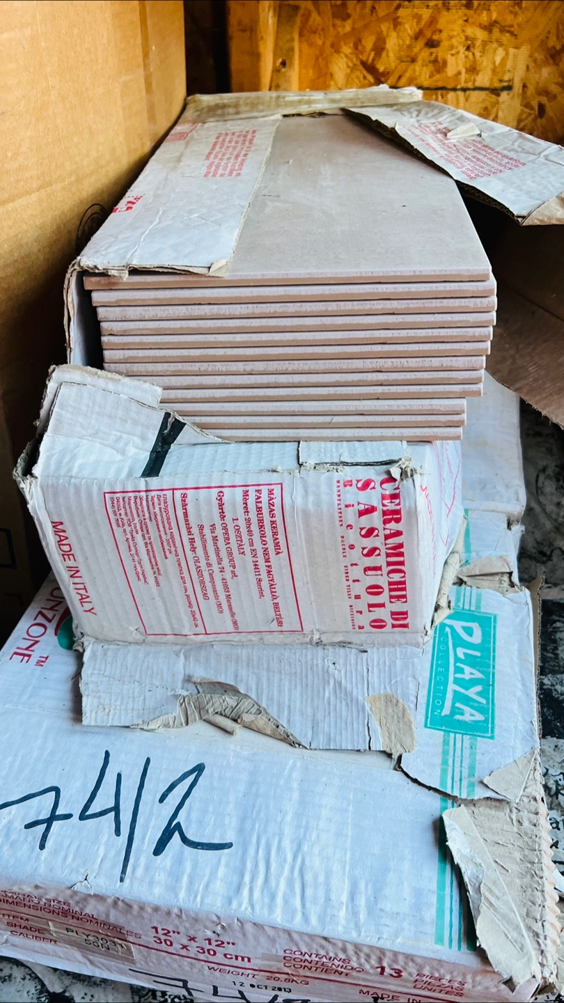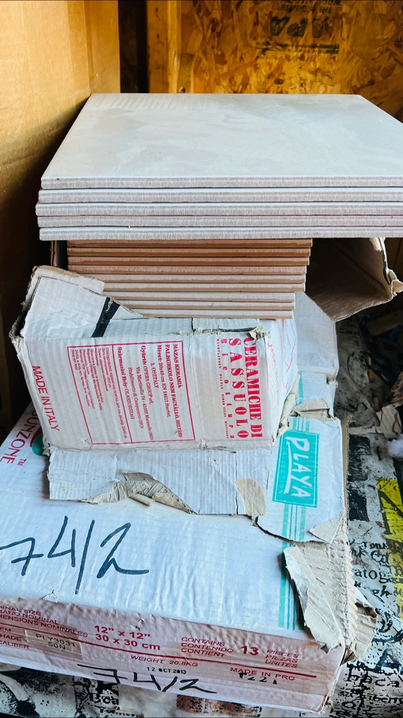 Off-white porcelain tiles. Bulk lot available. Made in Italy. Perfect for flooring projects. Some boxes show wear. There are 2 sizes- 12"x12"- 2 boxes & 8"x12" - 2 boxes each.