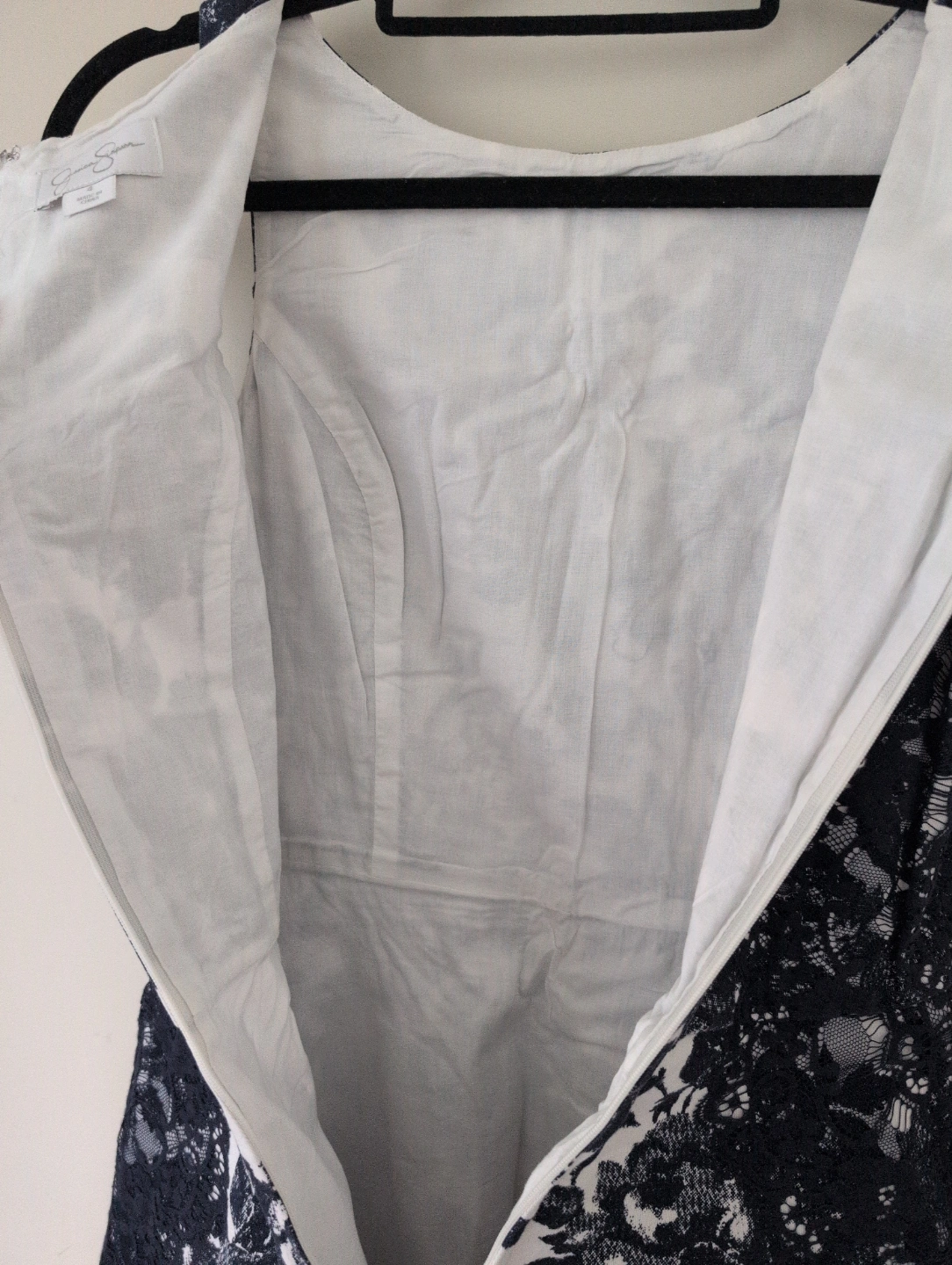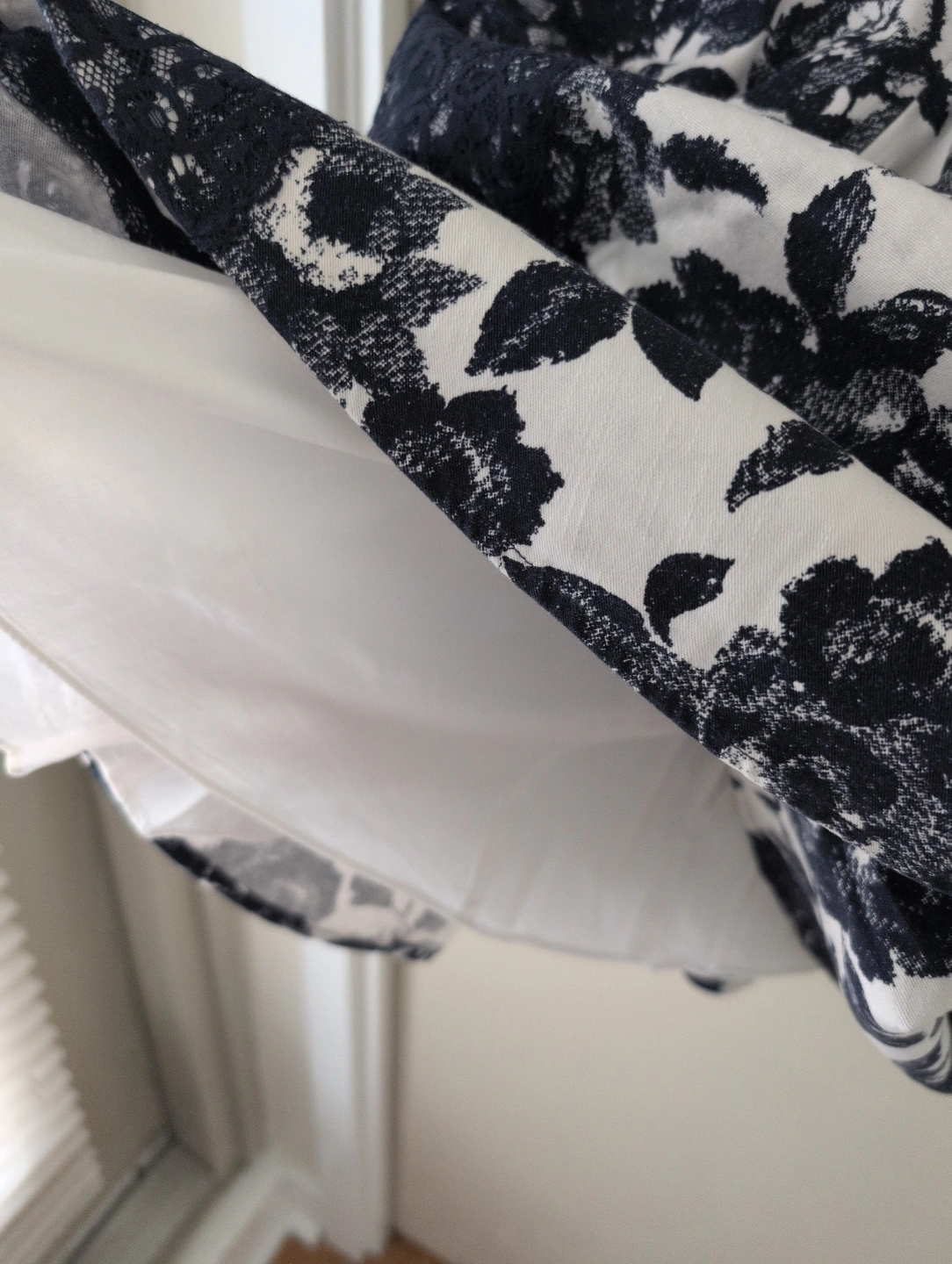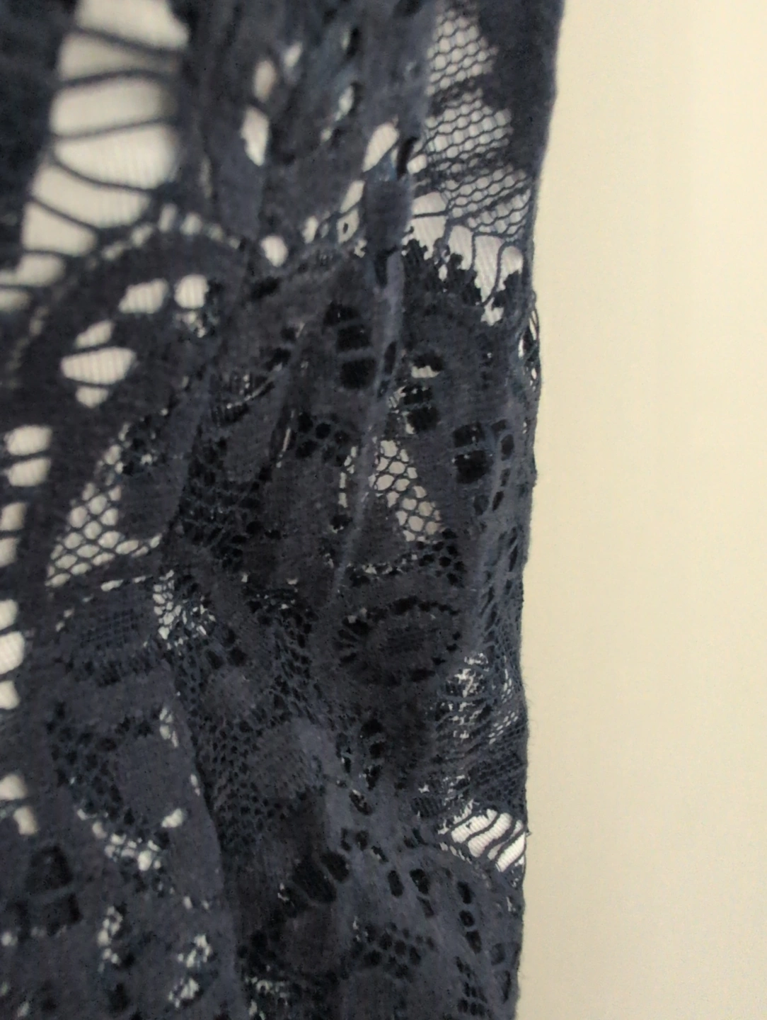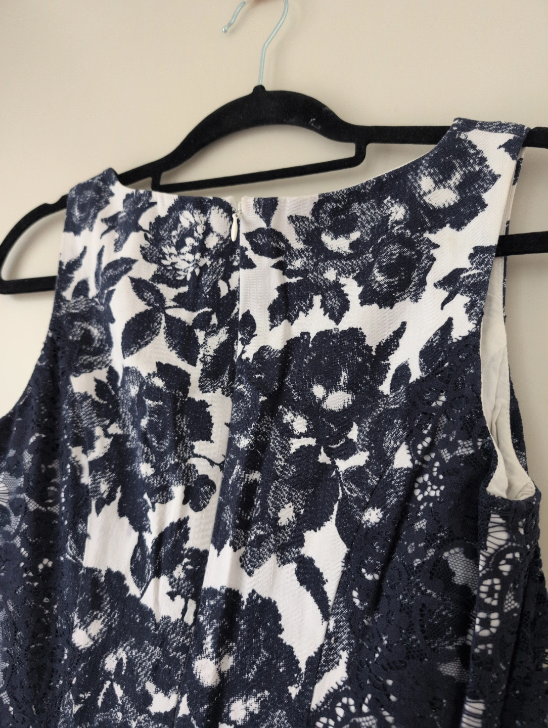 Colour: True navy with white floral print with lace fabric on the sides for beautiful dimension and texture.