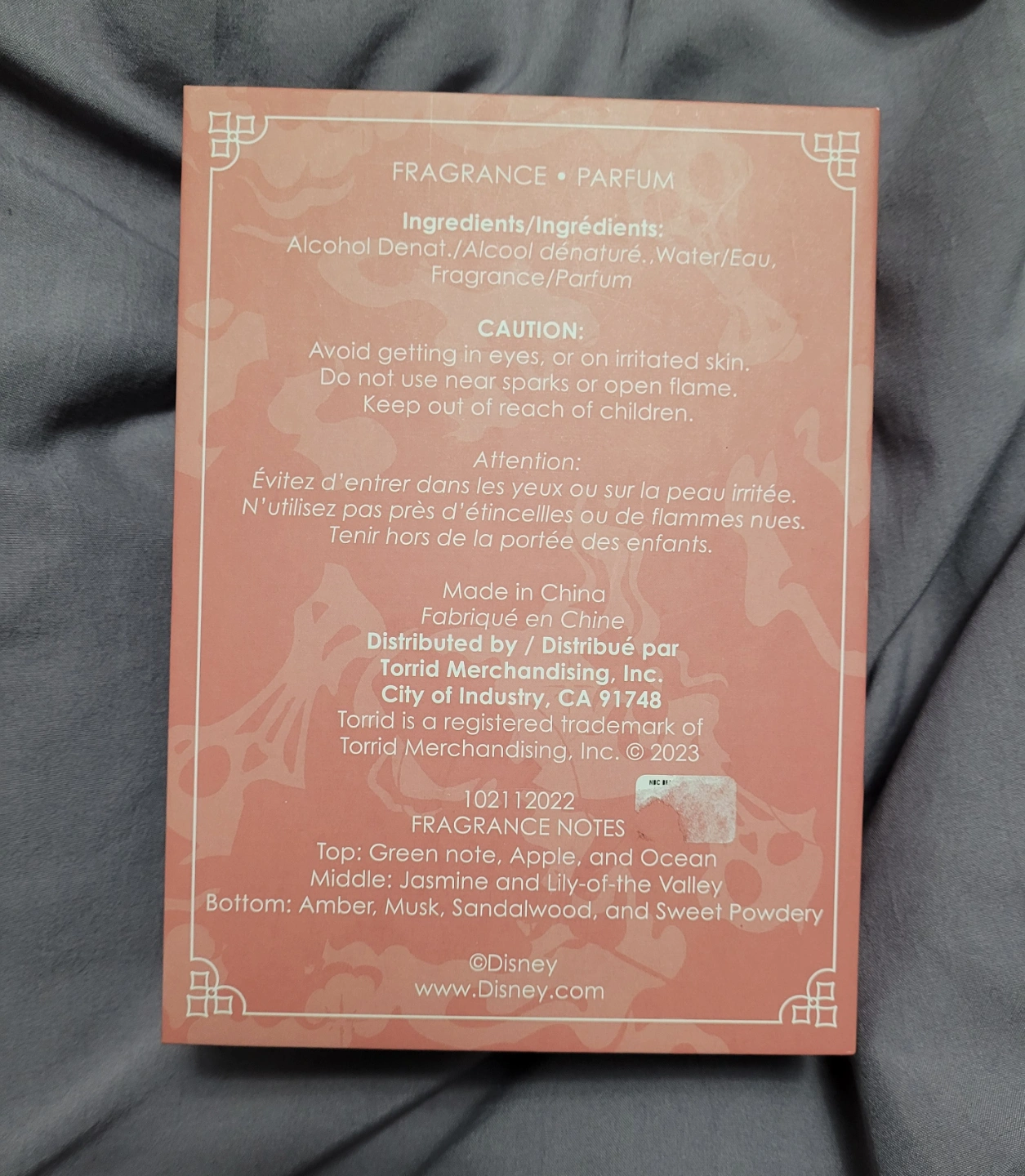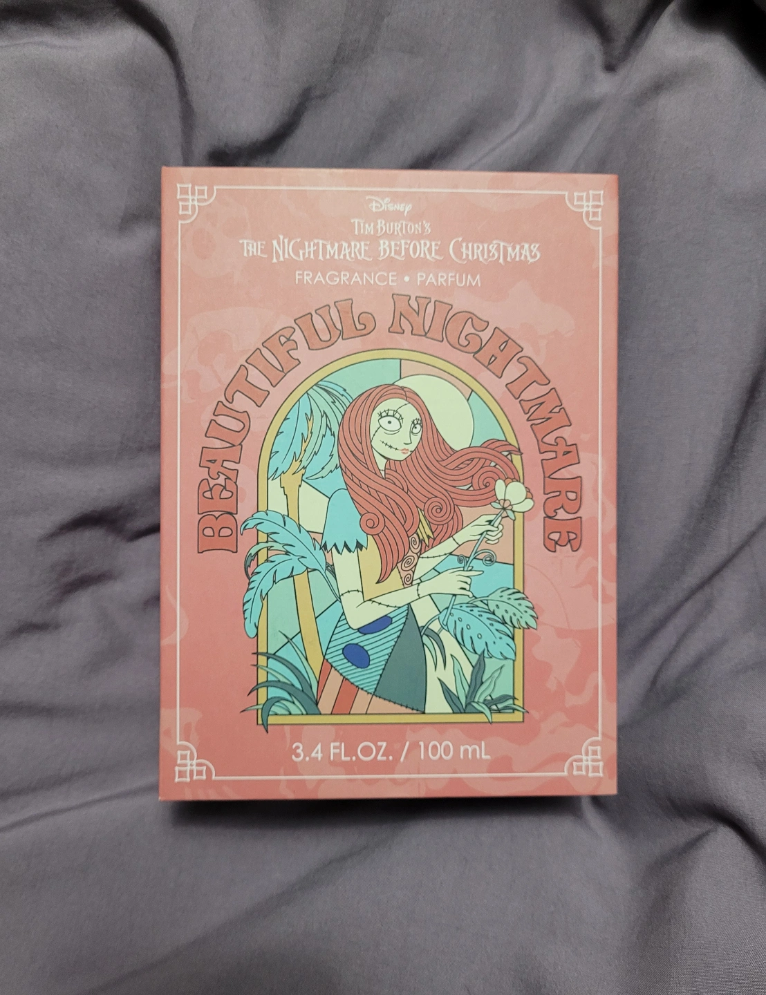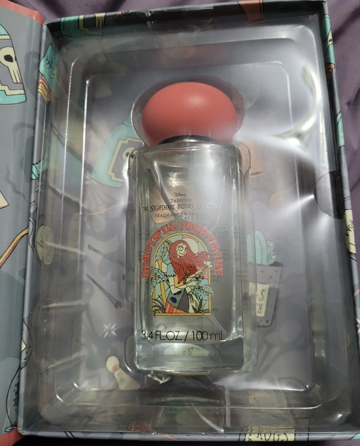 New In Box: 100ml bottle of Sally-themed perfume. Beautiful Nightmare fragrance. Comes in a collectible box. Fragrance notes include jasmine, apple, and ocean.