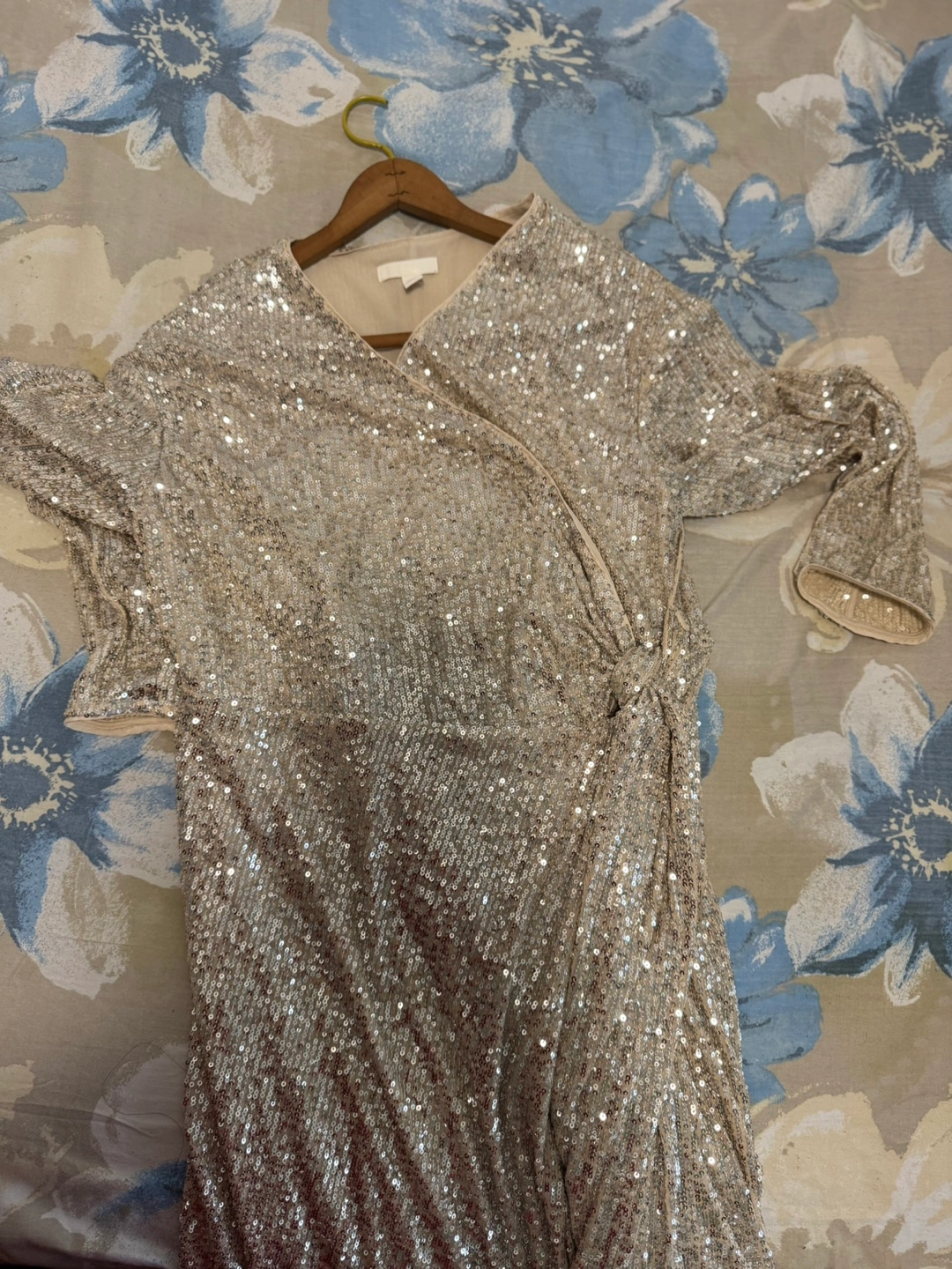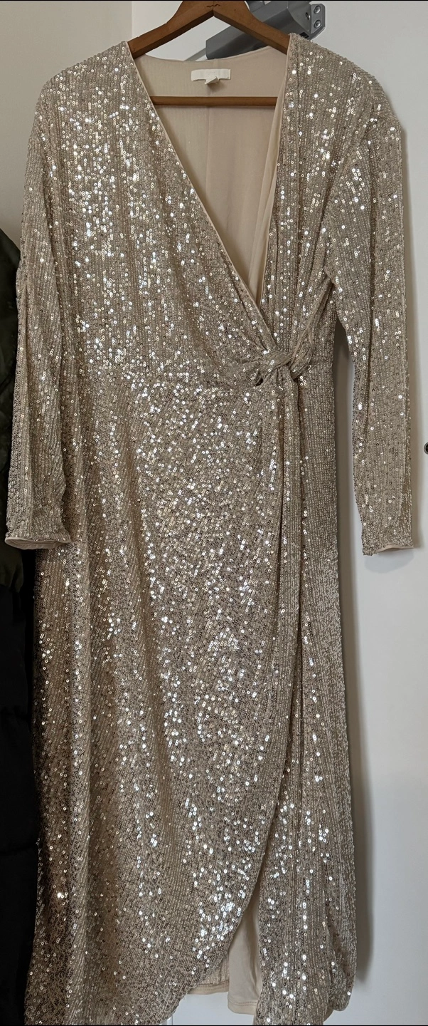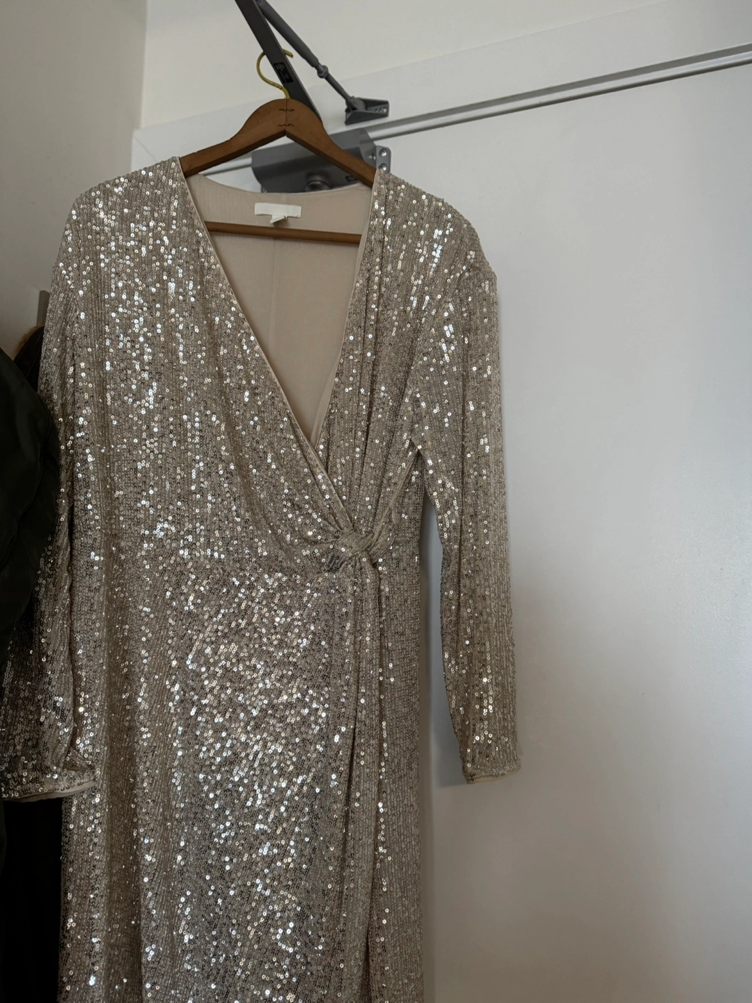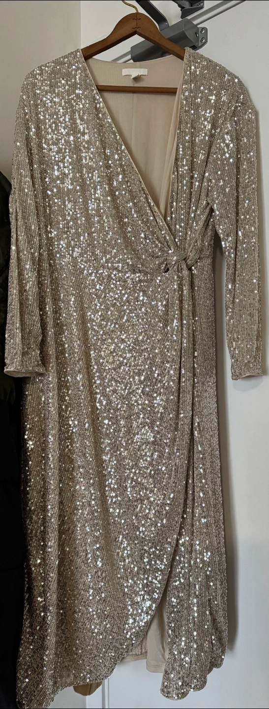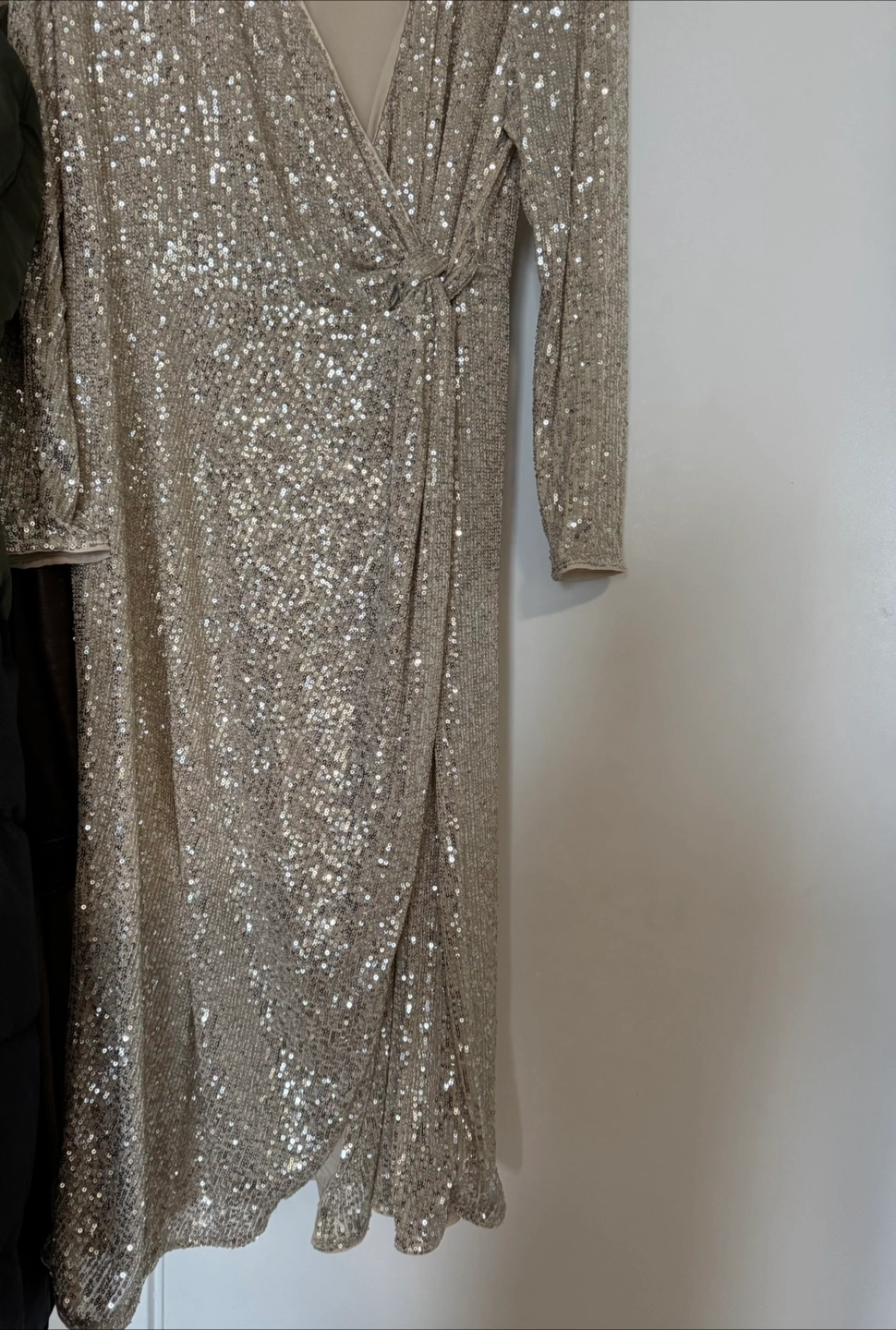 Brand new H & M Gorgeous champagne-coloured sequin wrap dress.