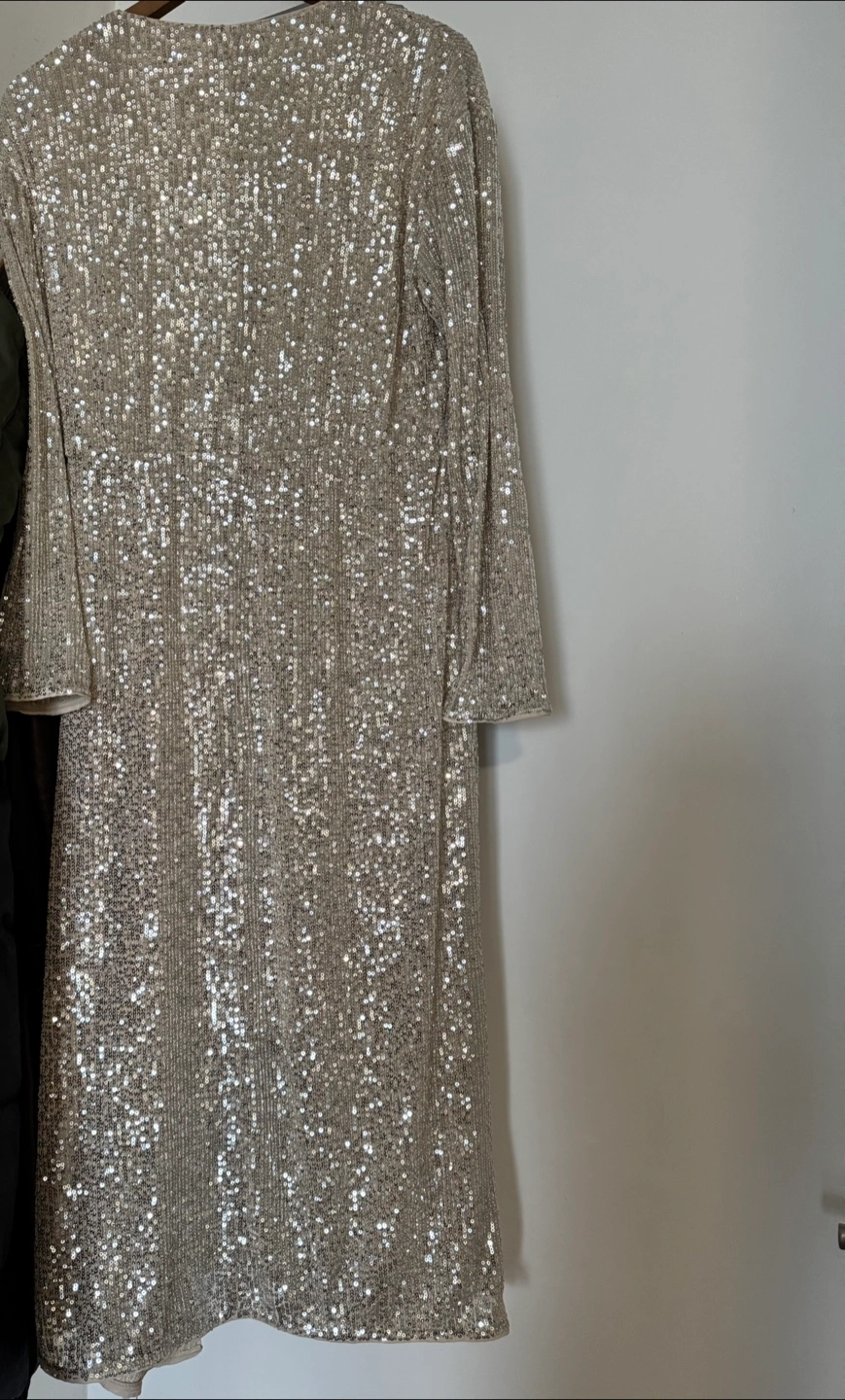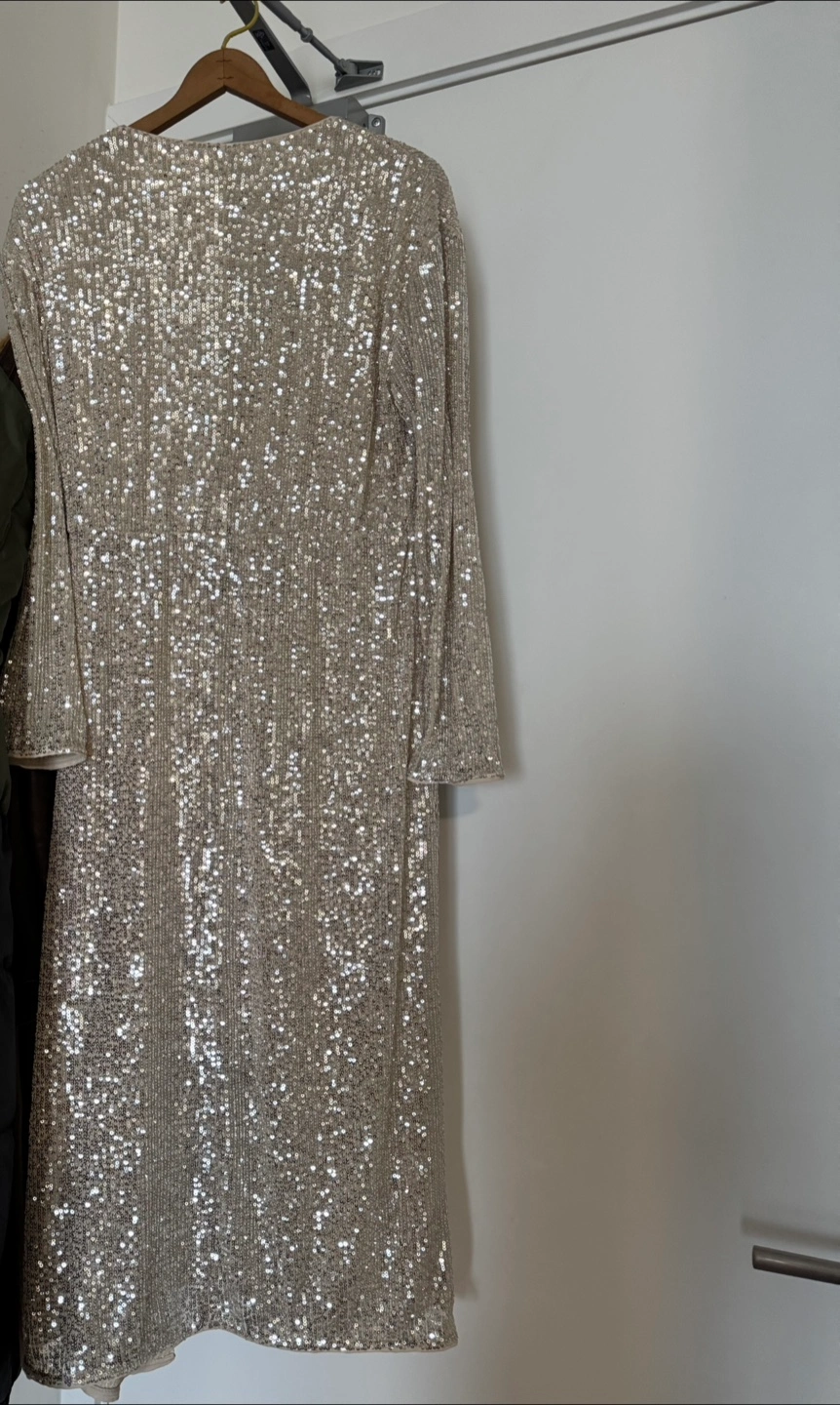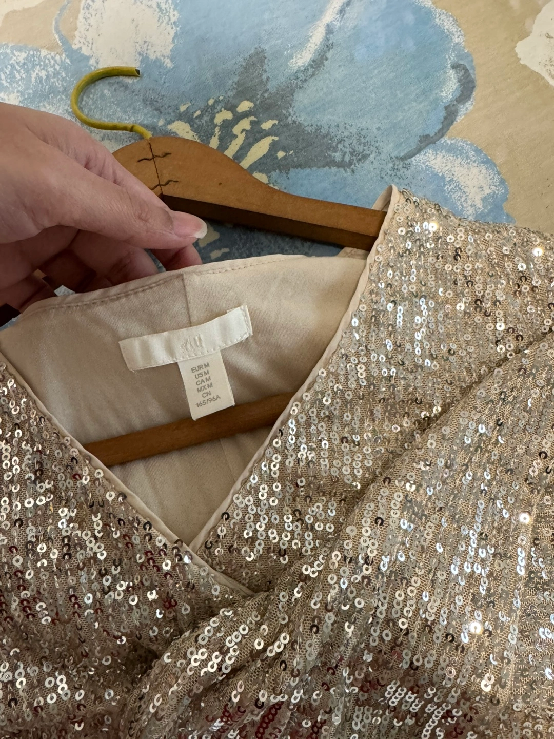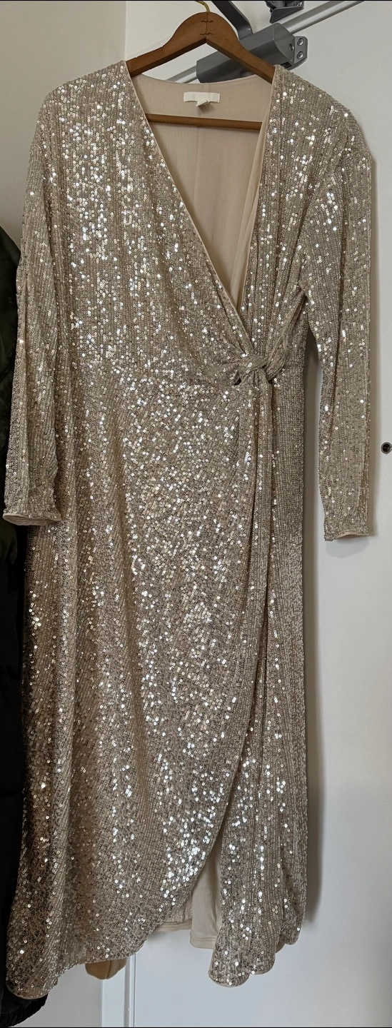 Brand new H & M Gorgeous champagne-coloured sequin wrap dress.