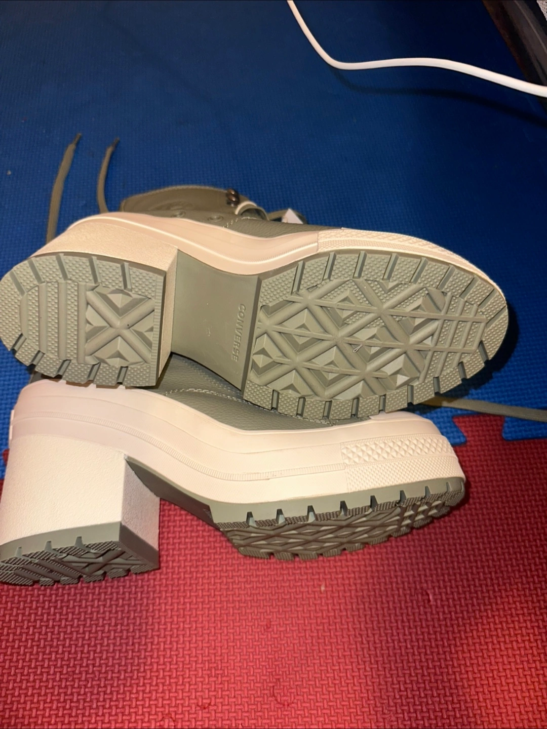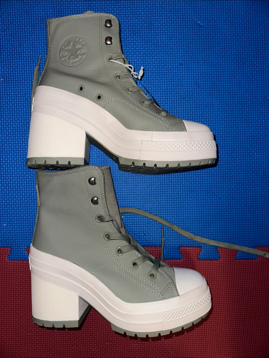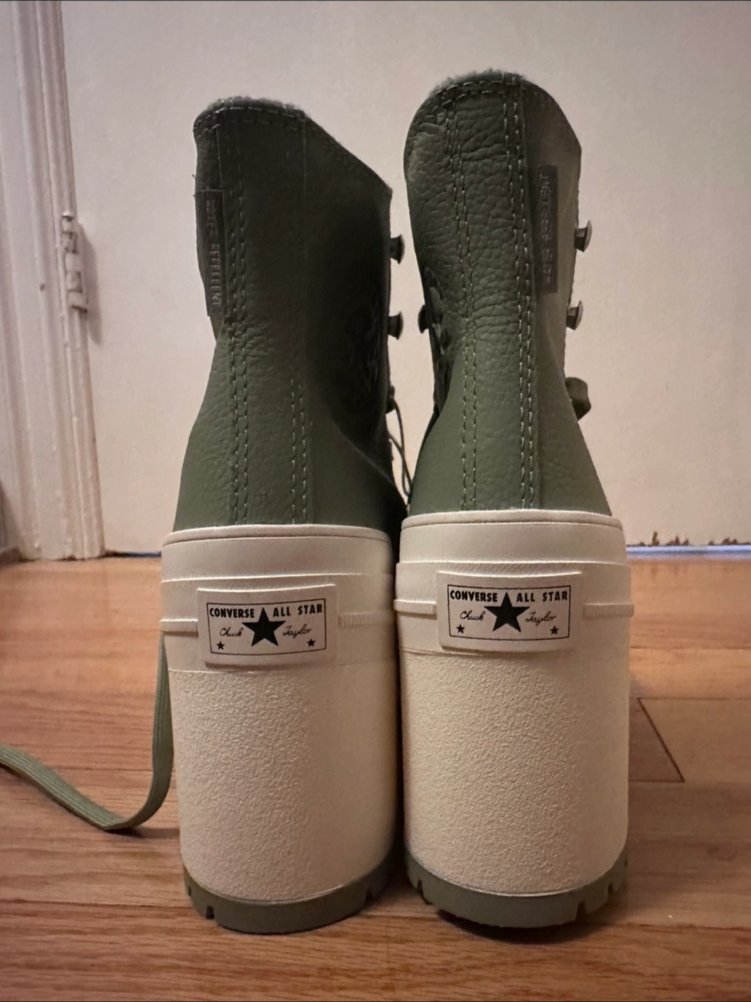 Women's Converse Chuck 70 De Luxe platform boots. Sage green colour. Water-repellent. High-top design. Laces included. Platform heels. Excellent condition.