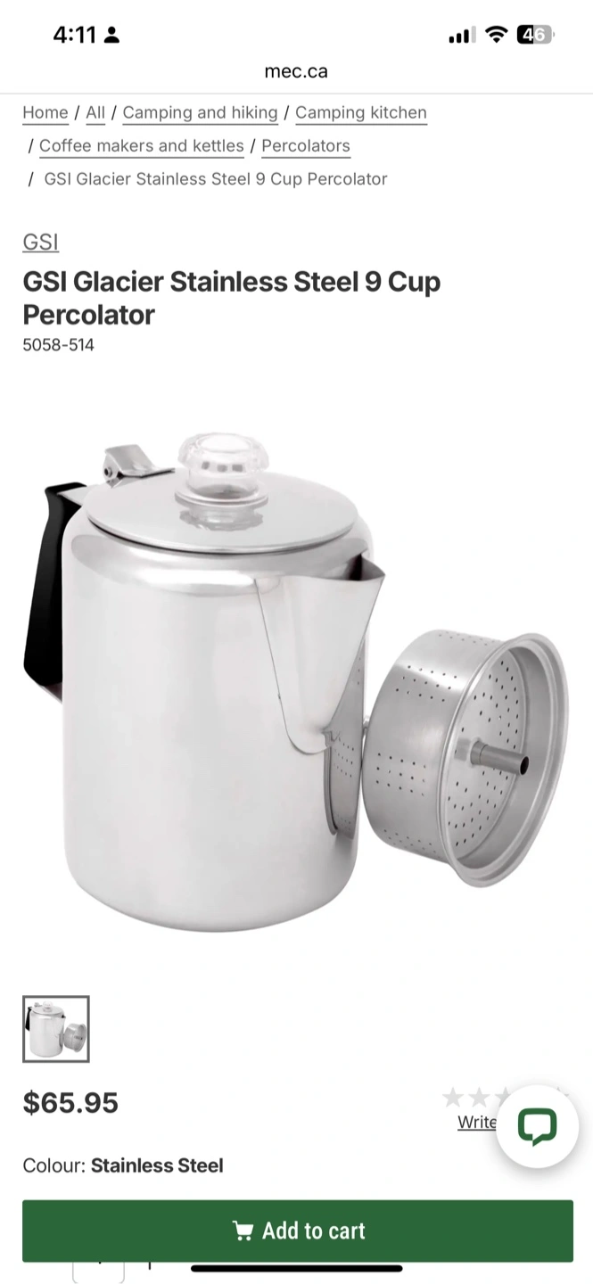 Now updated with an ergonomic, heat-resistant silicone handle and BPA-free resin knob, this durable stainless-steel 9-cup coffee percolator might be your new best camping buddy.