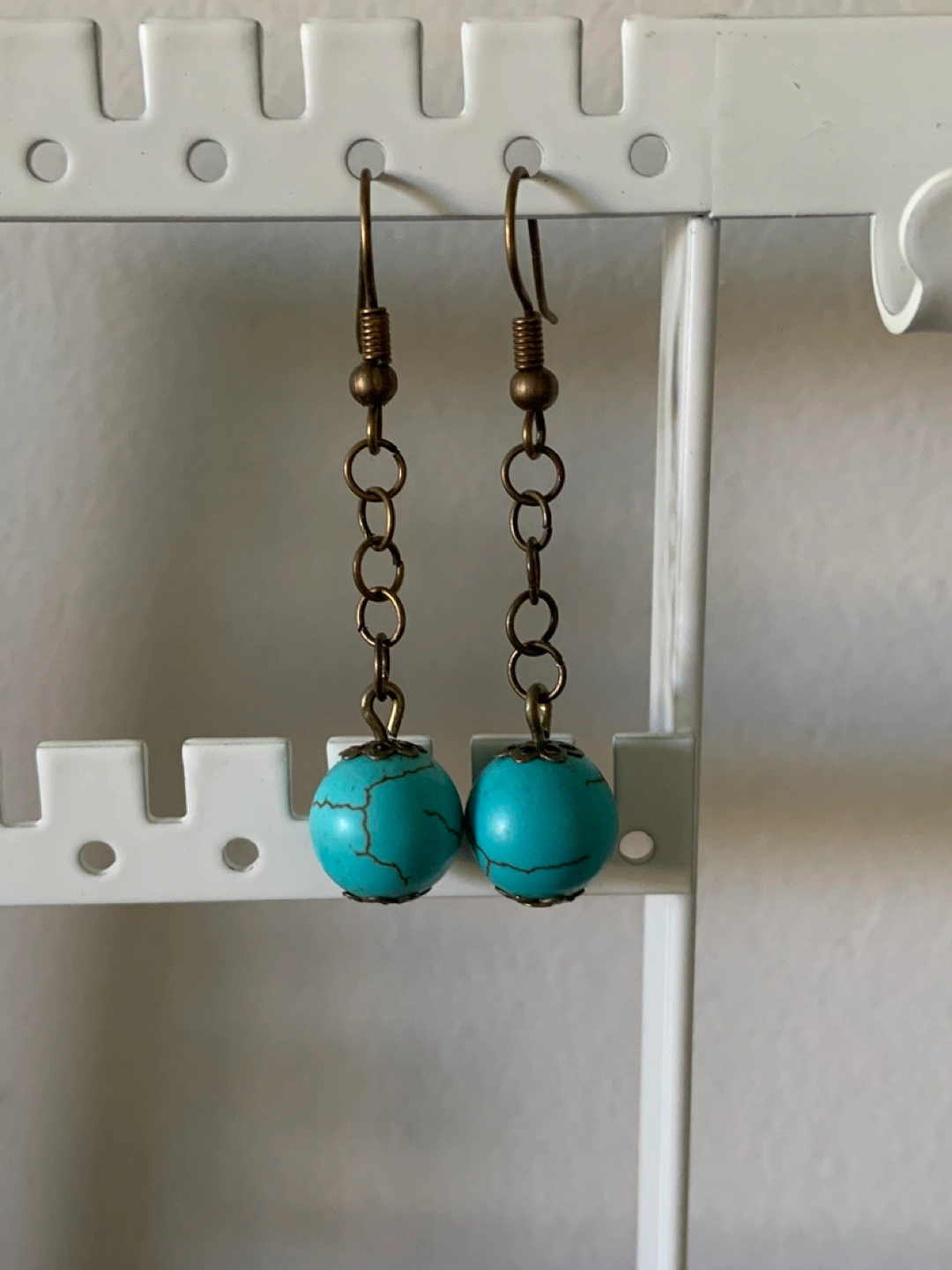 - Features turquoise coloured beads, complete with bronze/brown chains and accents.