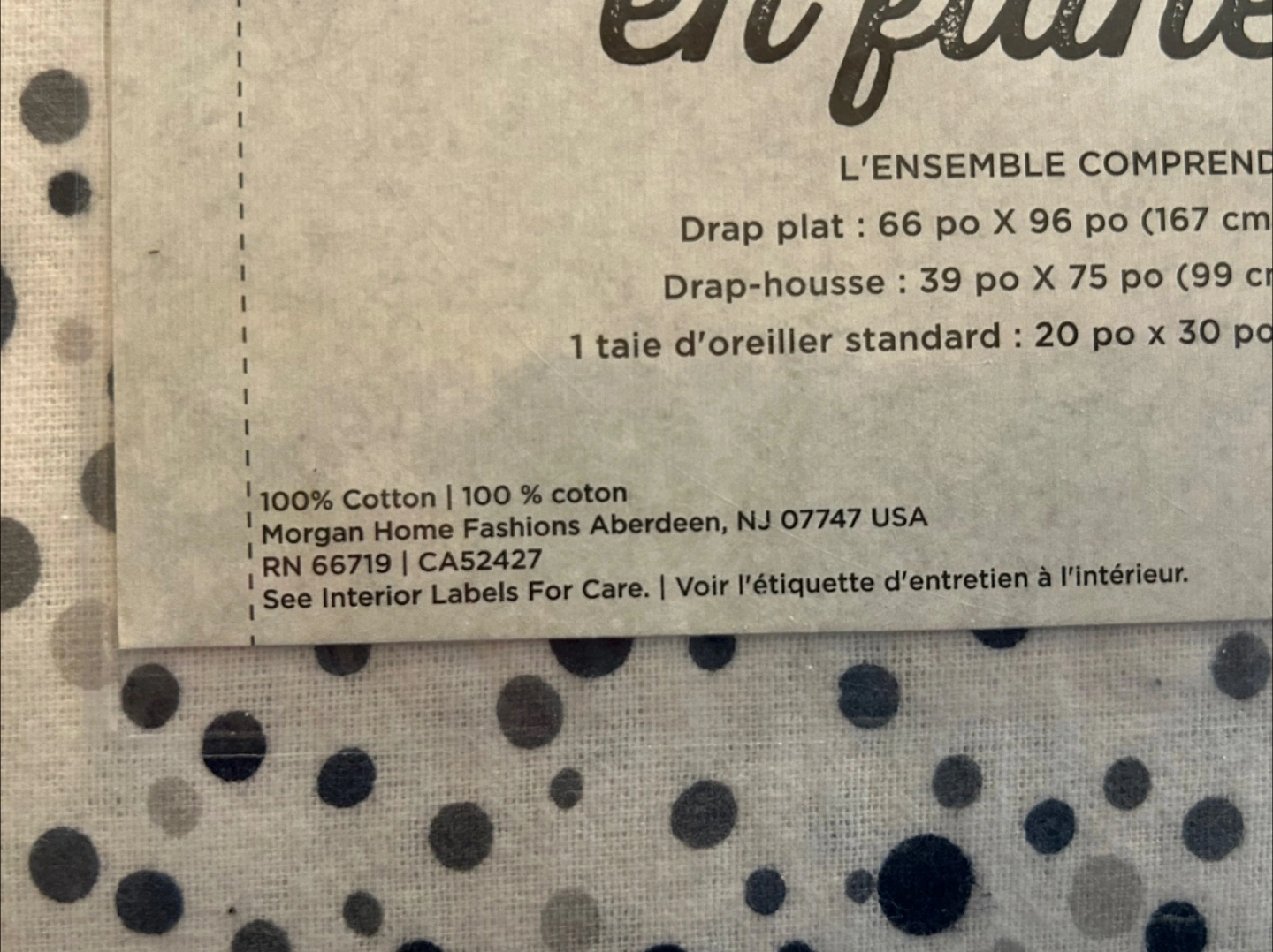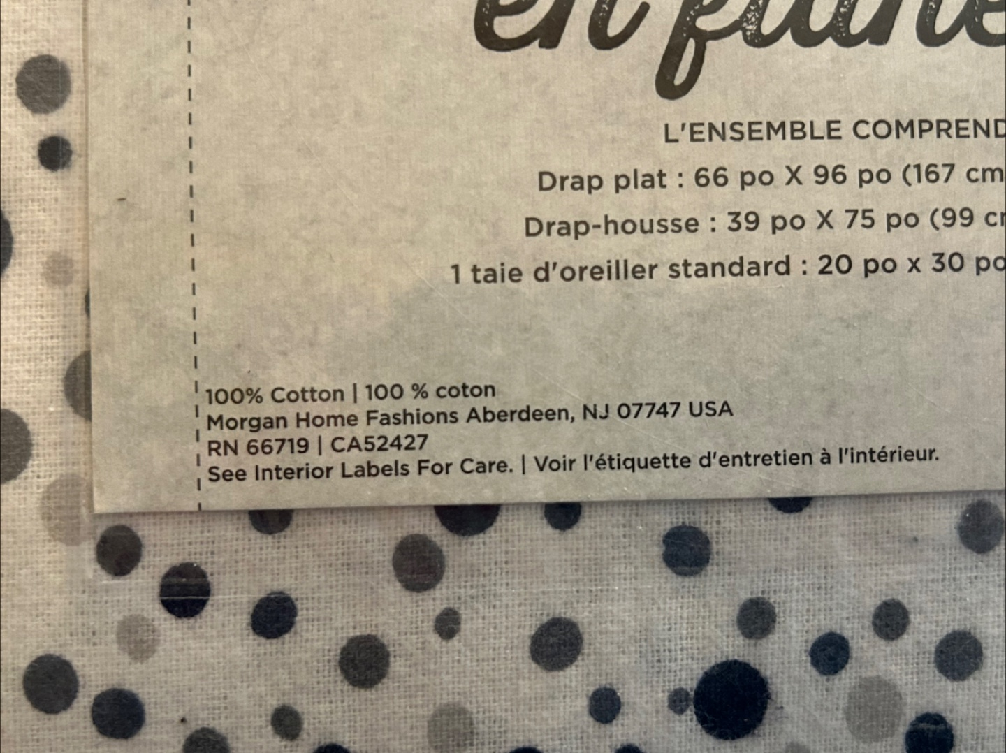 Includes flat sheet, fitted sheet, and one standard pillowcase.