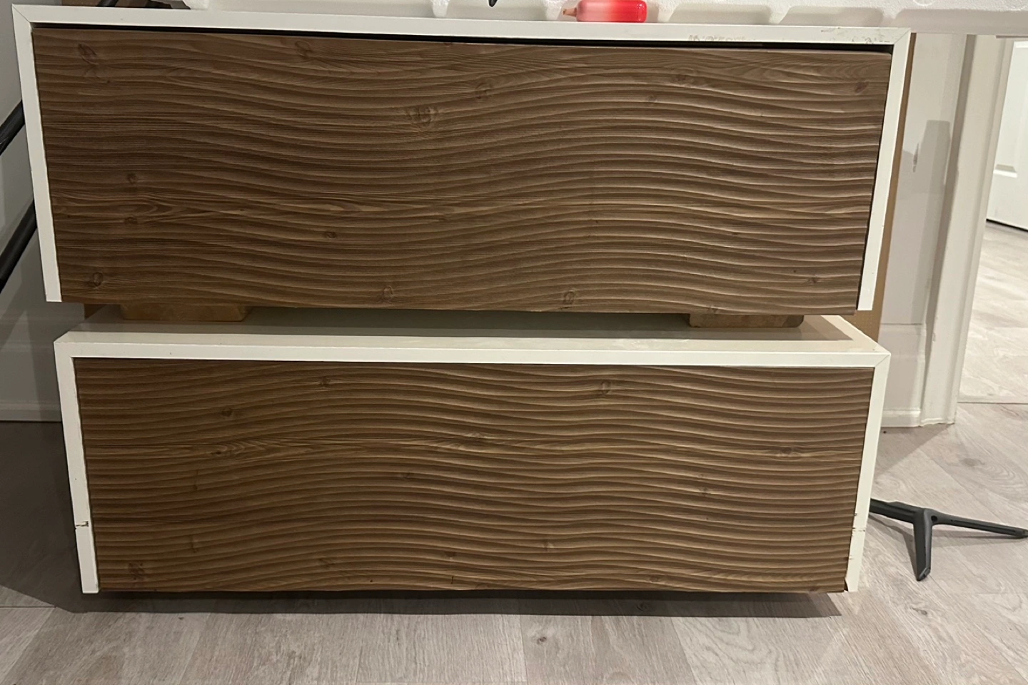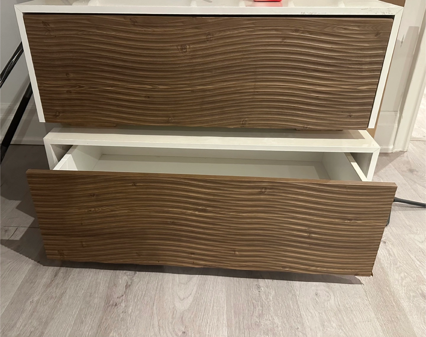 Buy & SellModern Two-Drawer Storage UnitModern Two-Drawer Storage Unit$70Two-drawer storage unit. White frame. Brown wood-grain drawer fronts with wave pattern. Assembled.ConditionLike newWHERE TO MEET331 Connaught AveView MapSELLERverifiedMojiThornhill S770 reviews0 chats·1 favorites·51 views
