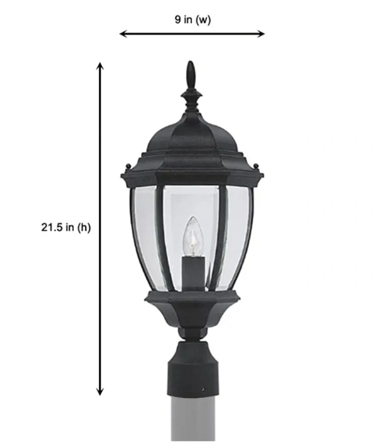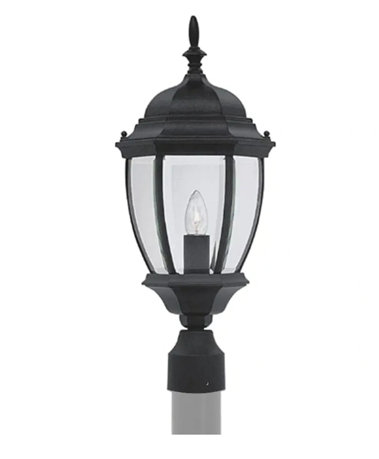 126Elegant black post mount lantern. Clear glass panels. Traditional style. Perfect for pathway or driveway lighting. Measures approximately 21.5 inches high and 9 inches wide. Designers Fountain 2-Light Tiverton Outdoor Post Pantern Light with Clear Glass Shade, Black, 2436-B