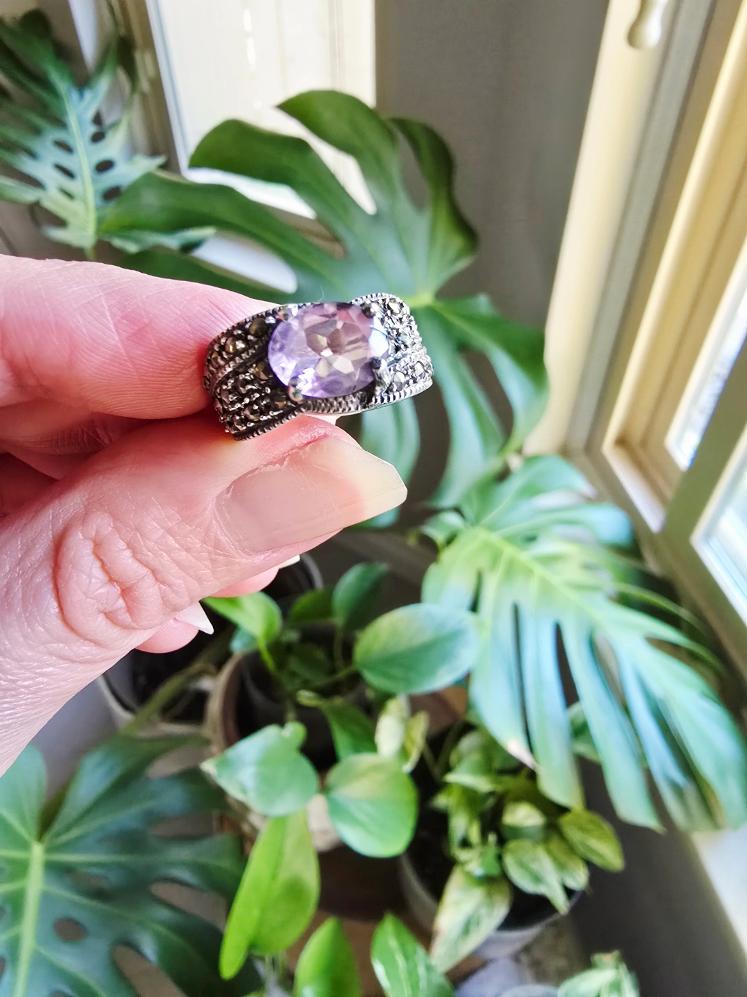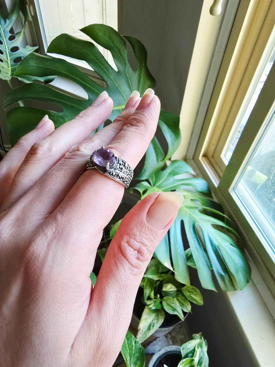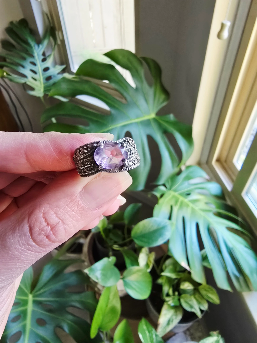 69New with tag Amethyst Marcasite natural gemstone 925stamp sterling silver ring. Size 6.5 Detail below. All Genuine. We are selling gemstones jewelry since 2001. Stores closed. All items are new with tags and healing properties cards. Please allow at least 24 hours for me to check & pack your order(s), thank you. No Return. No Exchange. Serious Buyer Only. Half Price Cut Offer Will Be Ignored. No Holds Without Deposit. Pick up from Richmond Railway & Williams. Or send by Canada Post (extra fee). By CANADA POST (Extra fee for postage & packing): (a) Regular Post: +$3 (no tracking number, 3-5 business days) (b) Xpresspost: +$20 with tracking number, 1-2 business days) * Add signature: +$3 You can find my items posted here: https://www.facebook.com/marketplace/profile/897440322/?ref=permalink&mibextid=dXMIcH Nsnp home. Cross posted. Thank you for supporting me as Local Small Business. #gemstone #crystal #healing #bracelet #earrings #pendant #necklace #jewelryset #gift #powerfulstones