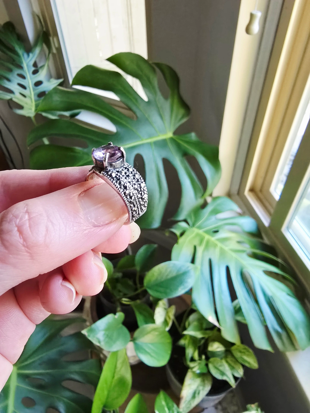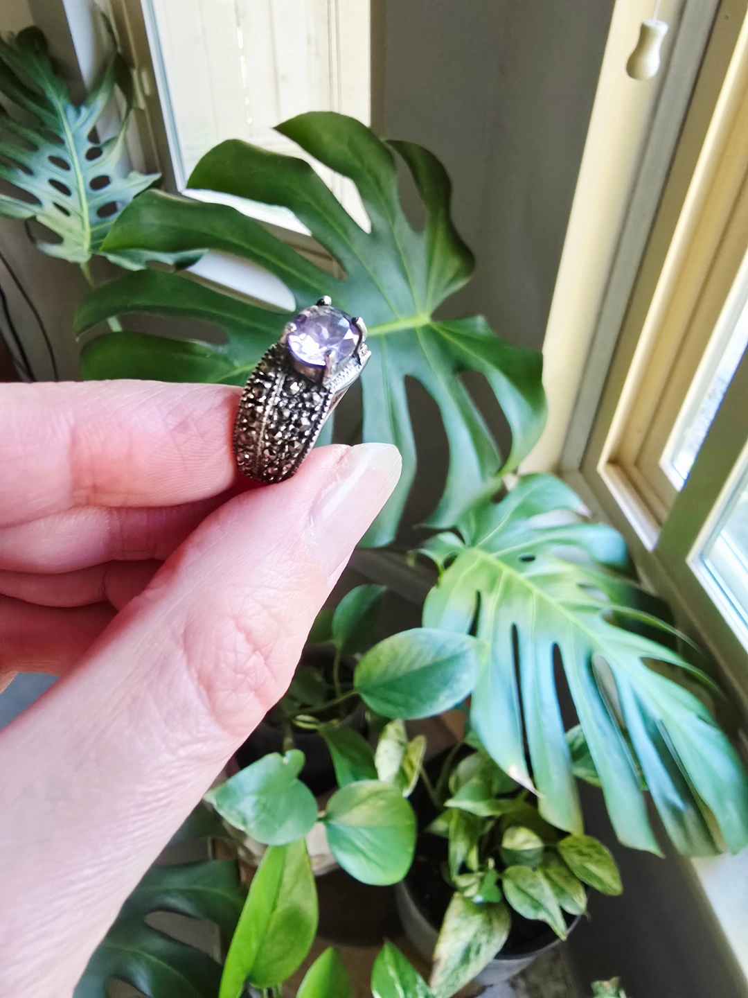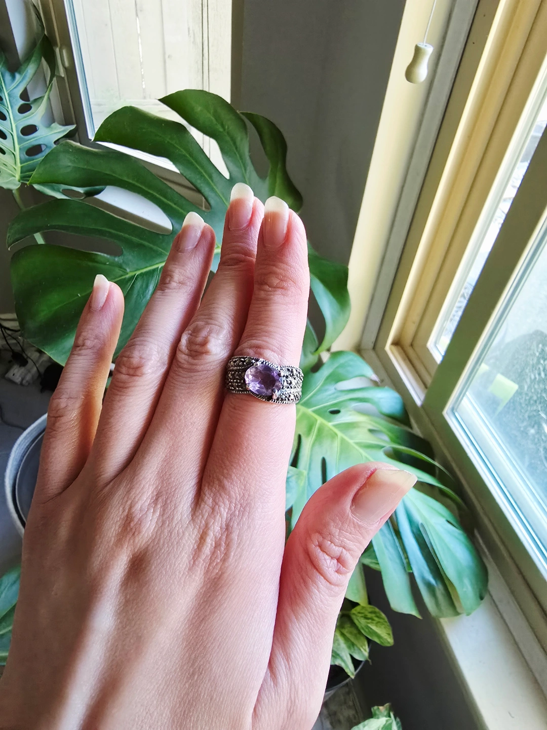 69New with tag Amethyst Marcasite natural gemstone 925stamp sterling silver ring. Size 6.5 Detail below. All Genuine. We are selling gemstones jewelry since 2001. Stores closed. All items are new with tags and healing properties cards. Please allow at least 24 hours for me to check & pack your order(s), thank you. No Return. No Exchange. Serious Buyer Only. Half Price Cut Offer Will Be Ignored. No Holds Without Deposit. Pick up from Richmond Railway & Williams. Or send by Canada Post (extra fee). By CANADA POST (Extra fee for postage & packing): (a) Regular Post: +$3 (no tracking number, 3-5 business days) (b) Xpresspost: +$20 with tracking number, 1-2 business days) * Add signature: +$3 You can find my items posted here: https://www.facebook.com/marketplace/profile/897440322/?ref=permalink&mibextid=dXMIcH Nsnp home. Cross posted. Thank you for supporting me as Local Small Business. #gemstone #crystal #healing #bracelet #earrings #pendant #necklace #jewelryset #gift #powerfulstones