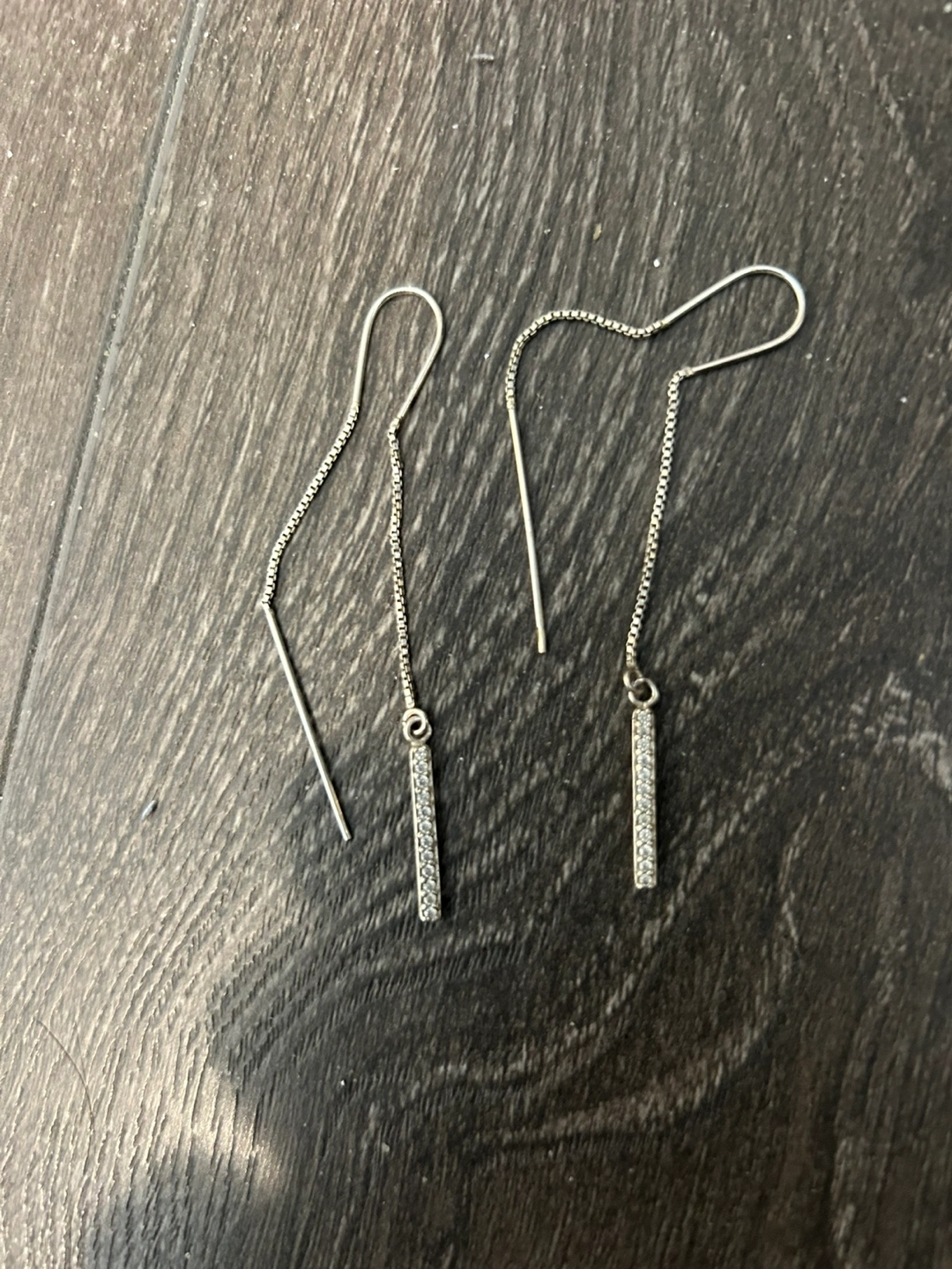 Beautiful silver dangle earrings. Features small clear cubic zirconia stones. Delicate and elegant design. Perfect for everyday wear or a special occasion.