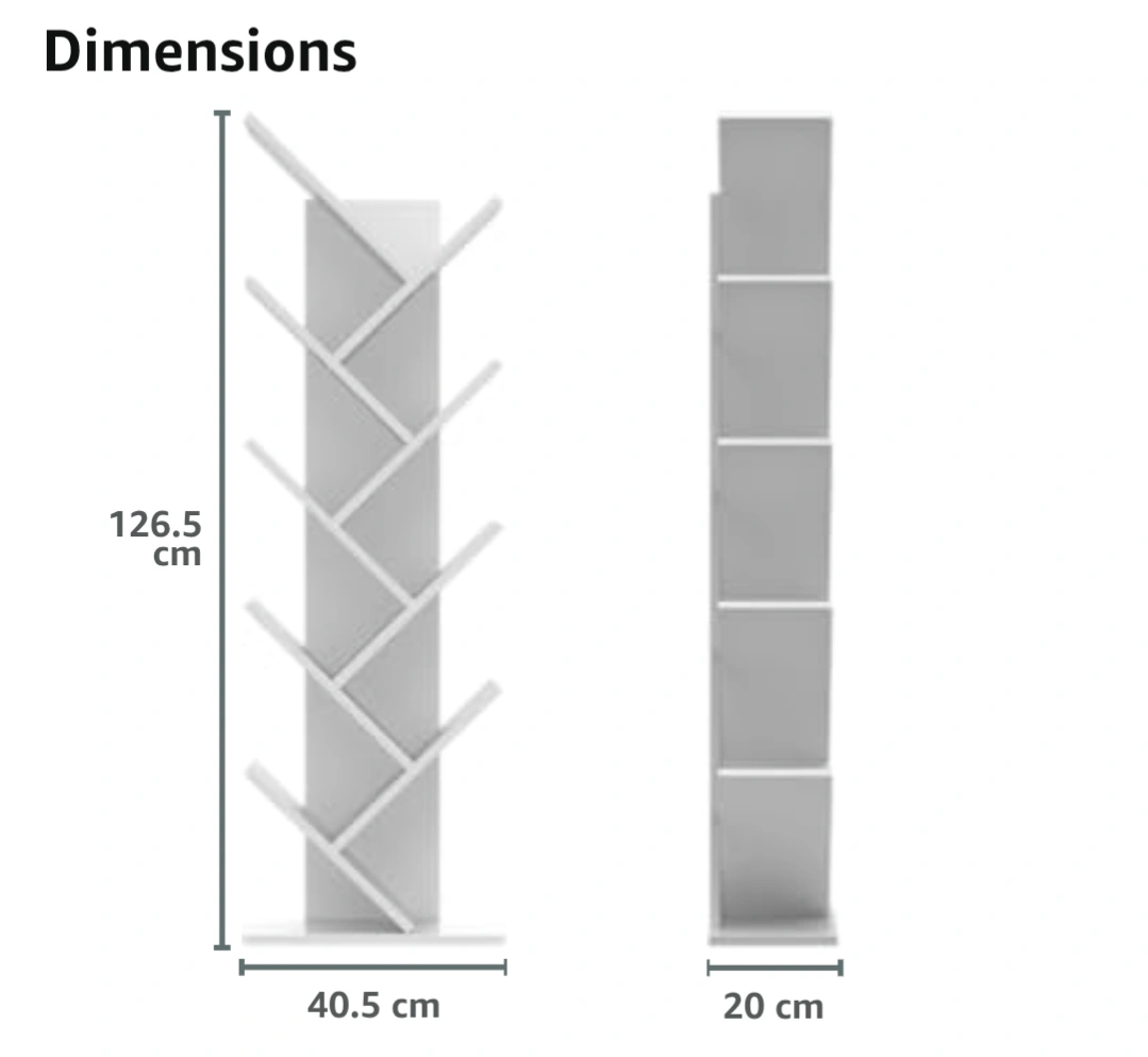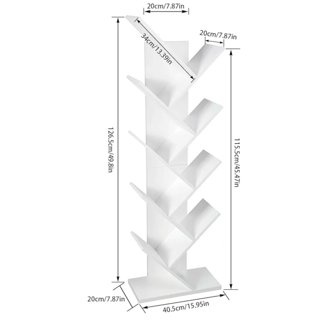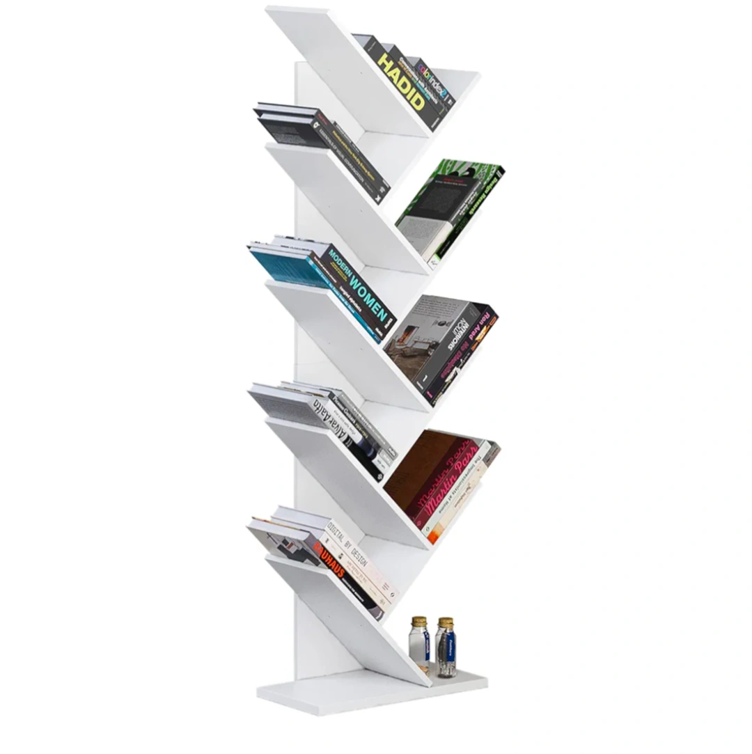 9-Shelf Bookshelf, Tree Bookcase, 5kgs Per Shelf (White)