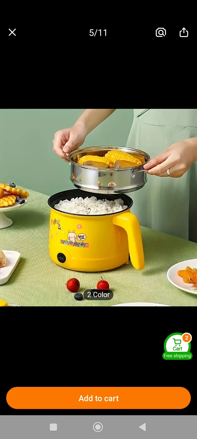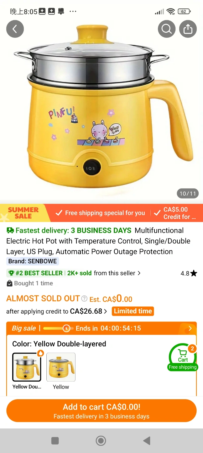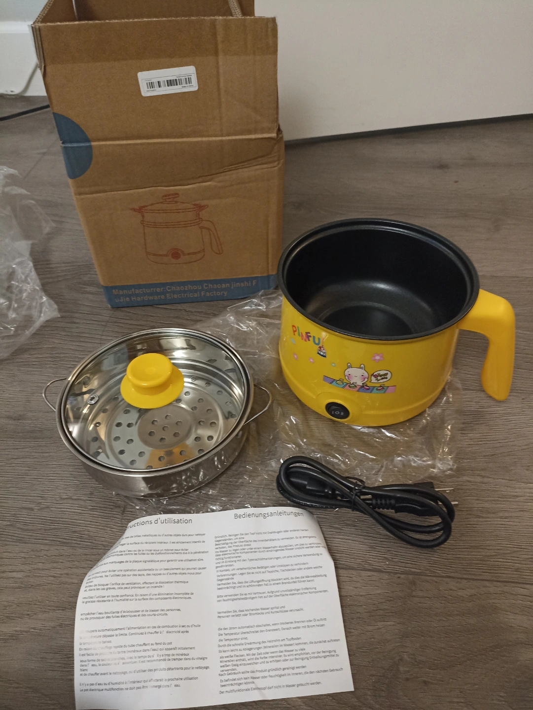 Yellow double-layered electric hot pot. Automatic power outage protection.