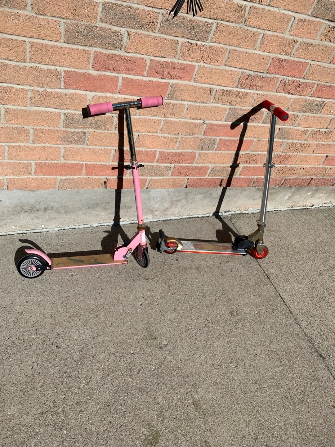 2 Fun Scooter for Kids, teens and children or even adults to use on a relaxing day for some fun! Alternative to biking, scooters are a fun way to ride around on Boring to stay at home, get some exercise and try on this scooter to exercise and to master steering and riding and staying balanced for your child. Great as a gift for your child, niece, nephew, friends to use. Step on the back brake pedal to brake and stop your scooter from moving The height can be easily adjusted to fit various need for comfortable position use Features rear braking system, slip-resistant tire, big wheels and low deck, your kids will enjoy a smooth and fun ride experience. Bring smile back on your child's face. * Help your little one perfect their sense of balance and build up strength * Wide textured foot deck help to maintain balance * Adjustable handlebar makes it usable for kids of many ages * Lightweight yet sturdy frame allows for easy transport when not in use * Rear brakes for extra stability as well as being able to safely stop Cheap - message me Can deliver or pick up