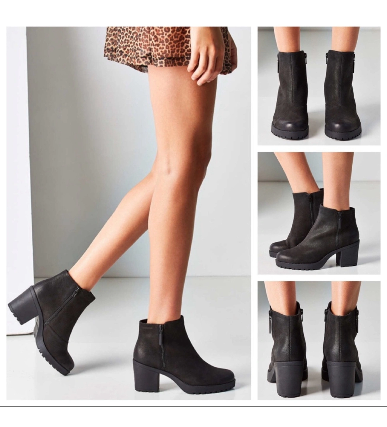 Vagabond Grace features a full nubuck upper, breathable textile and synthetic lining, TPR out sole unit, soft textile vamp lining, goat leather insole cover, contrasting stitching accents, tooth style tread, chunky block heel, side zip fastening and a pull tab on the back with a single elastic side panel.