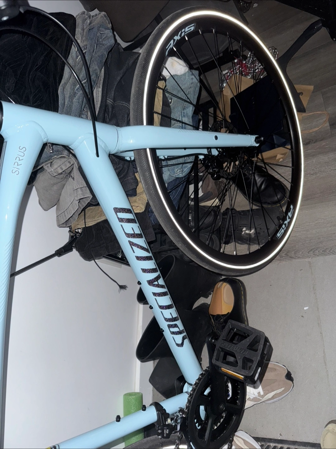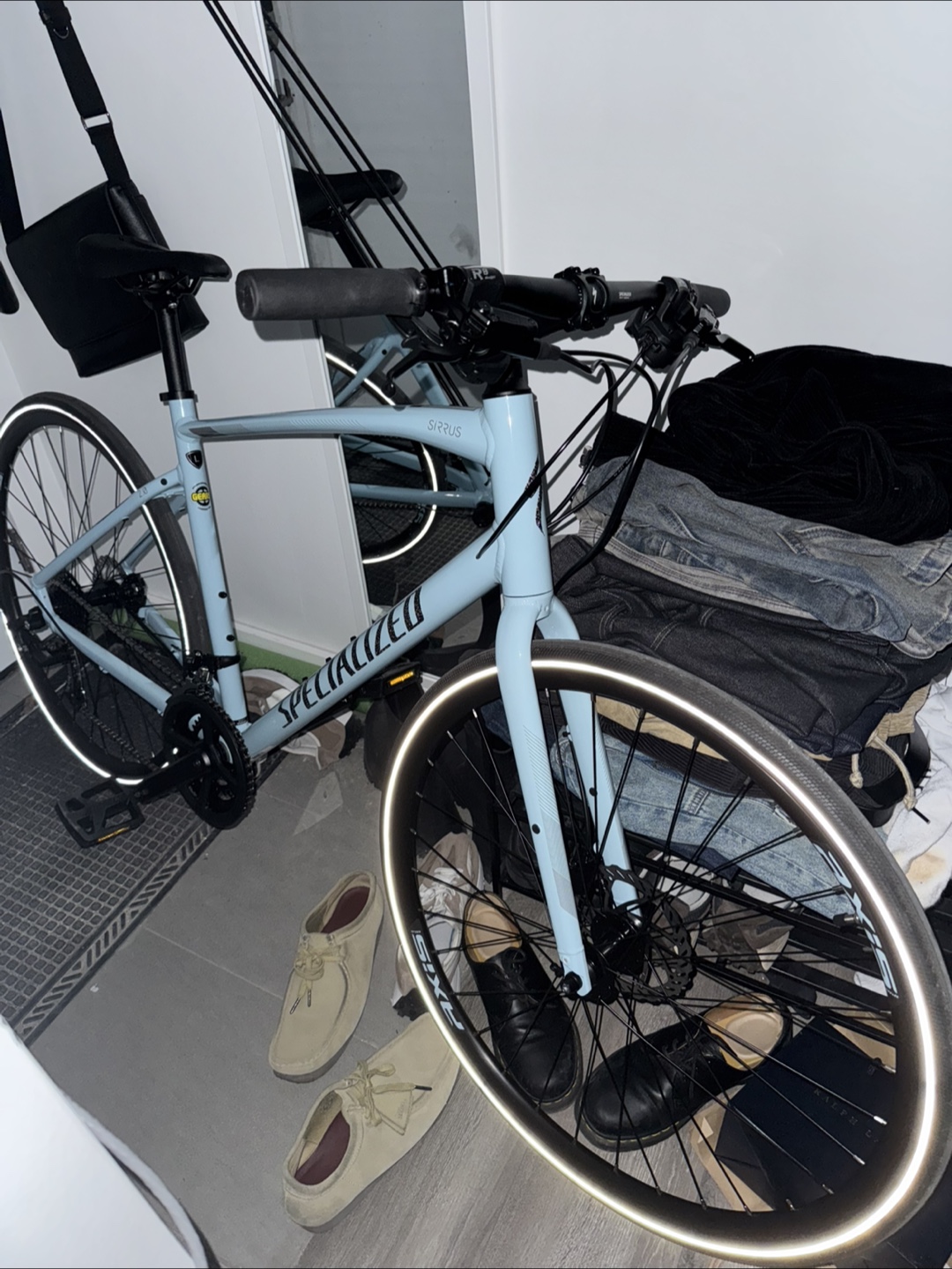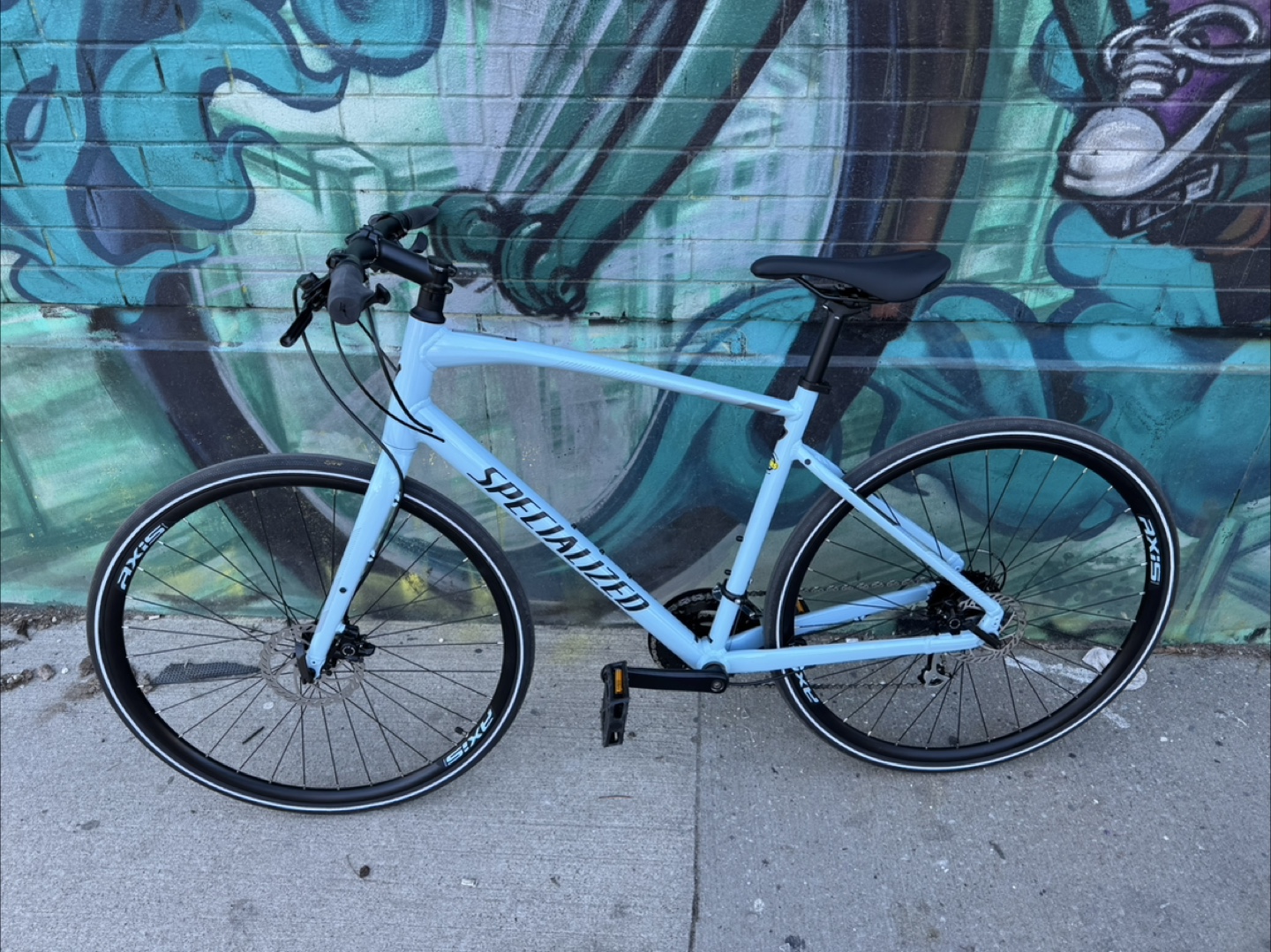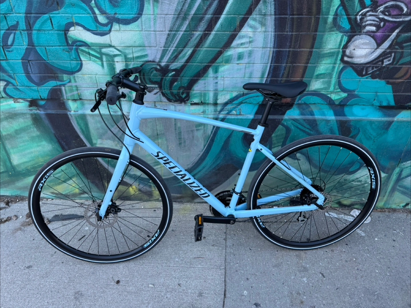 Specialized Sirrus 2.0 hybrid bicycle. Light blue colour. Excellent condition. Ready to ride. Also give away phone holder for bike with. Open to offer, but reasonable offer. Size: L
