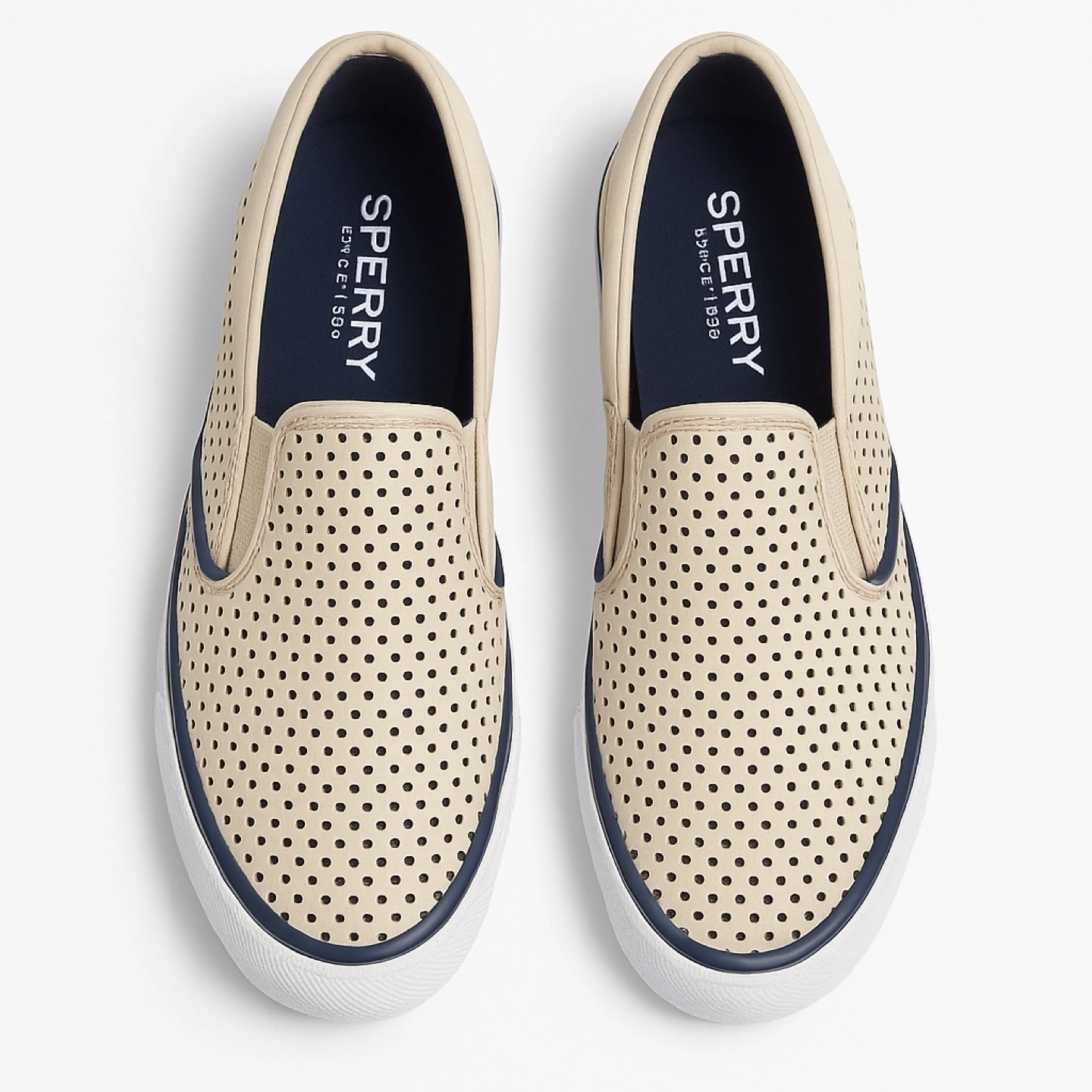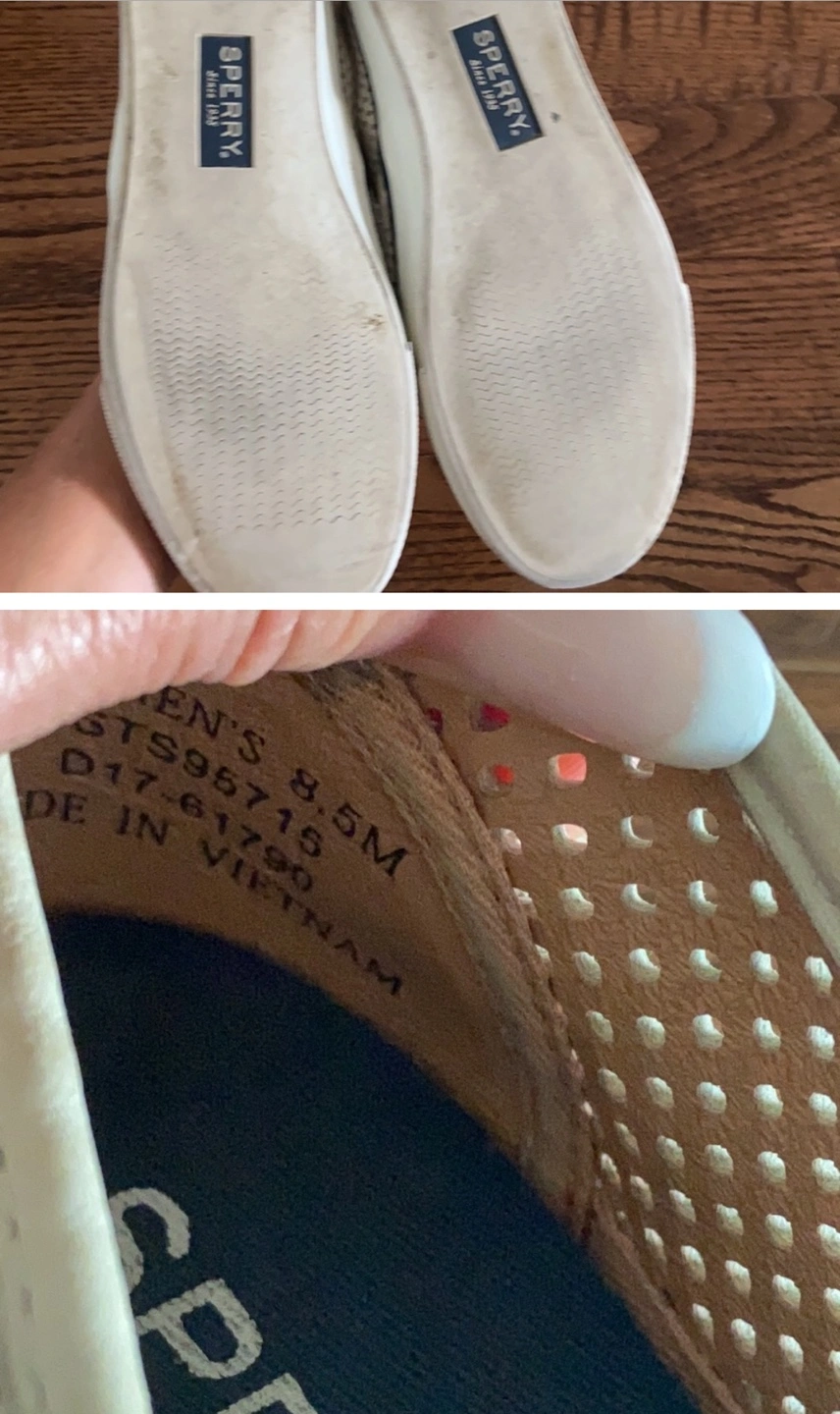 Lightly used Sperry slip-on sneakers. Beige colour. These go with everything dresses shorts pants Perforated design. 9.5 women’s ☺️