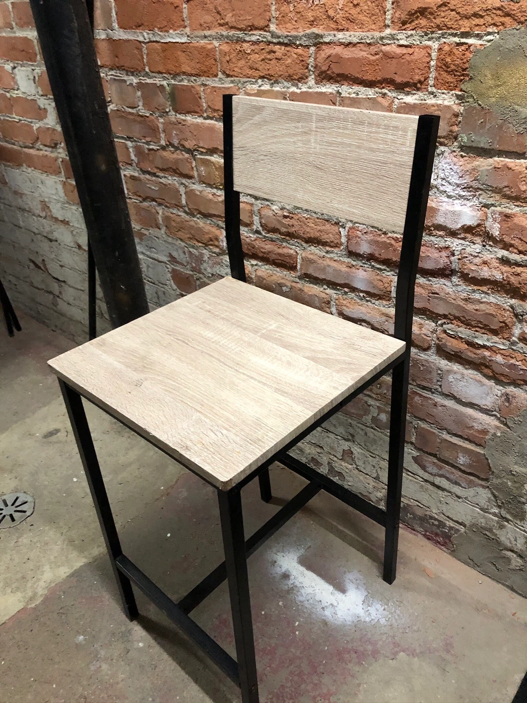 Small Desk - Light Wood Top, Black Metal with chair Legs