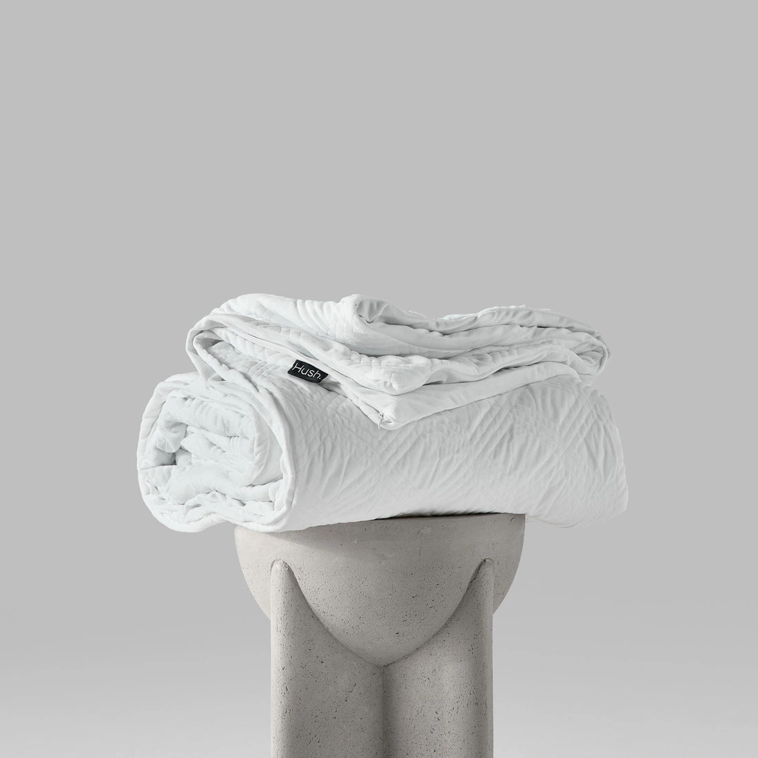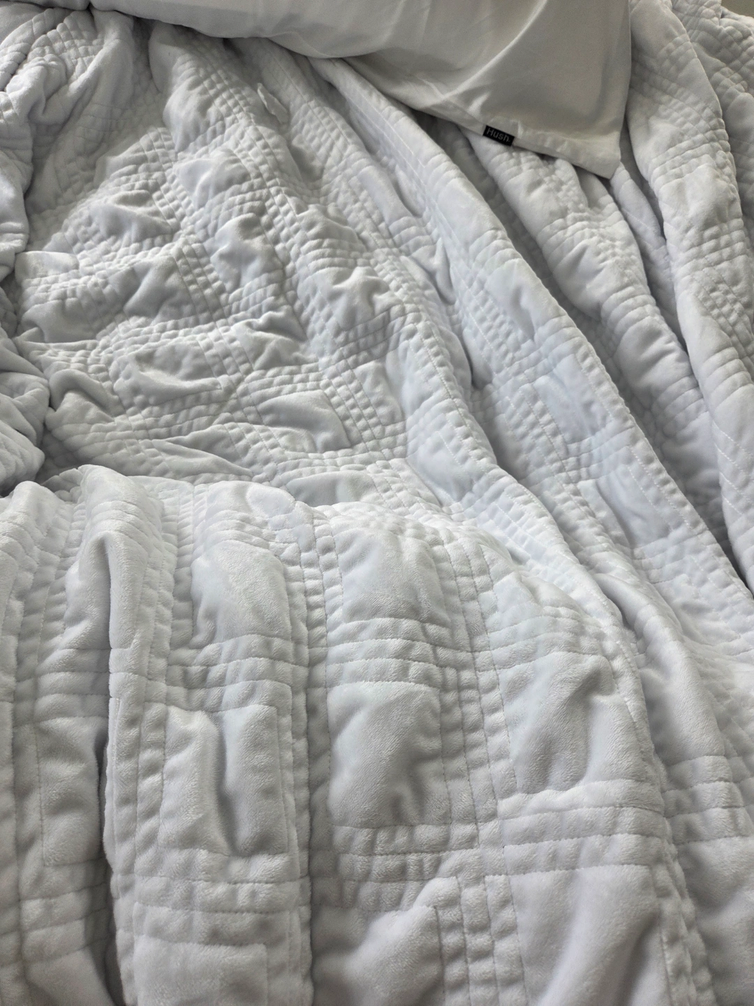 Weighted blanket, white colour. Soft and comfortable. Good for sleep. Includes original packaging. was gifted to me. it's to heavy for me personally it's 35lbs . not a fan. so I'm selling maybe someone wants it. it's king size it is beautiful. and as I took it out of box I washed it already since it's coming from a warehouse right. so it's nice n clean