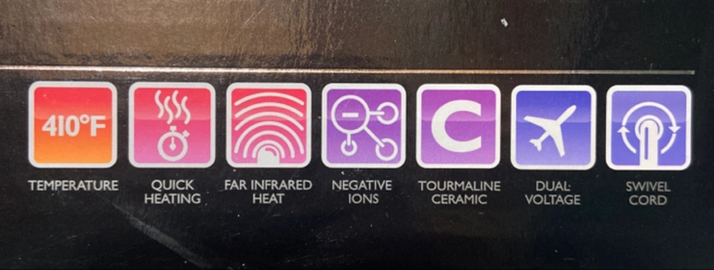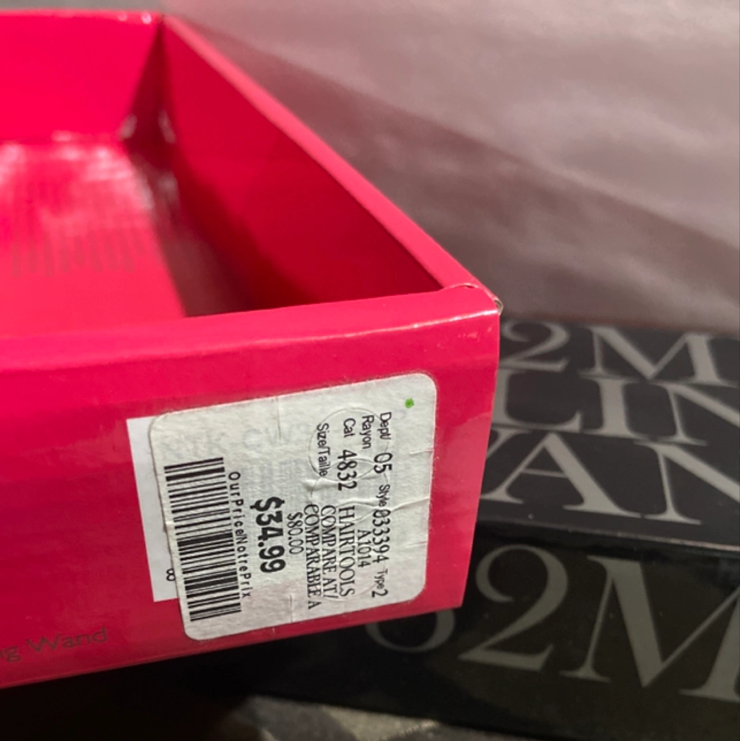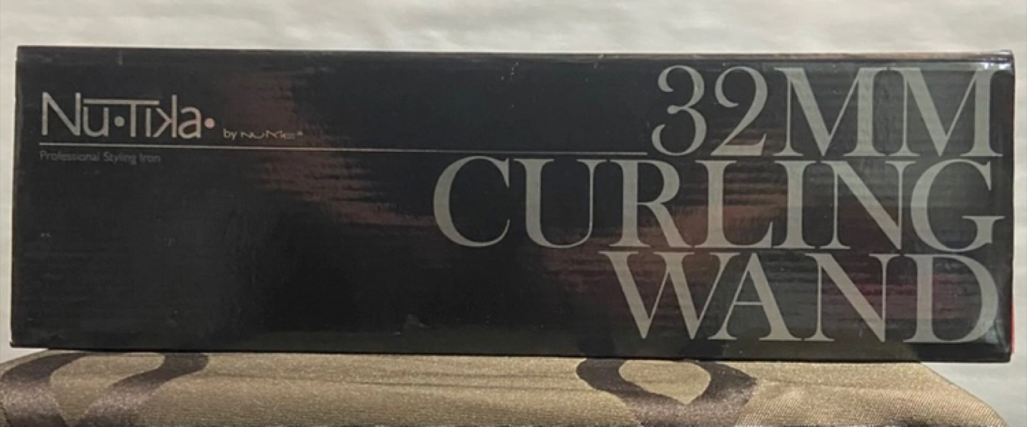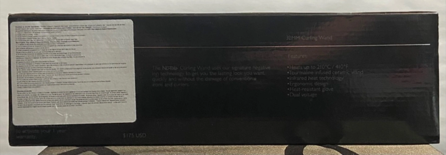 32mm curling wand. Professional styling iron. Heats up to 210°C/410°F. Features tourmaline infused ceramic barrel. Infrared heat technology. Ergonomic design. Heat-resistant glove included. Dual voltage. New