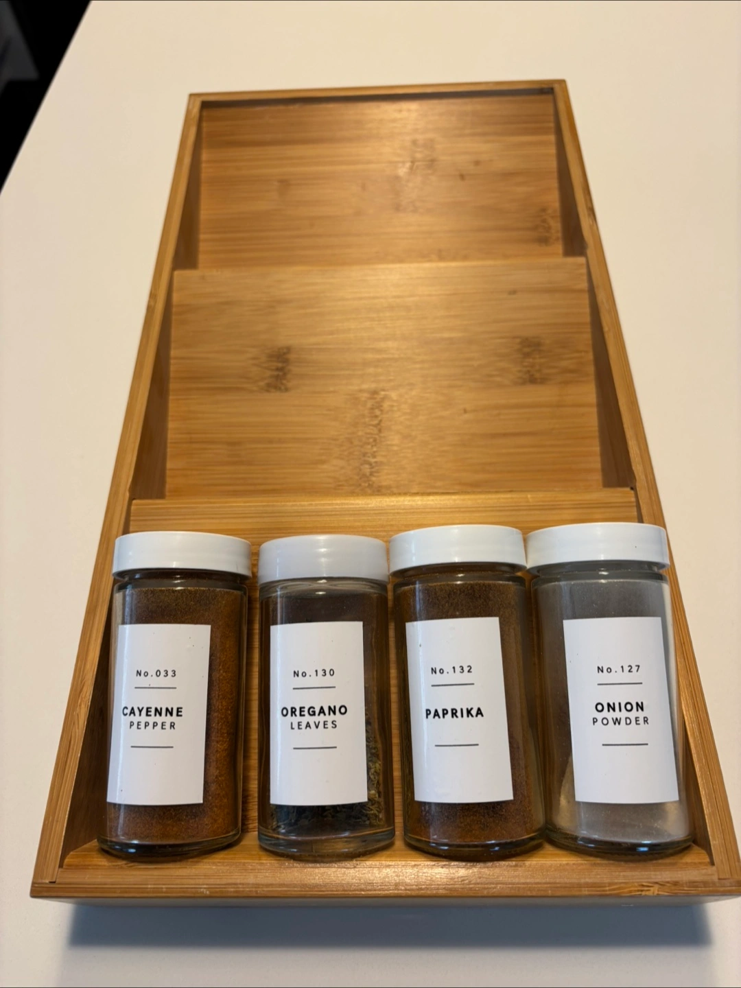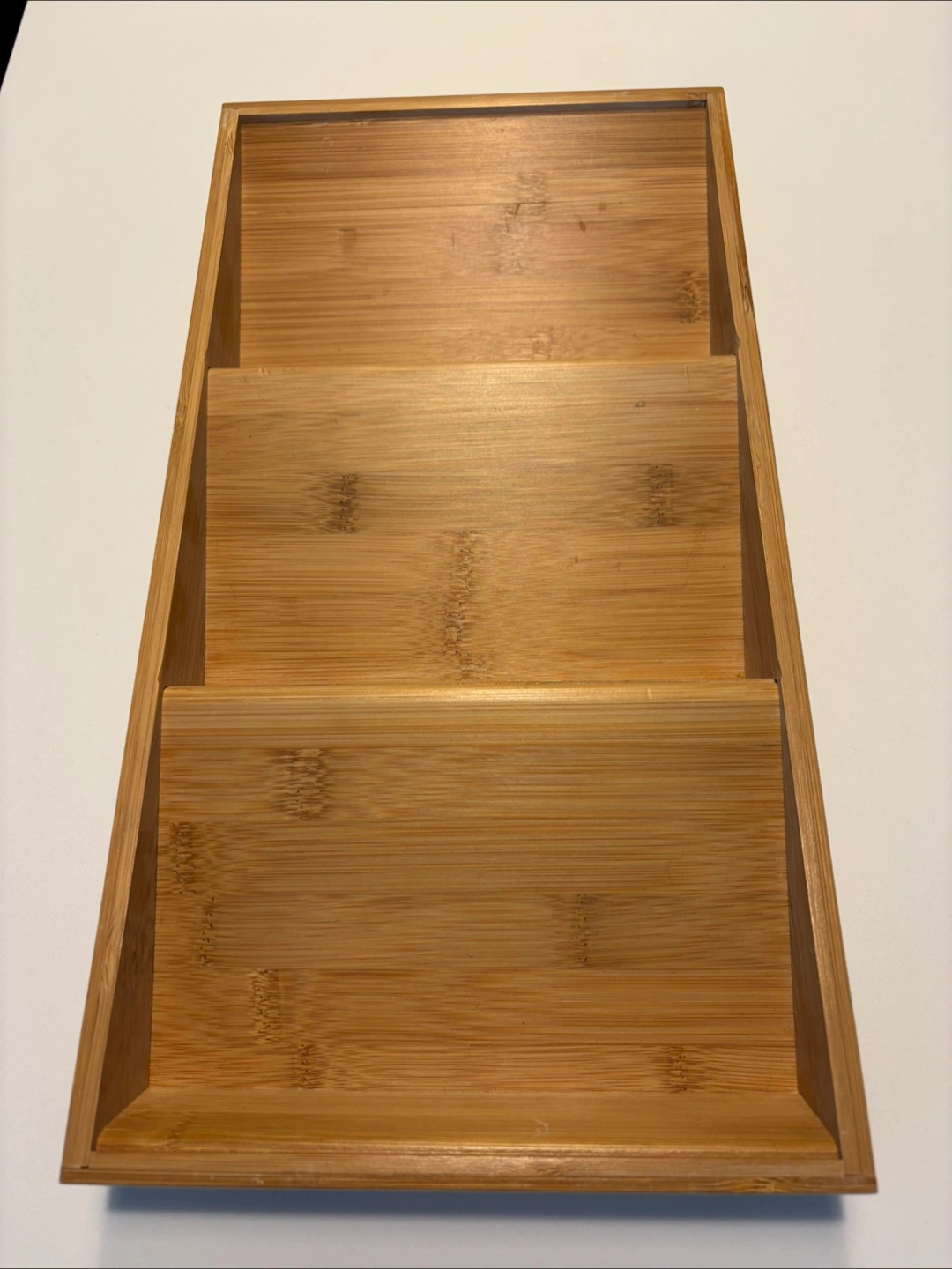 Three compartments. Perfect for spices, cutlery, or other small items.