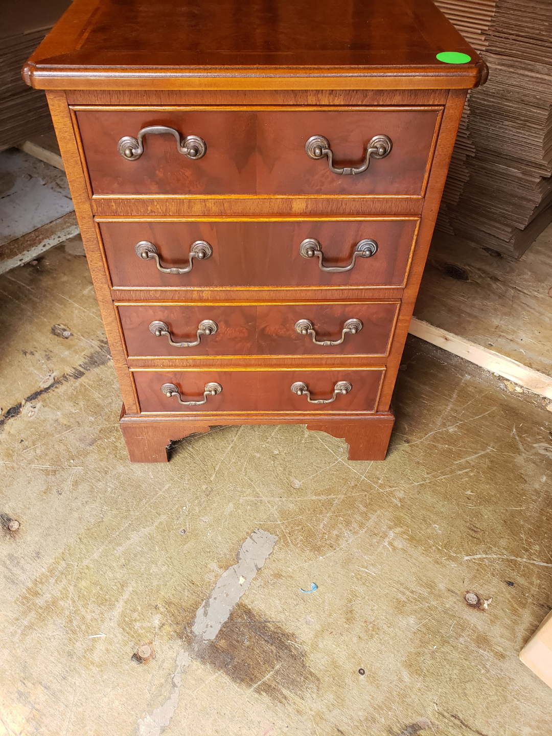 1 / 51 / 5Buy & SellVintage Wooden Chest of DrawersVintage Wooden Chest of Drawers$40Four-drawer wooden chest. Dark brown wood. Inlaid wood top. Classic style. Small size.ConditionGoodWHERE TO MEET11229View MapSELLERverifiedJamellMarine Park20412 reviews9 chats·5 favorites·208 viewsSEND CHAT TO SELLERHi Jamell! I’m interested in your listing.Hi Jamell! I’m interested in your listing.Get the Karrot app to chatSign In to chat