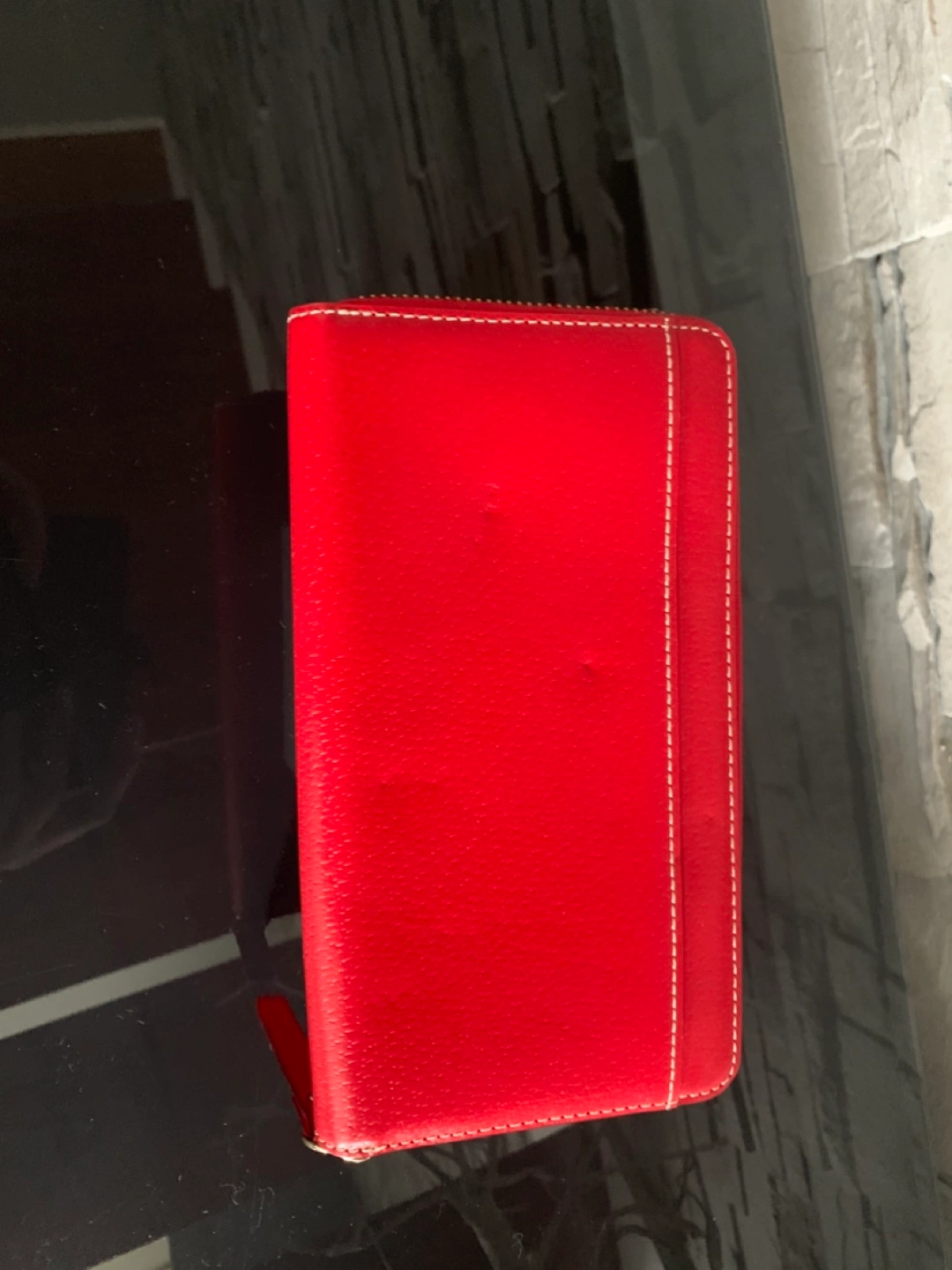 Red leather zip-around wallet. Brand new leather wallet. Price tags included. Paid $145.00 asking $50