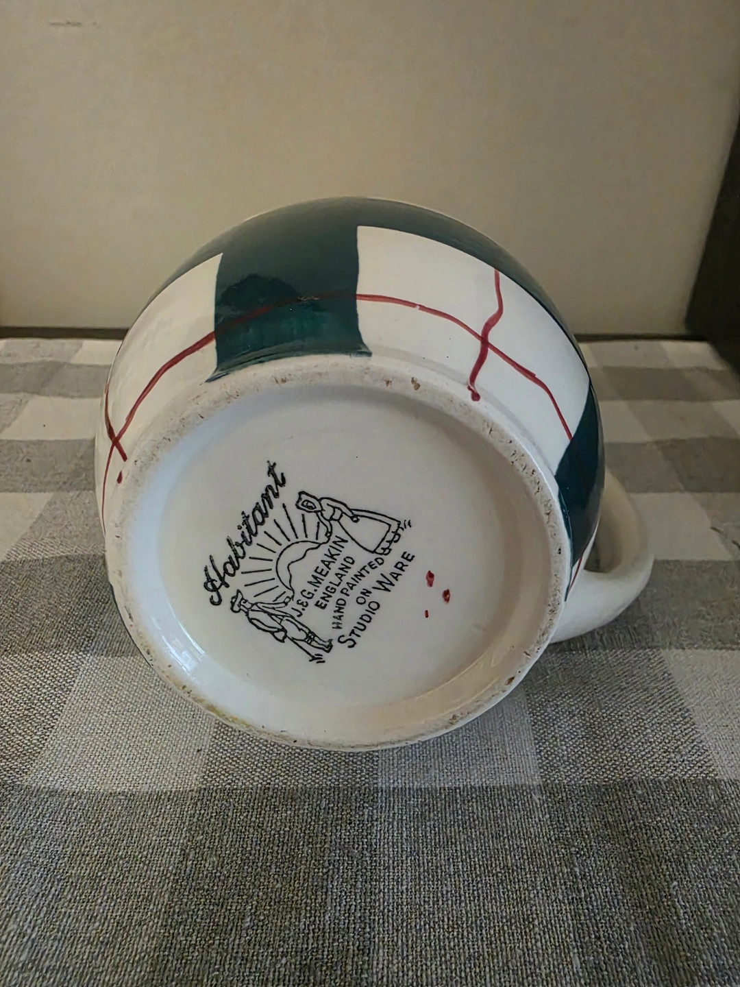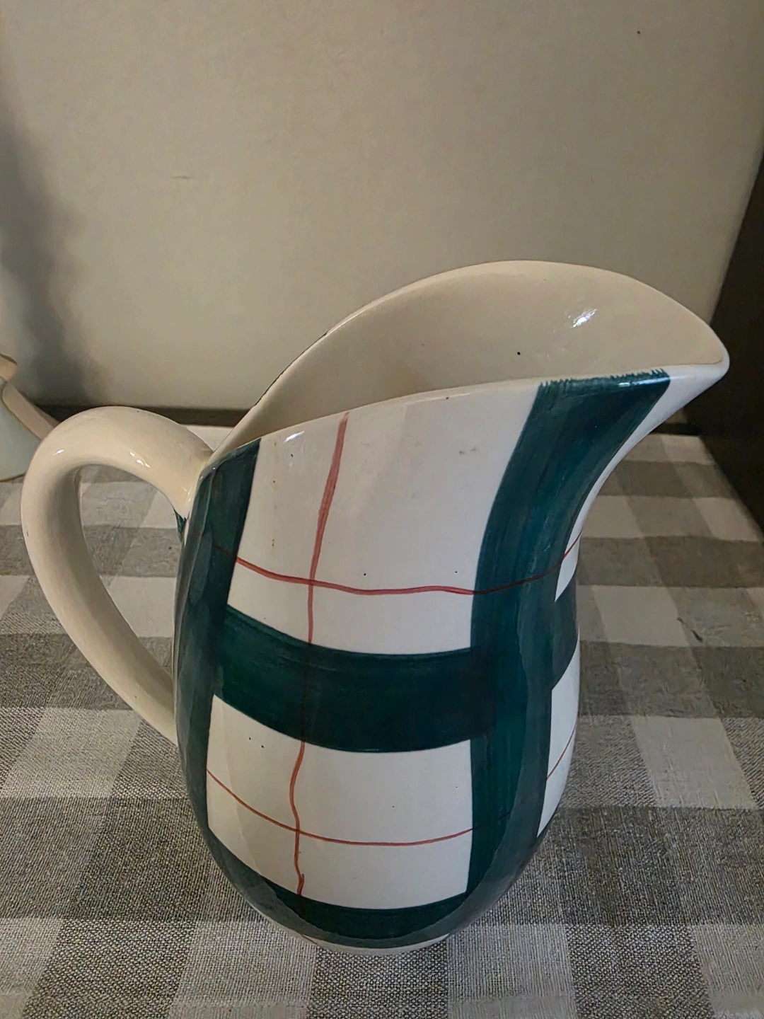 Vintage Hand-painted ceramic pitcher. Green and red plaid design. J&G Meakin Habitant Studio Ware Pick up at Yonge and Steeles