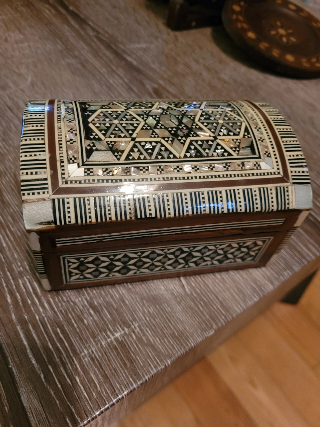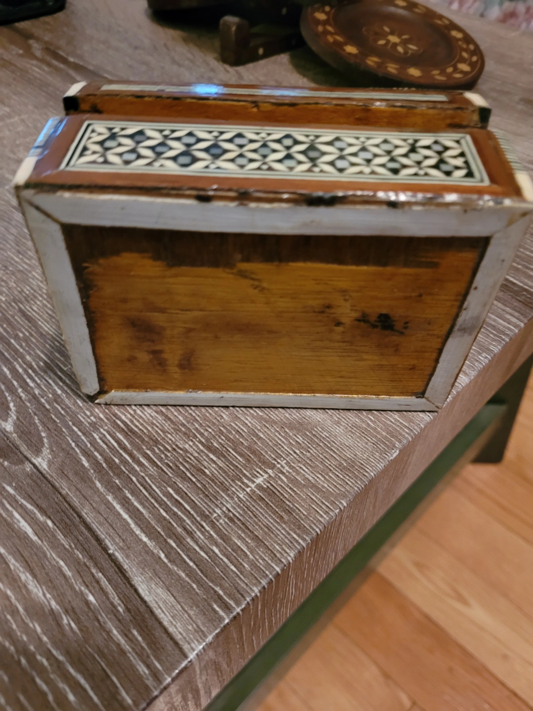 Vintage Wooden Box with Mother of Pearl Inlay