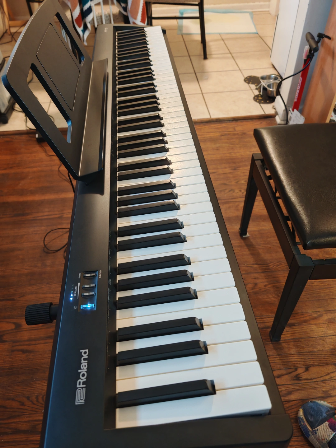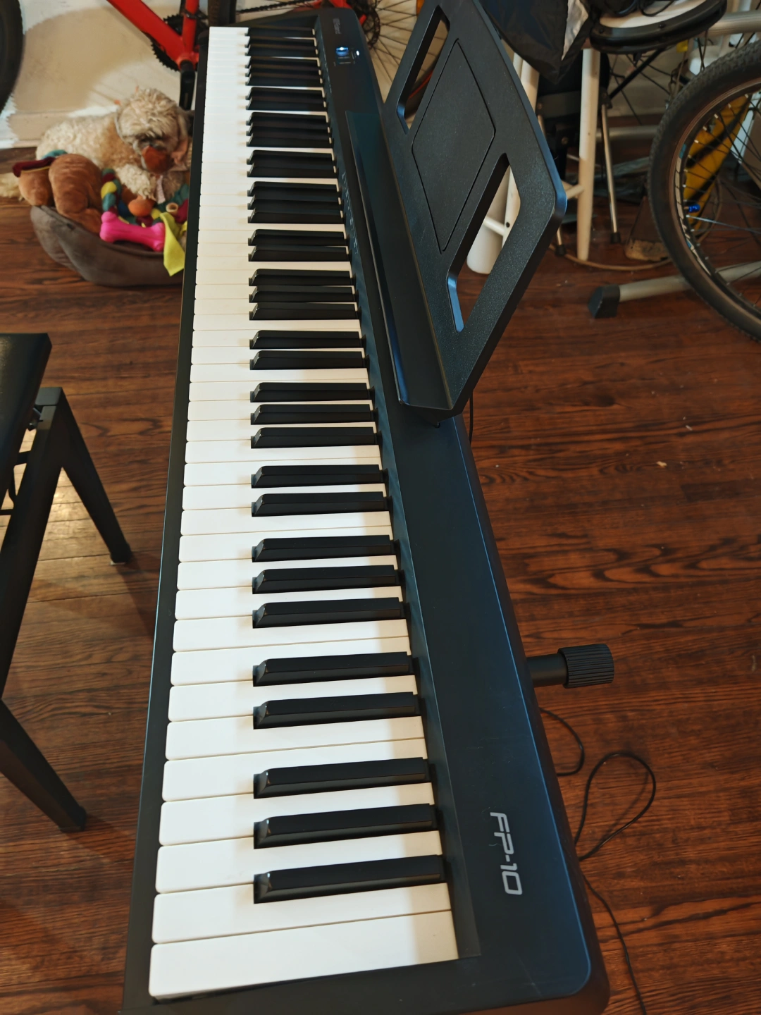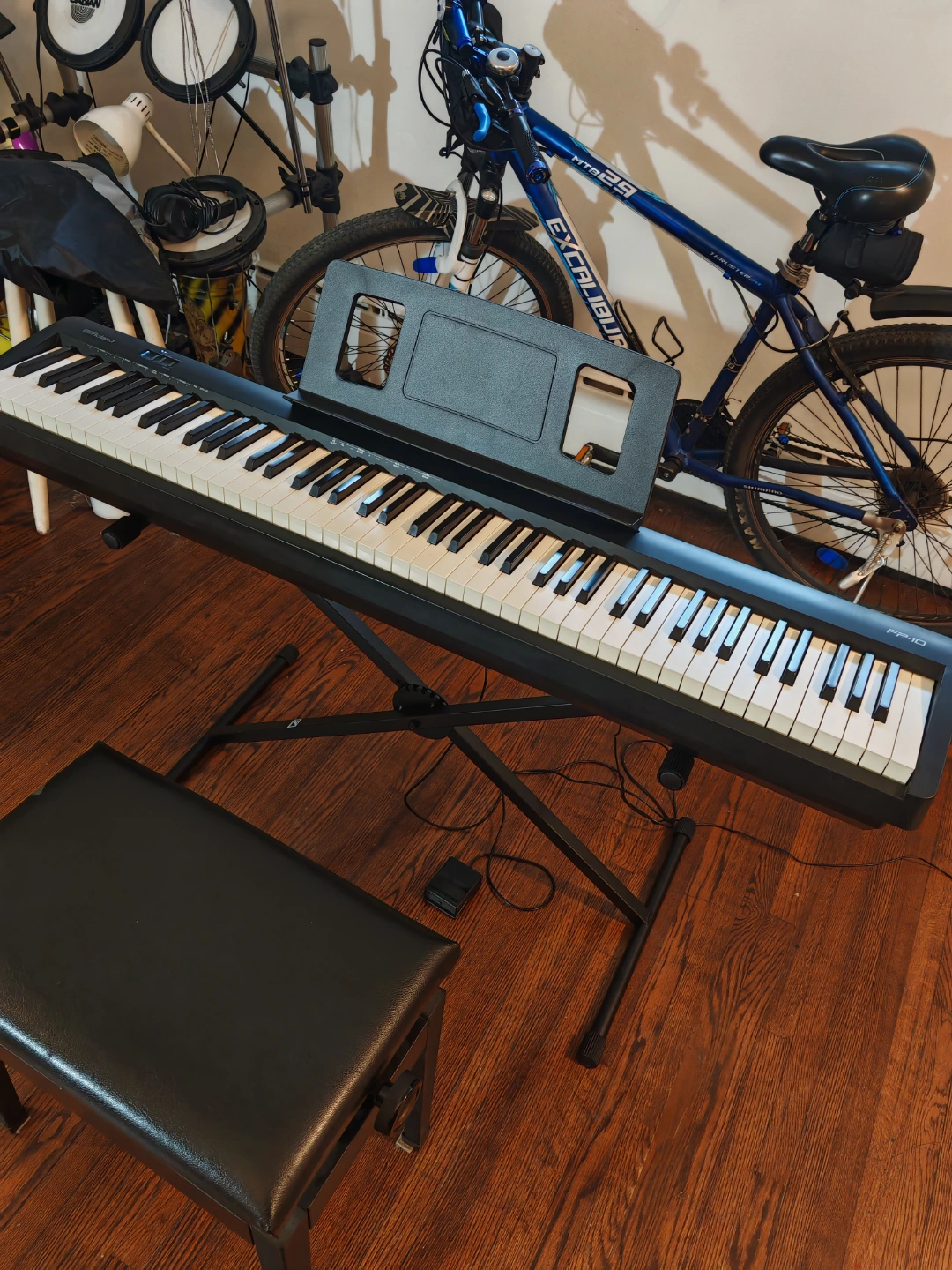 Roland FP-10, 88 fully weighted keys digital piano like new condition. It comes with stand, music rest, power adapter, headphones, sustain pedal and bench. The FP-10 isn't just for advanced players and is also the perfect quality instrument to get you started. This is what I love about digital pianos – they are for everyone no matter what the level. With 88 weighted keys and a great all round action, I was very happy indeed with my time on the Roland FP-10.