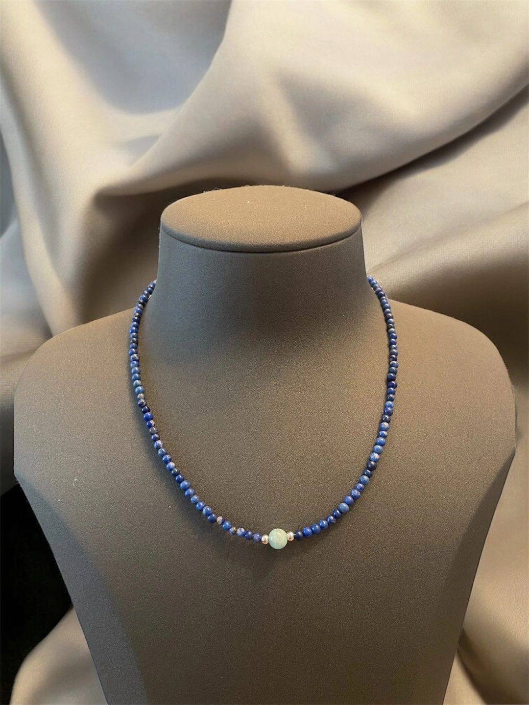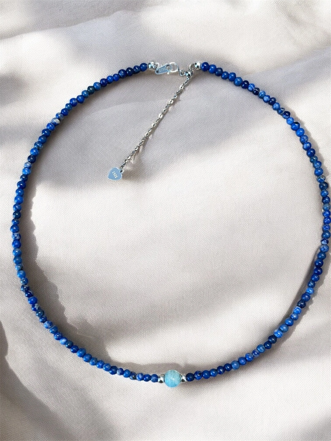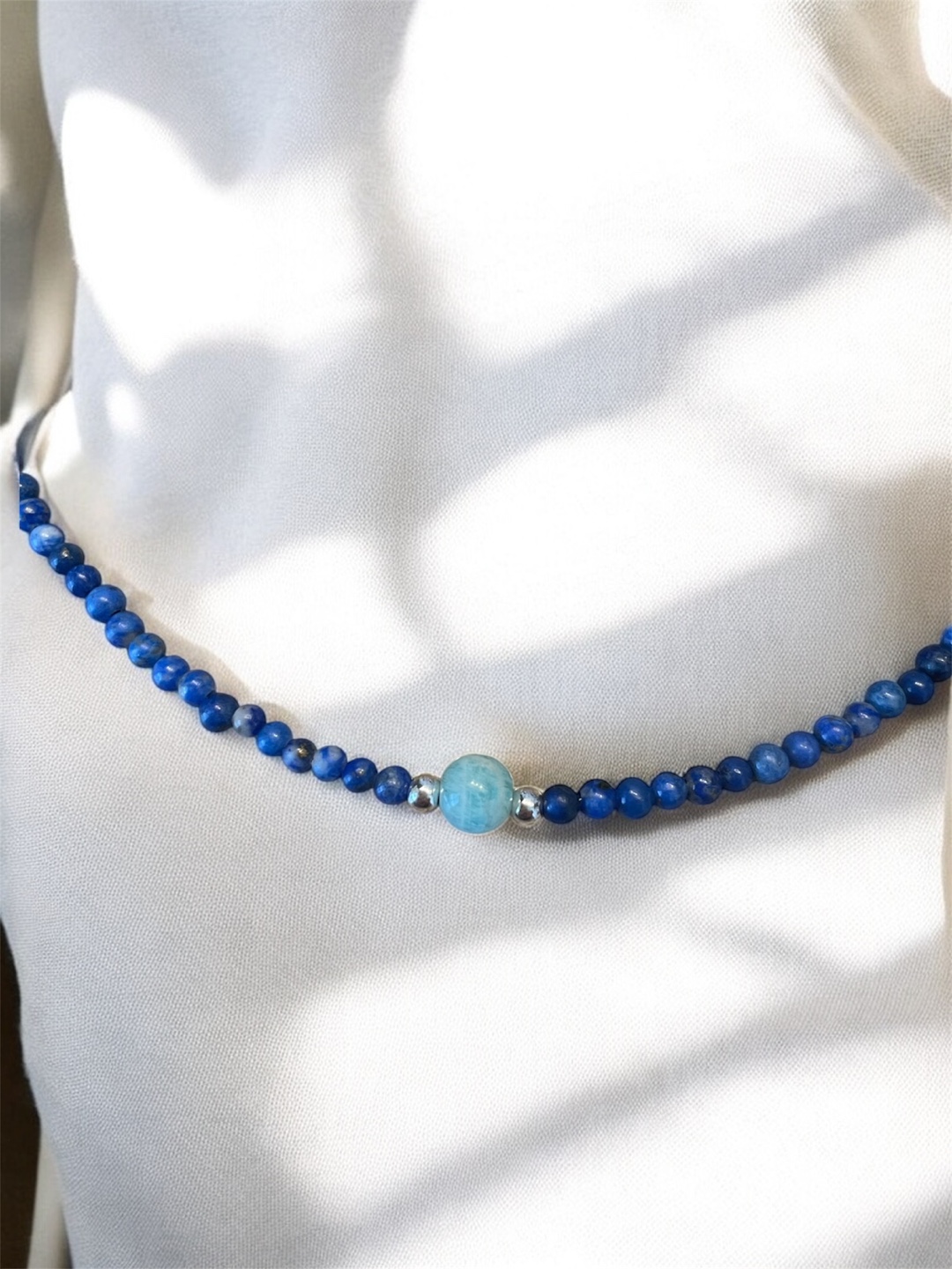Blue Lapis Lazuli and Aquamarine Beaded Necklace