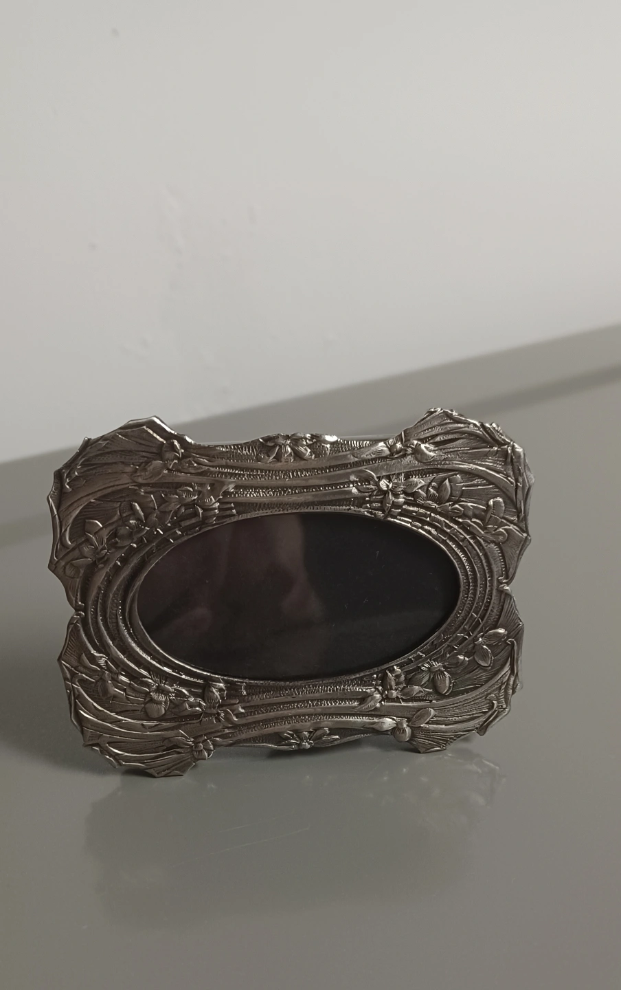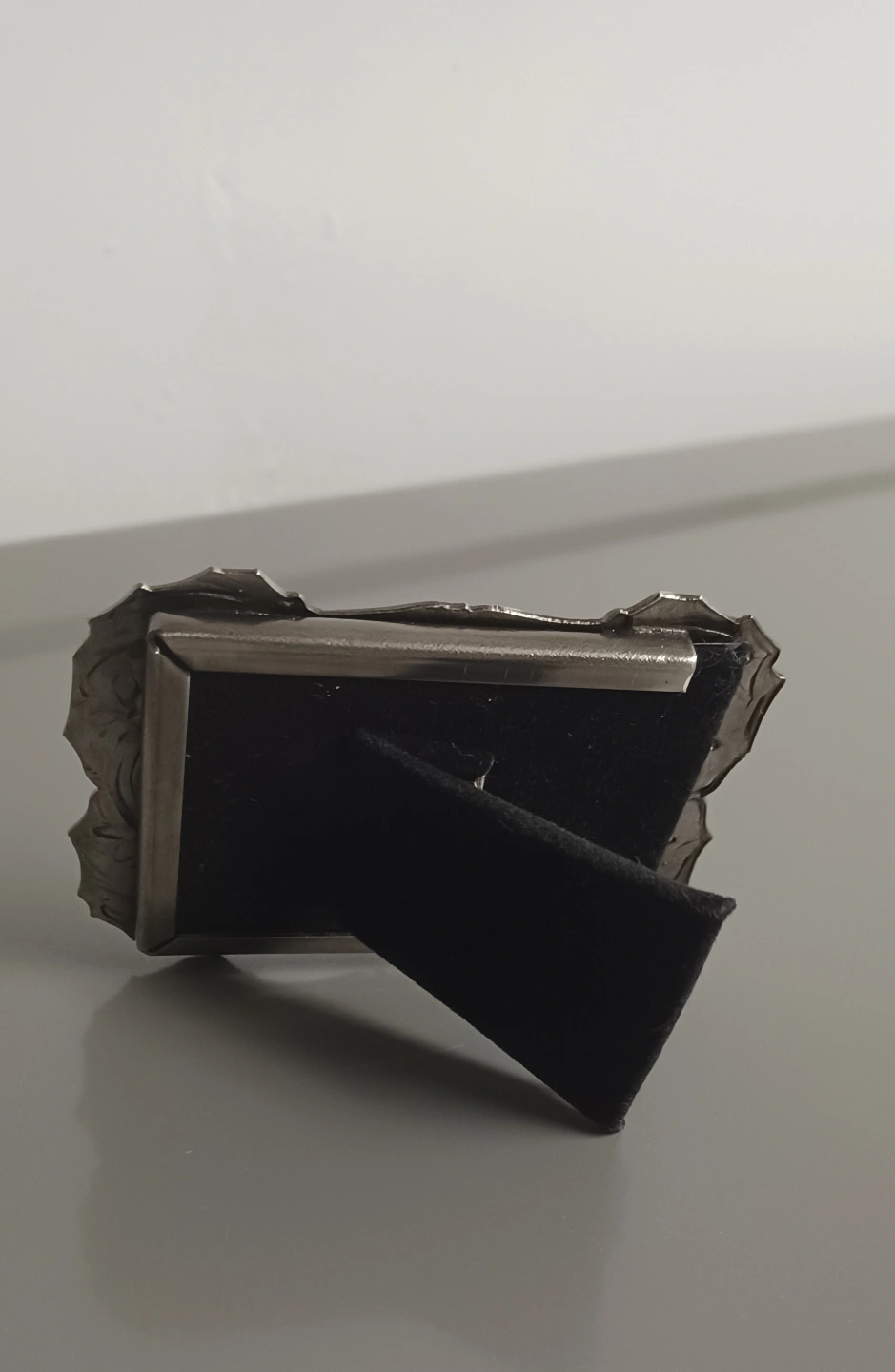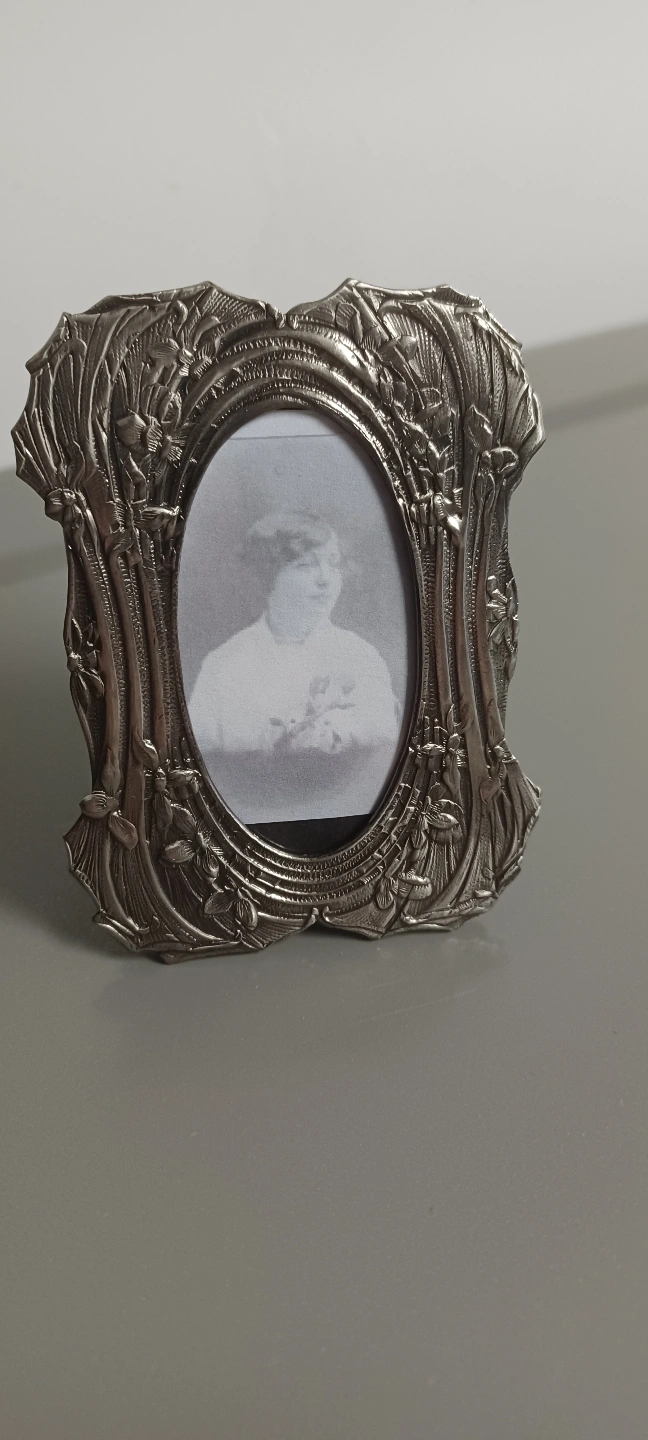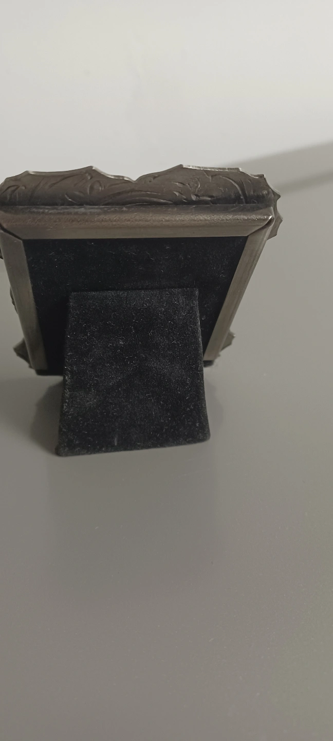 This is a small, decorative picture frame, perfect for adding a touch of vintage charm to any space. It's designed to hold a small photograph and features intricate detailing. Please note that this item is in new condition.