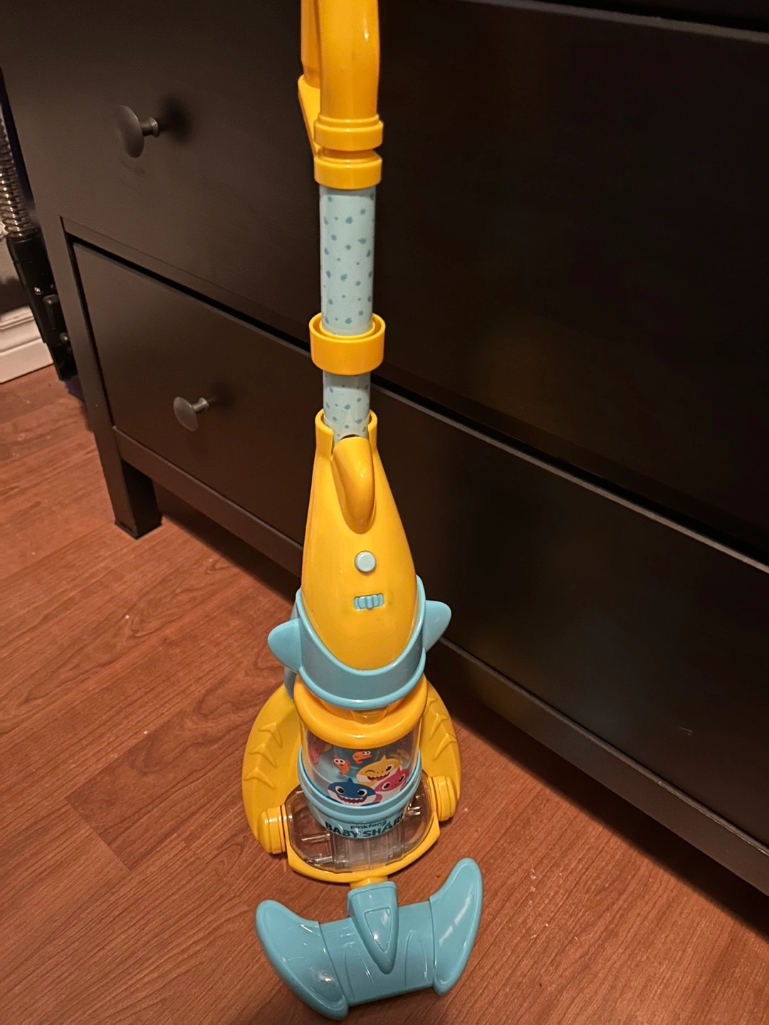 Adorable Baby Shark themed toy vacuum. Features bright colours and fun design. Perfect for imaginative play.