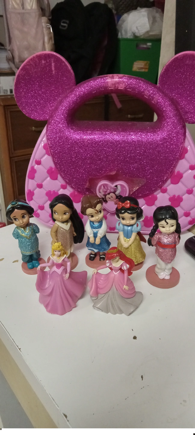 564Pink glitter purse shaped like Minnie Mouse ears. Includes several Disney Princess figurines. Great for imaginative play. price is firm