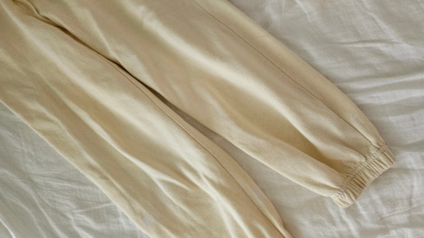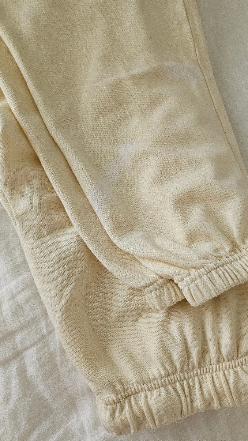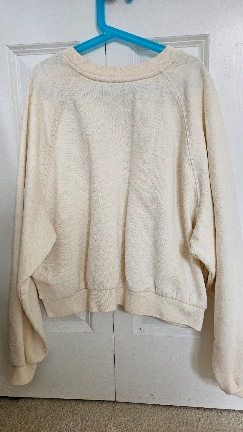 32Cream coloured Levi's cropped sweatshirt and jogger set. Size Medium. Soft material. Perfect for lounging. Small bleach stains on back of one sweat pant which is why price is cheaper.