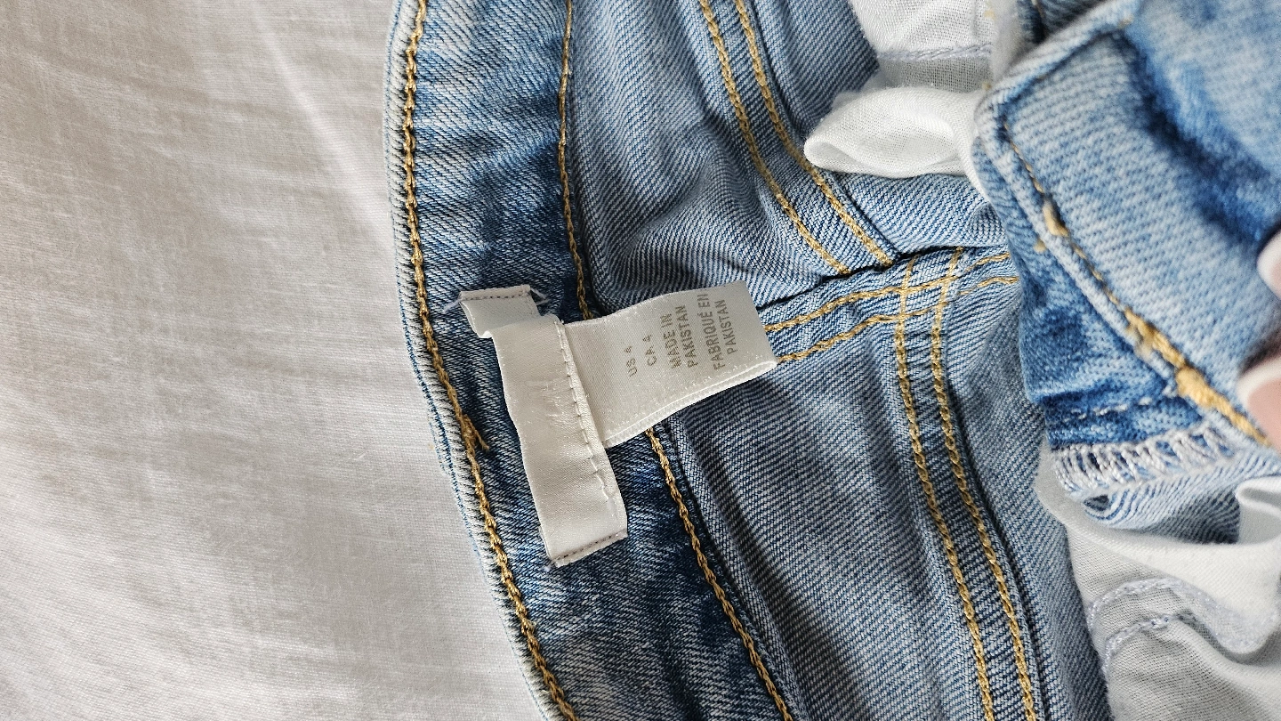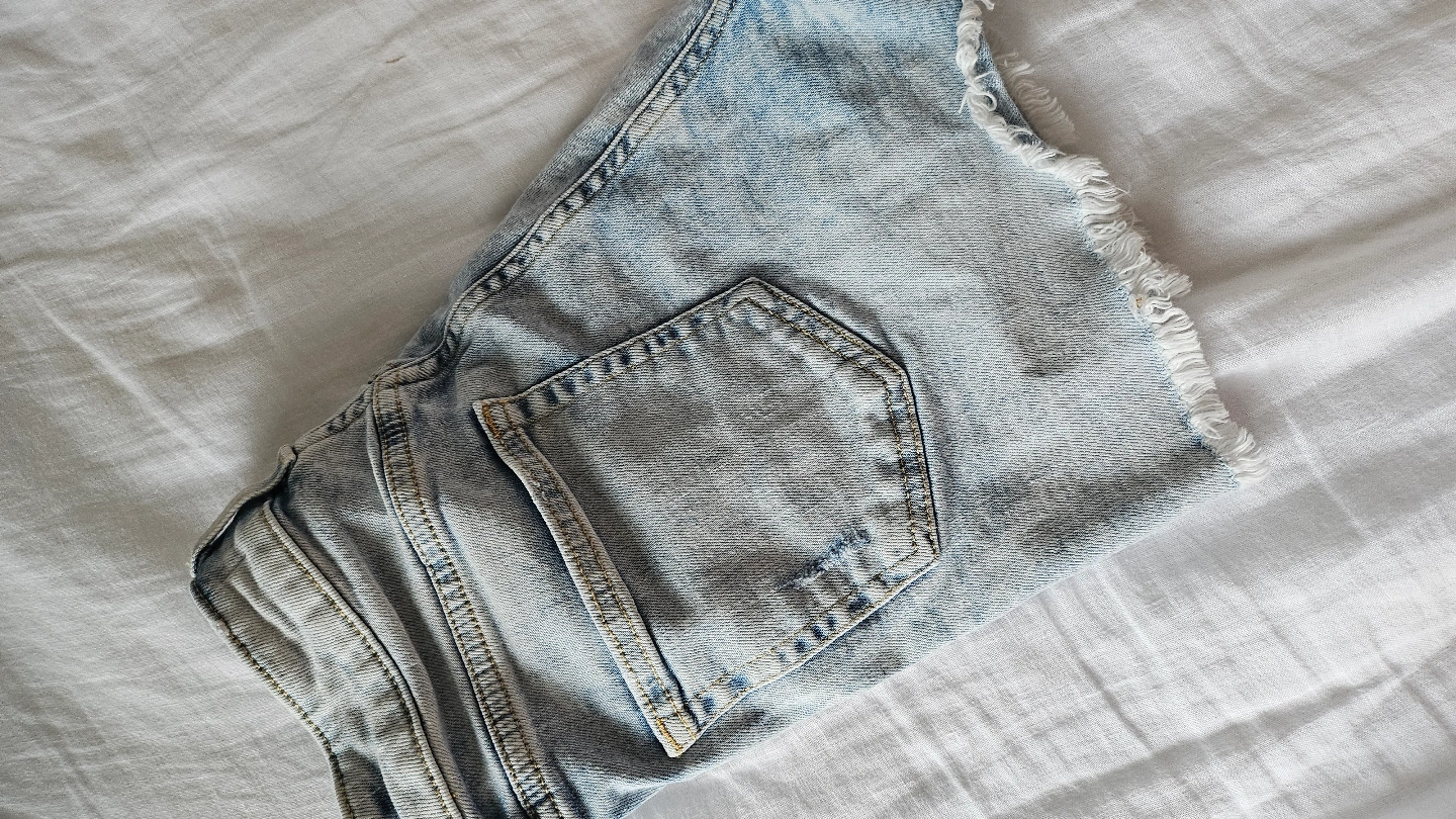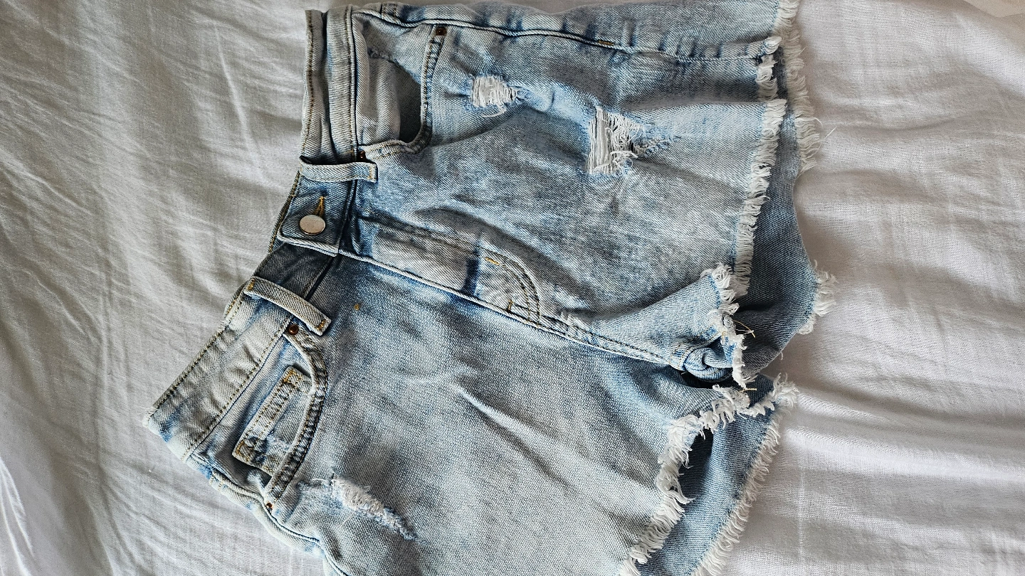 32Distressed denim shorts. Light wash. Size 4. Frayed hems.