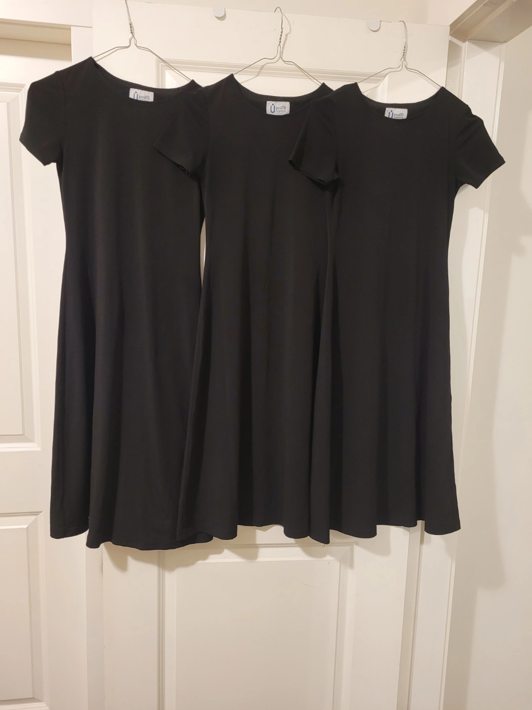 SELLING AS A BUNDLE ONLY Three black fit and flare dresses. Short sleeves, round neckline. Size extra small. Excellent condition. THREE DRESSES FOR 9$
