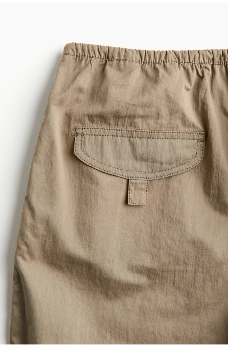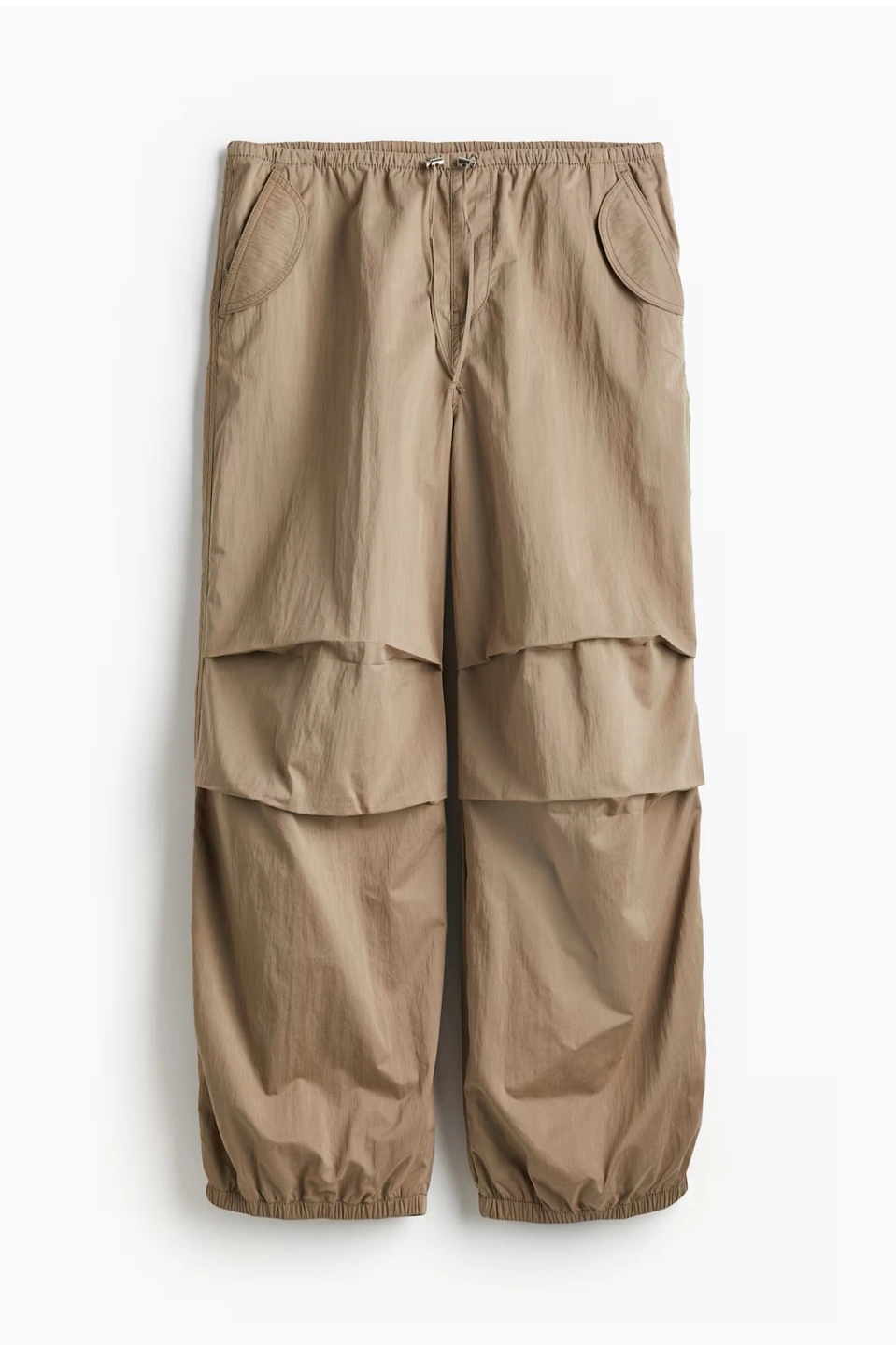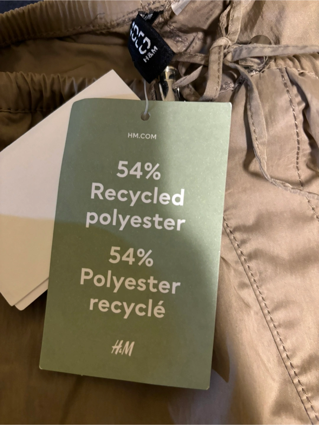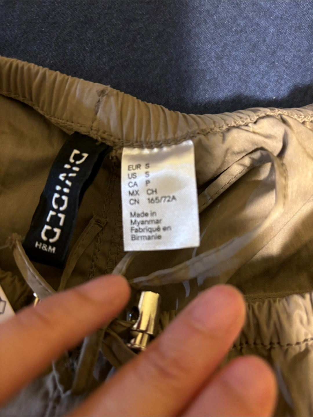 83Lightweight beige utility trousers. Elastic waistband with drawstring. Multiple pockets. Relaxed fit. Cuffed hems. Size small, but feels like M or L . Brand new with tags.