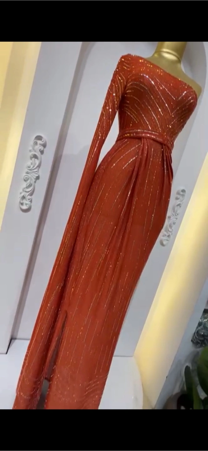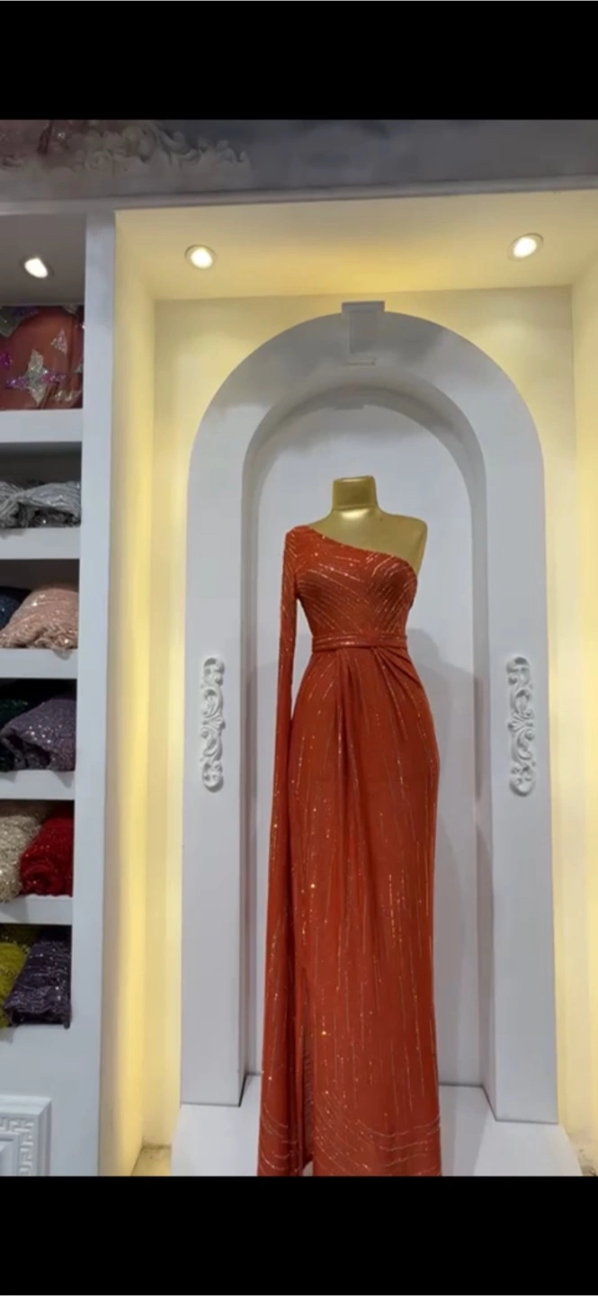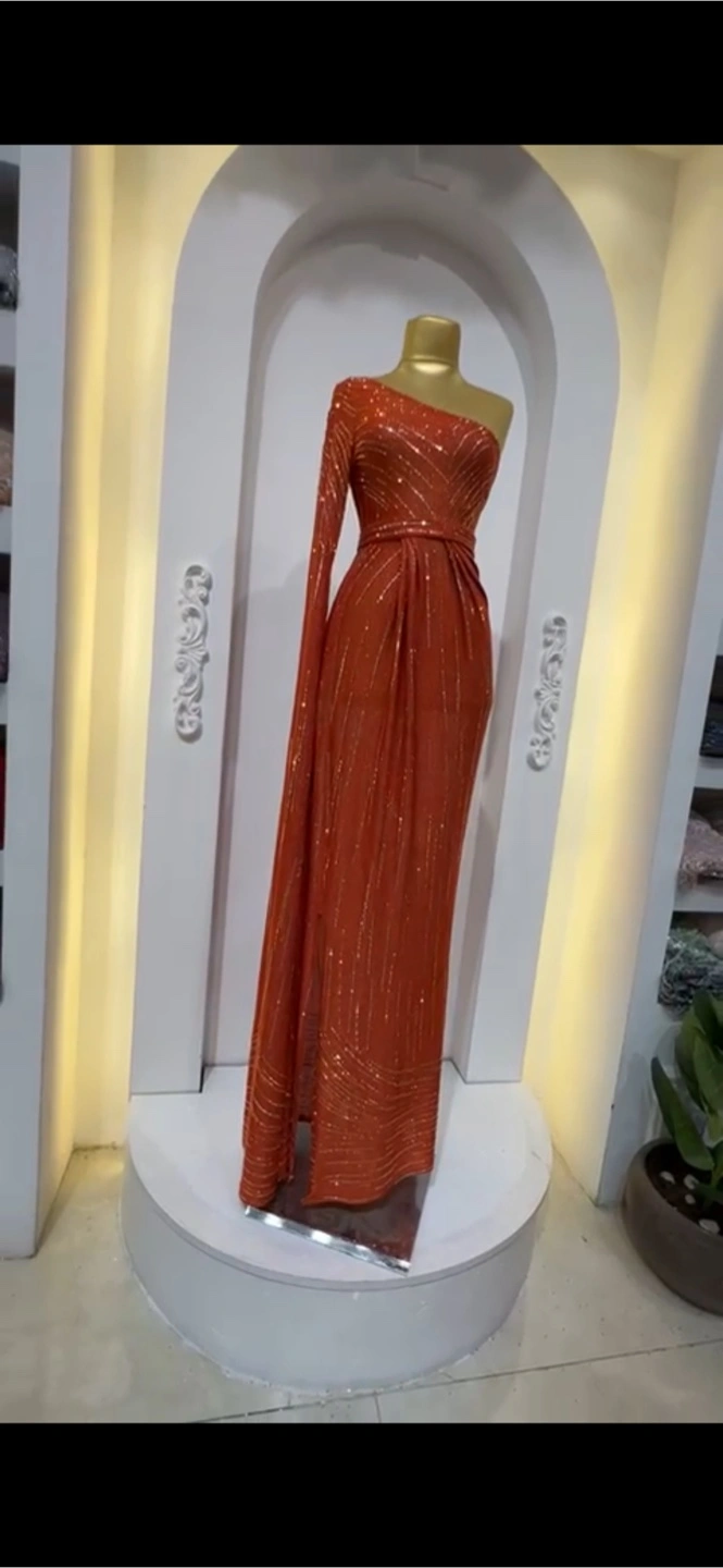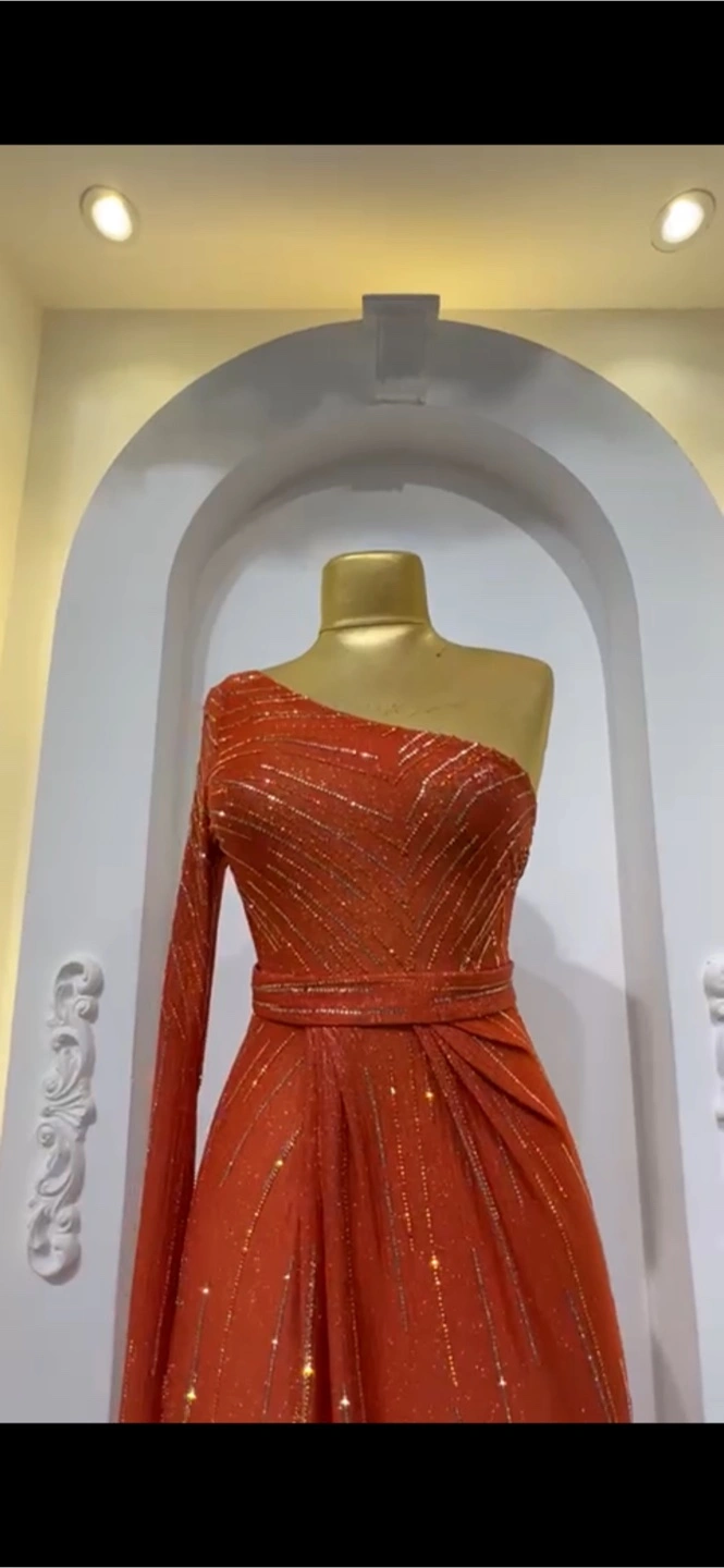 Stunning Orange One-Shoulder Evening Gown
