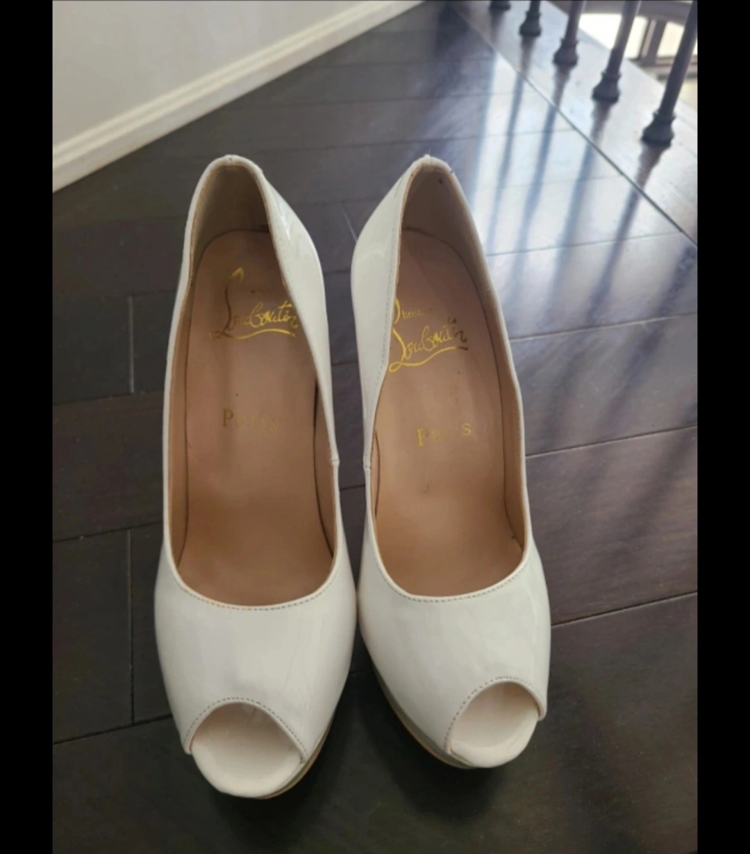 christian louboutins inspired white patent platform pumps. Includes dust bag and box. size 5.