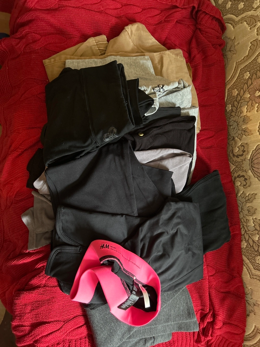 Large bundle of women’s / girls clothing. Includes various tops and a pair of pants. Good condition. Sizes mostly S About 15 pieces + Lots of sport leggings, most of them never worn
