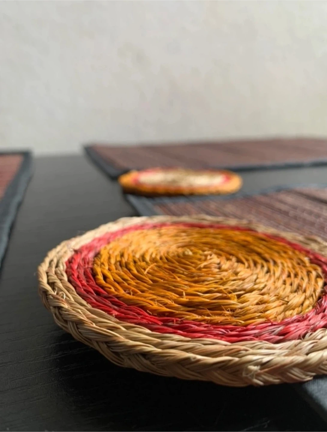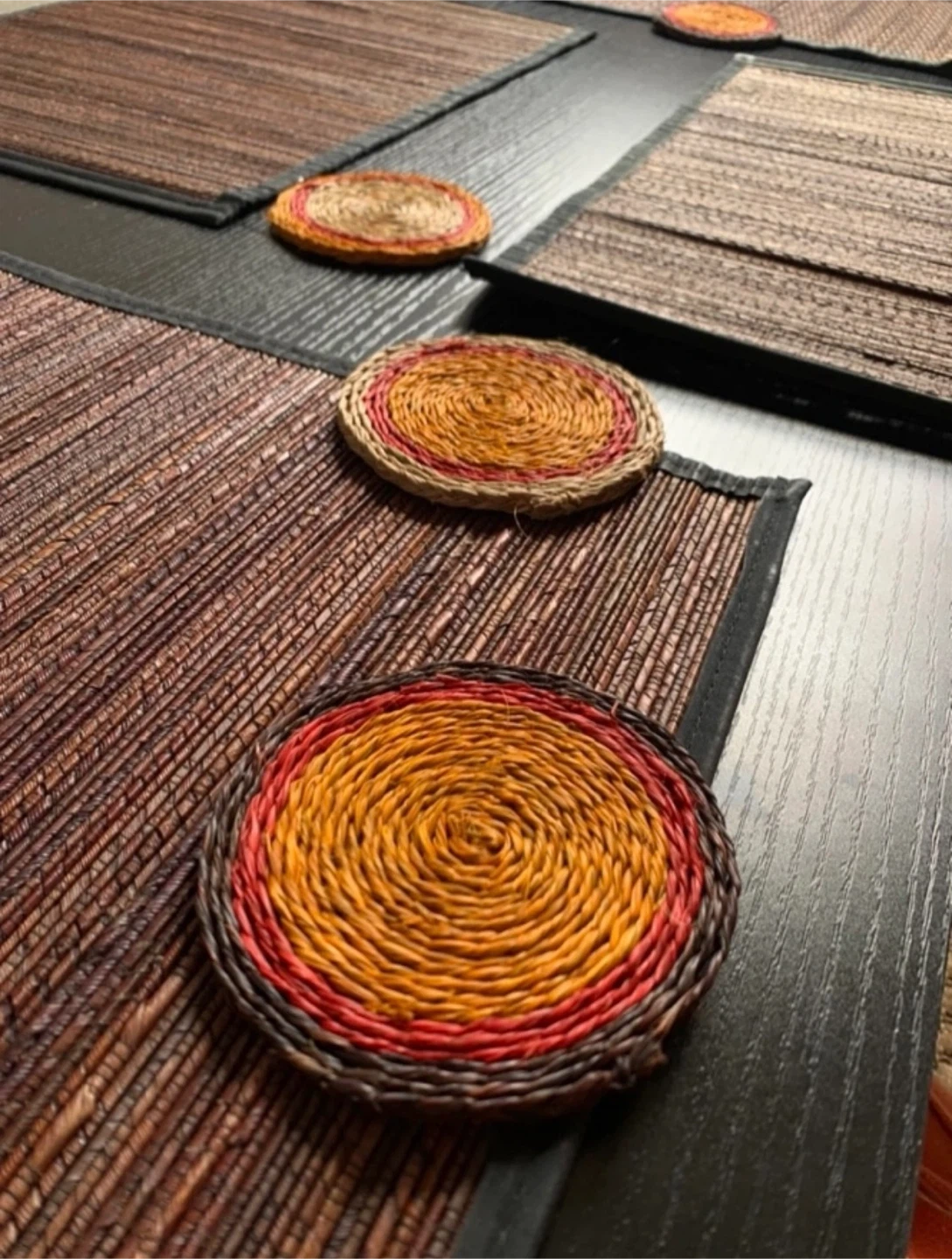 šš»Cash & Pickup Only Please šš»Near Queen St West and Niagara St šš» Bundle for a discount! ā¢Unique handcrafted set of 4 woven placemats and 6 coasters. ā¢Coasters and small container feature colourful woven design. ā¢Placemats are easy to clean, made of durable material. ā¢Gently used, in good condition. ā¢Smoke/pet free homeā¢