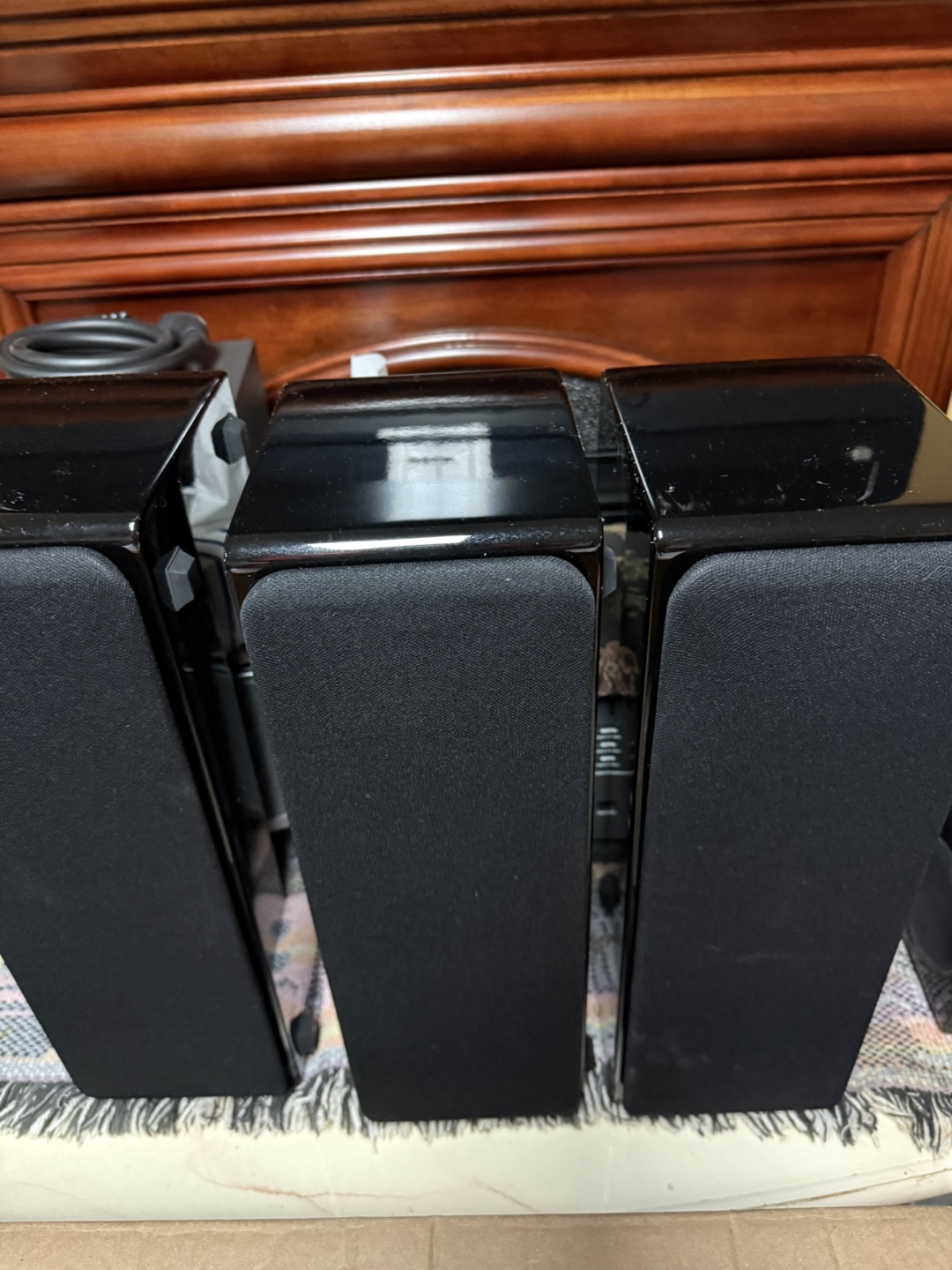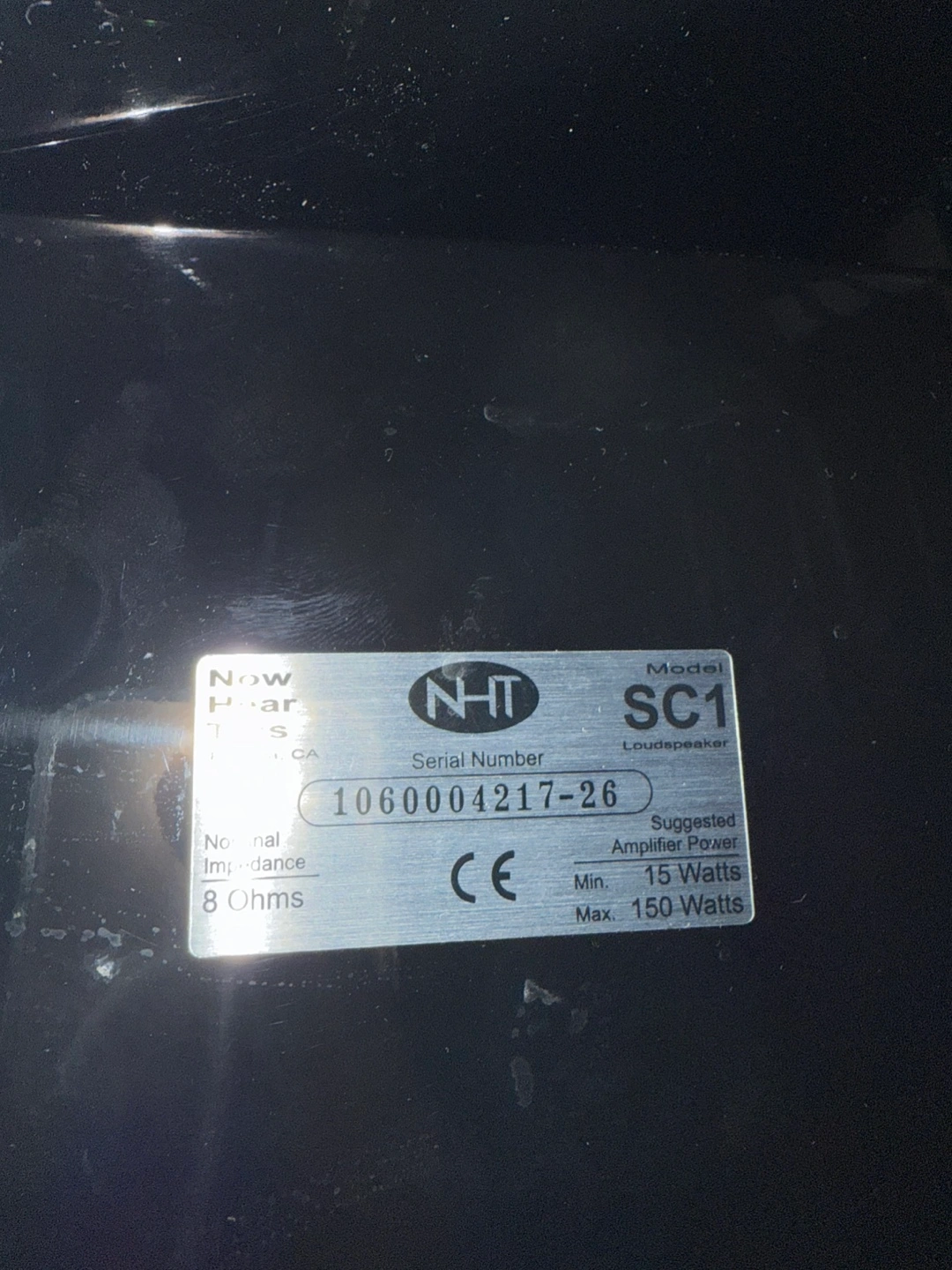 Three black NHT SC1 speakers. Excellent condition. 8 ohms impedance. Accepts 15-150 watts.