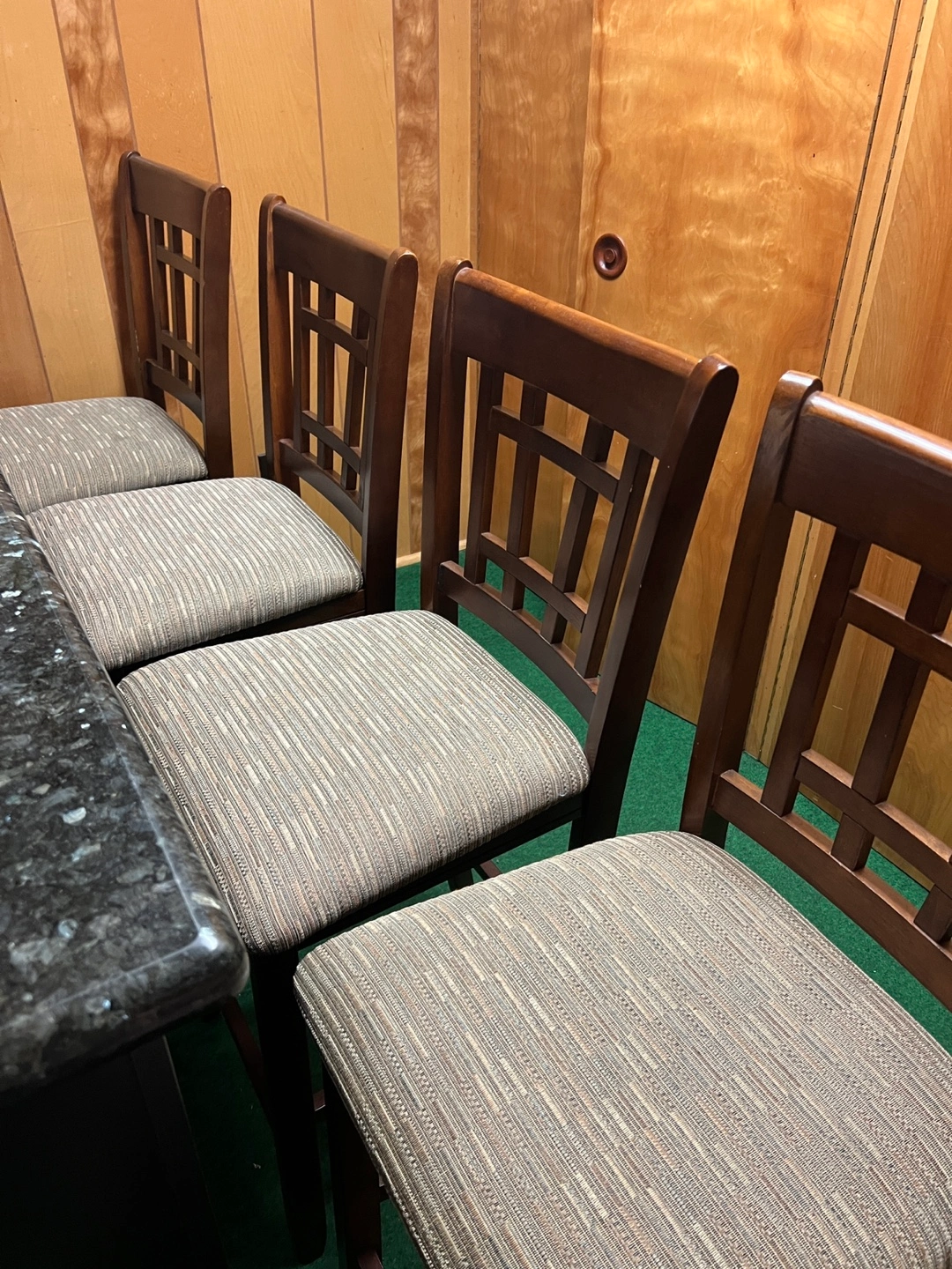Buy & SellSet of Four Bar StoolsSet of Four Bar Stools$70Four brown wood frame bar stools. Seats feature a neutral striped fabric. Good used condition.ConditionLike newWHERE TO MEETCheck LocationView MapSELLERVeraPrincess Margaret281 review1 chats·0 favorites·23 views