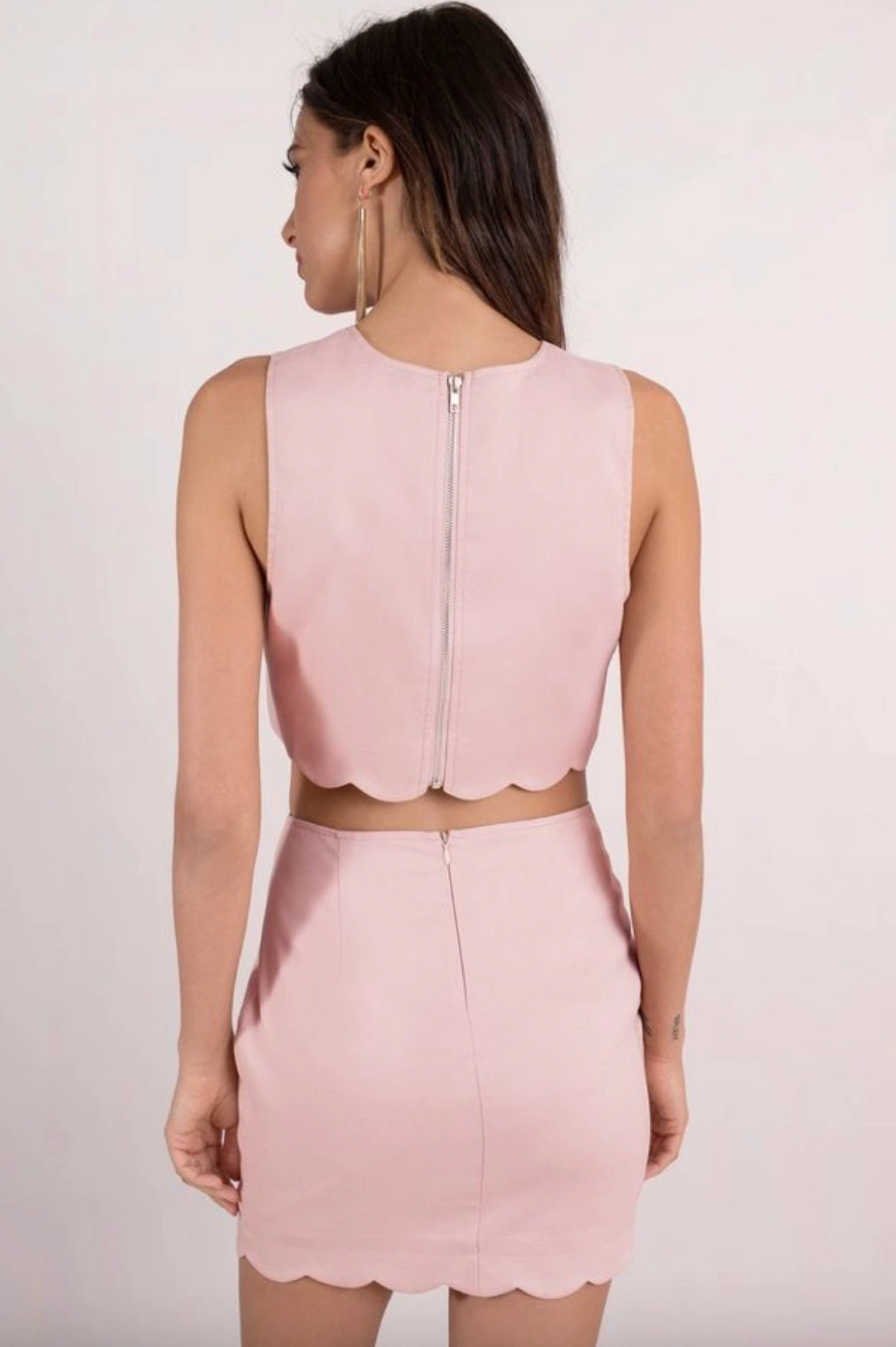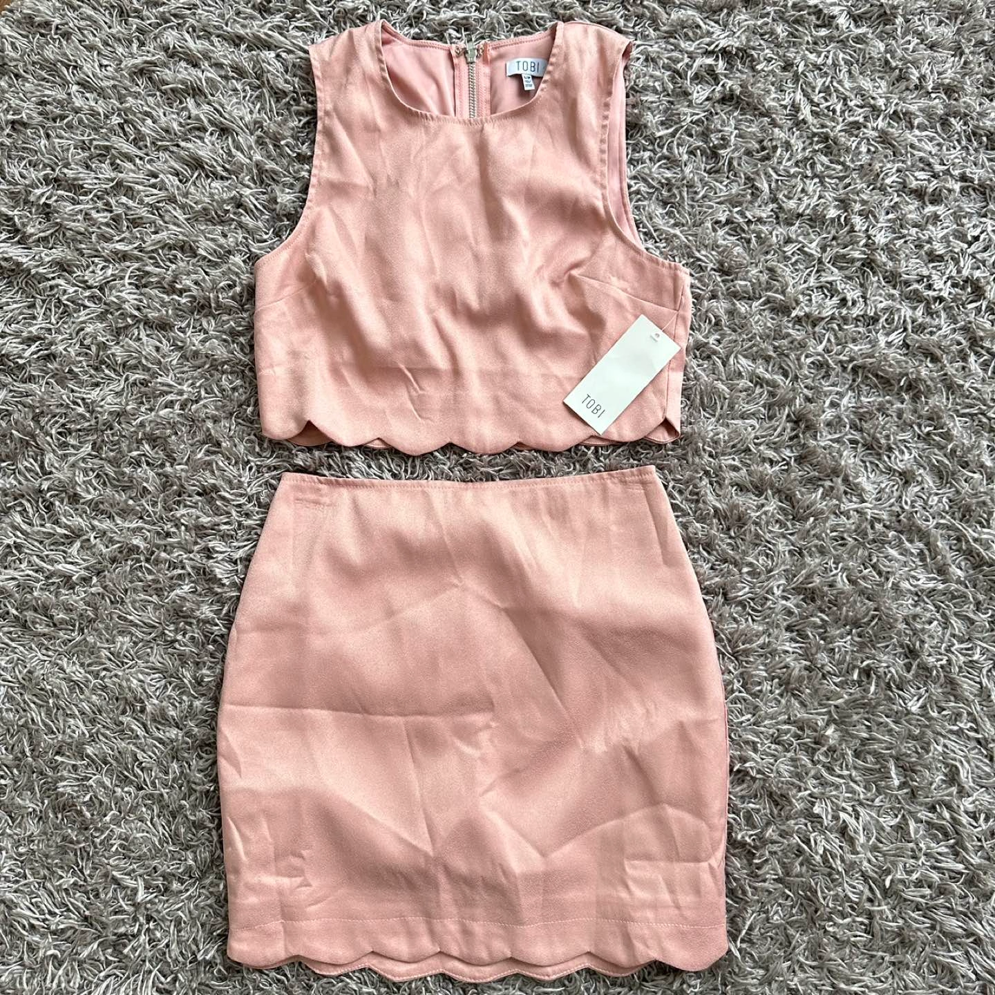 Polished and pretty in the Gettin' Wavy Bodycon Set! Brand new, never been worn (with tags). Size small. This set features a soft, lovely scalloped bottom hem along each piece with a long zipper back closure on the top and hidden zipper closure on the skirt. This bodycon dress is the complete evening outfit without even trying. Perfect to be worn together or apart! Actual colour most resembles stock photos.