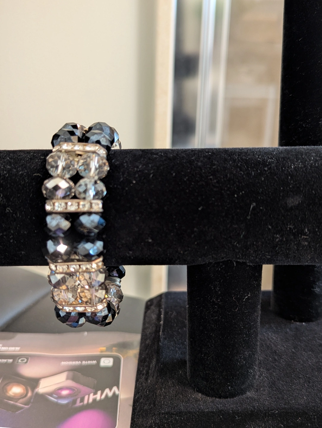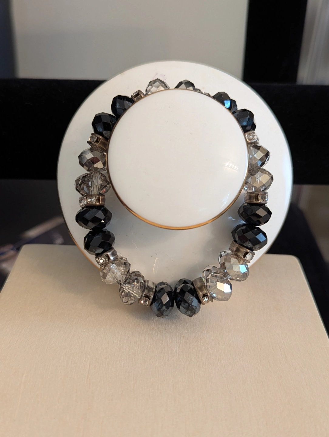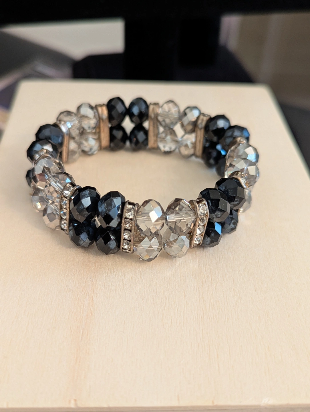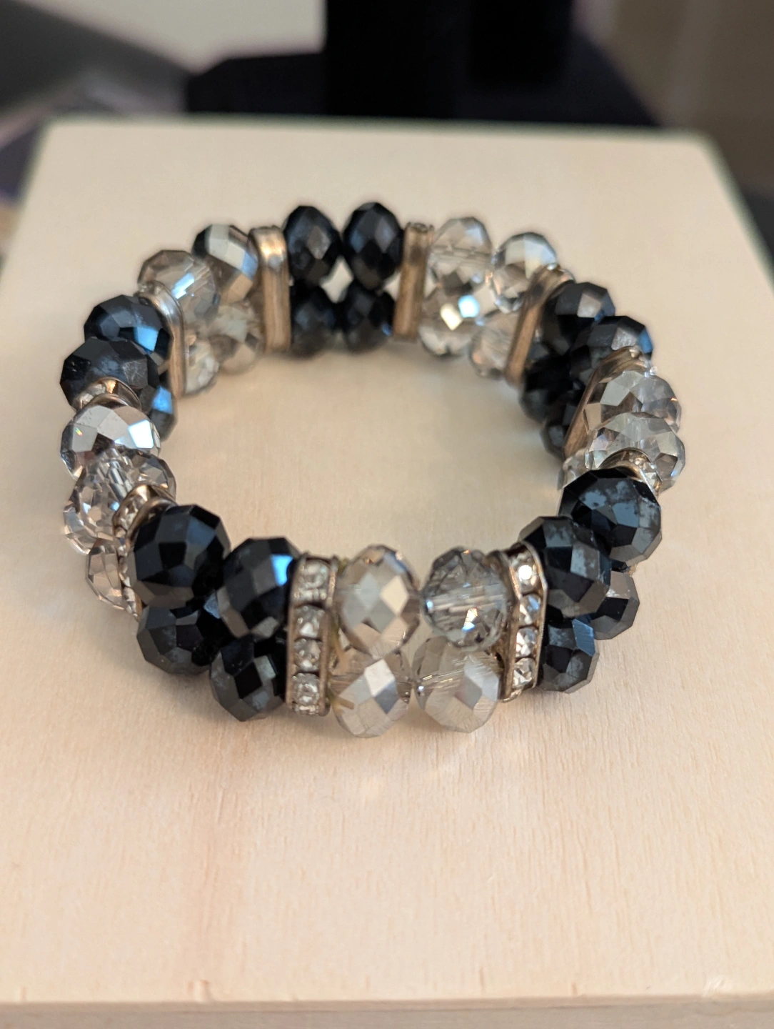 Elegant Black and Clear Crystal Stretch Bracelet