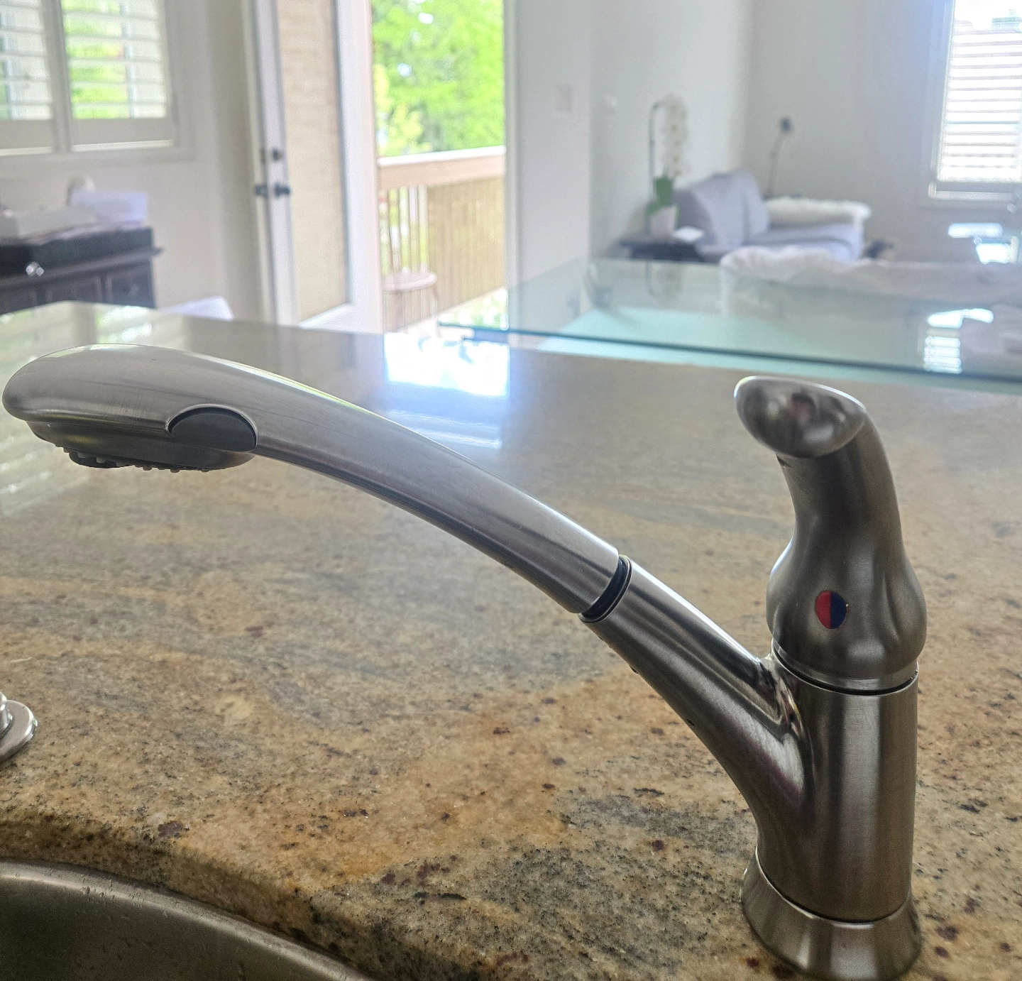 Upgrade your kitchen with this stylish Delta pull-down kitchen faucet! This faucet features a sleek design and a convenient pull-down sprayer for easy cleaning. It is in used condition but has been well-maintained and is fully functional. Perfect for any modern kitchen, this faucet combines form and function. Features: It has a pull-out sprayer with multiple spray functions controlled by a button. The hose can extend up to six feet. Technology: Delta faucets often include features like MagnaTite docking to keep the sprayer in place and Touch-Clean soft rubber nubbins for easy cleaning. Some models may also have Touch20 Technology for touch-activated on/off. Durability: Delta faucets are designed for longevity, with some models lasting up to 5 million uses. They use DIAMOND Seal Technology to reduce leaks and ensure lasting performance. Installation: Delta faucets are generally easy to install and maintain. Water Efficiency: Many Delta faucets are WaterSense labeled, using 20% less water than the industry standard.